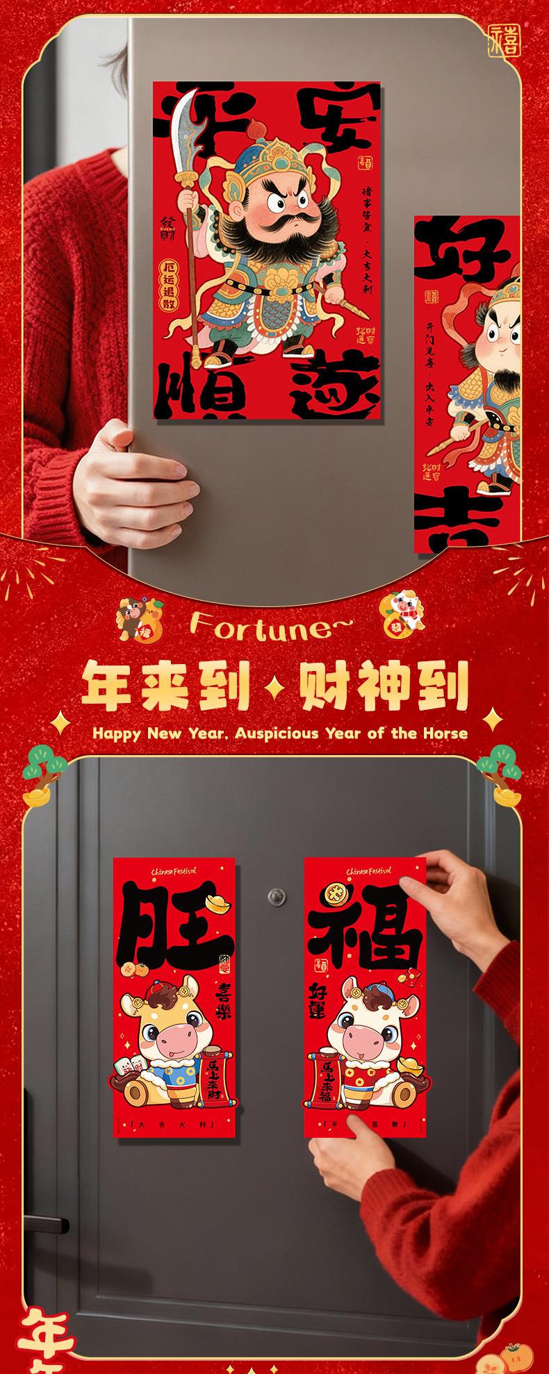 2026新款马年磁吸门贴春节对贴入户门福字贴装饰创意新年布置门神