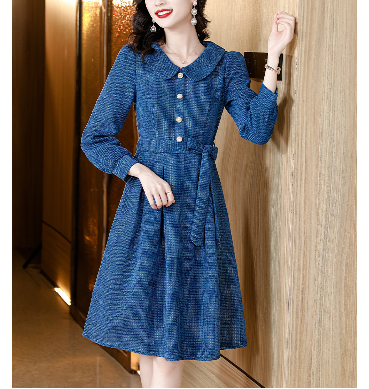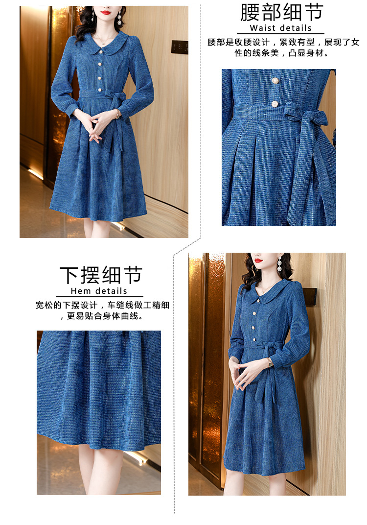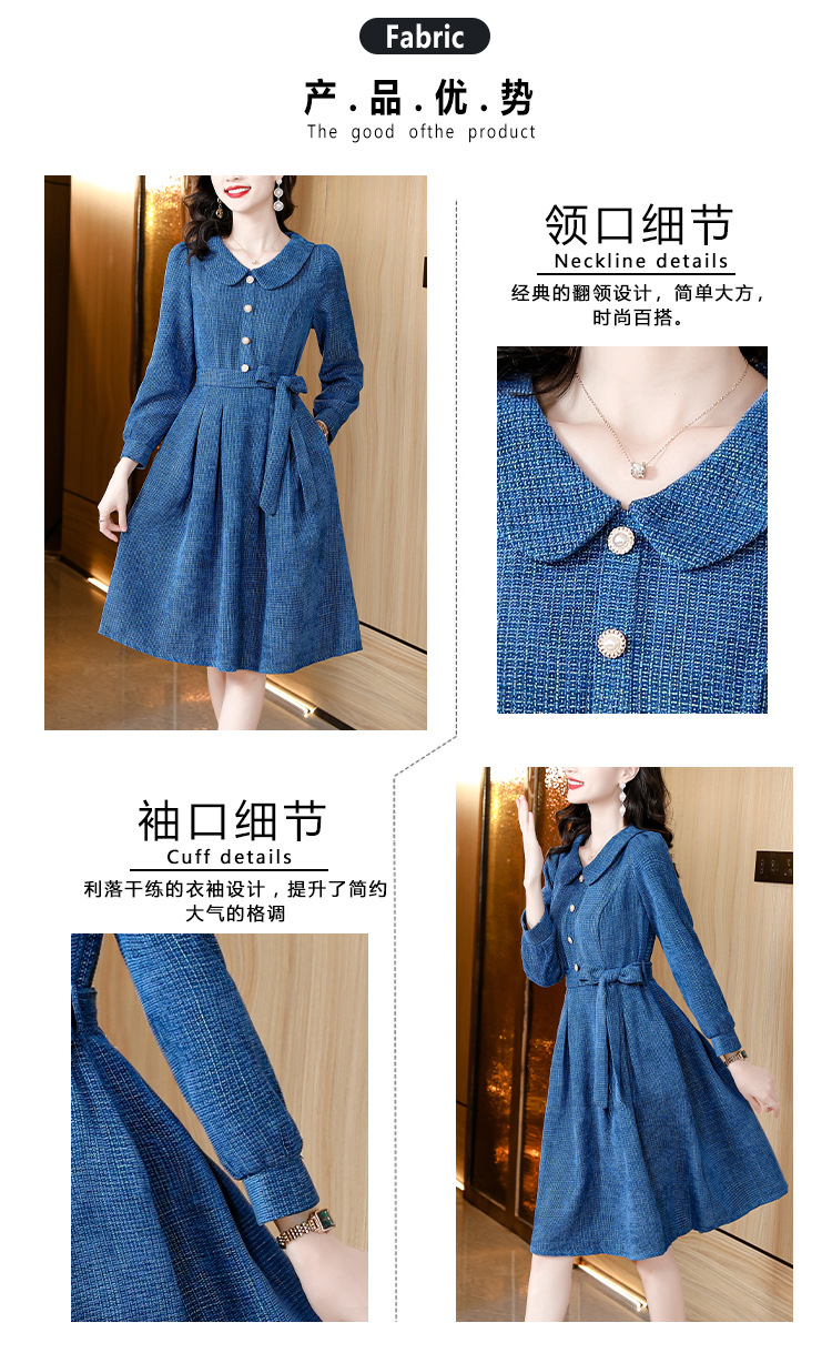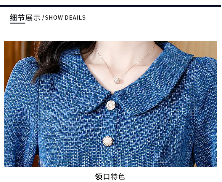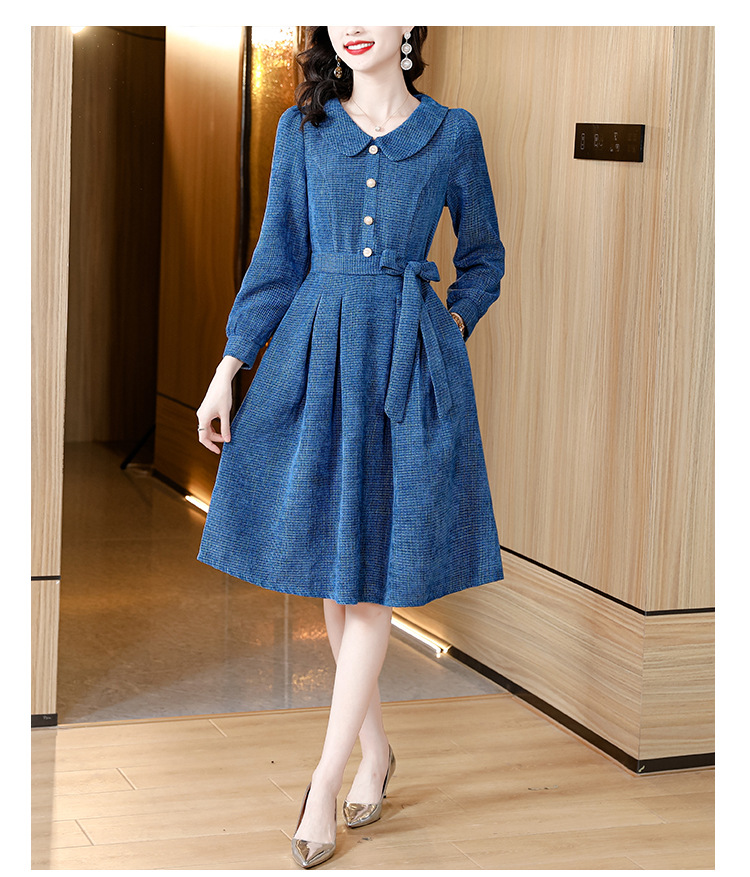 kml1892 2022秋冬新款女装娃娃领小香风简约设计感气质显瘦收腰纯色连衣裙
