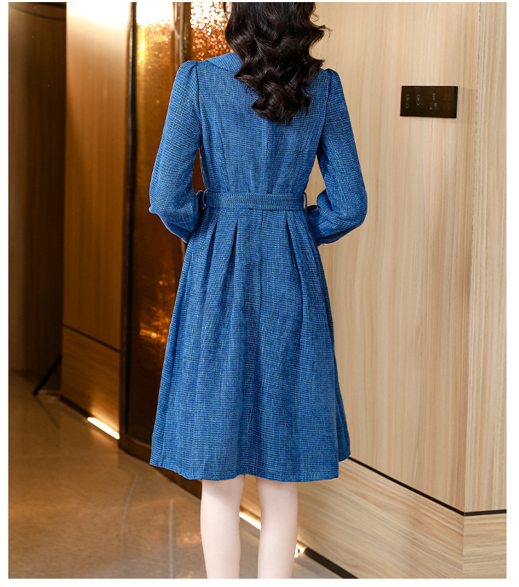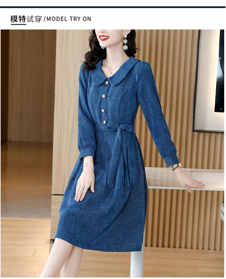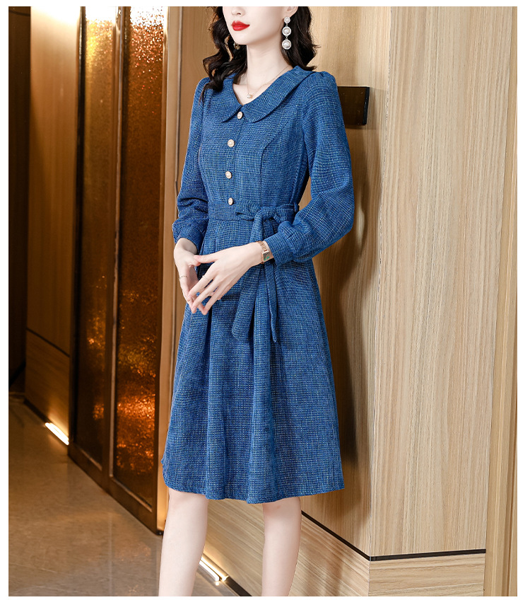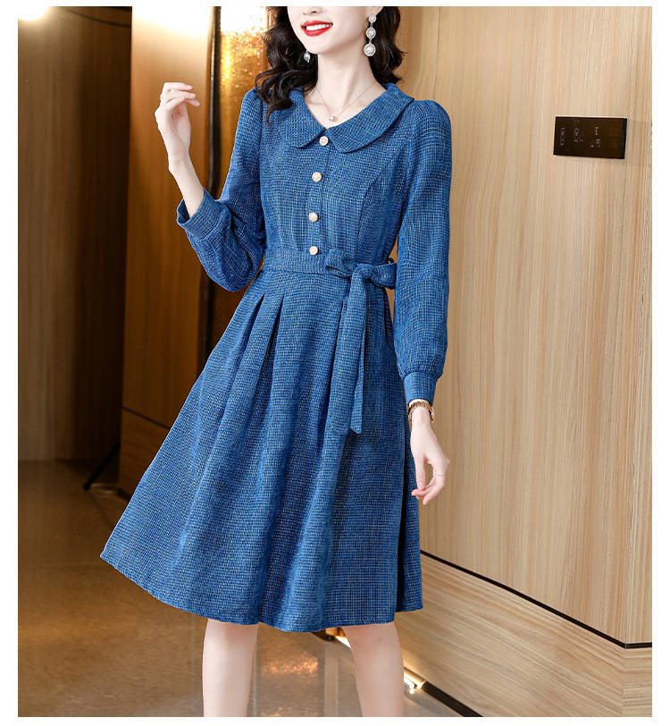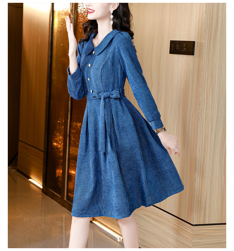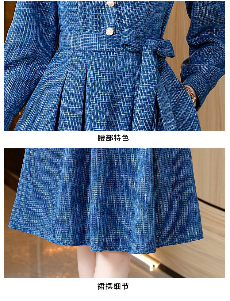 kml1892 2022秋冬新款女装娃娃领小香风简约设计感气质显瘦收腰纯色连衣裙
