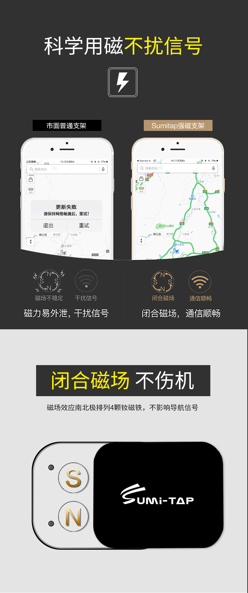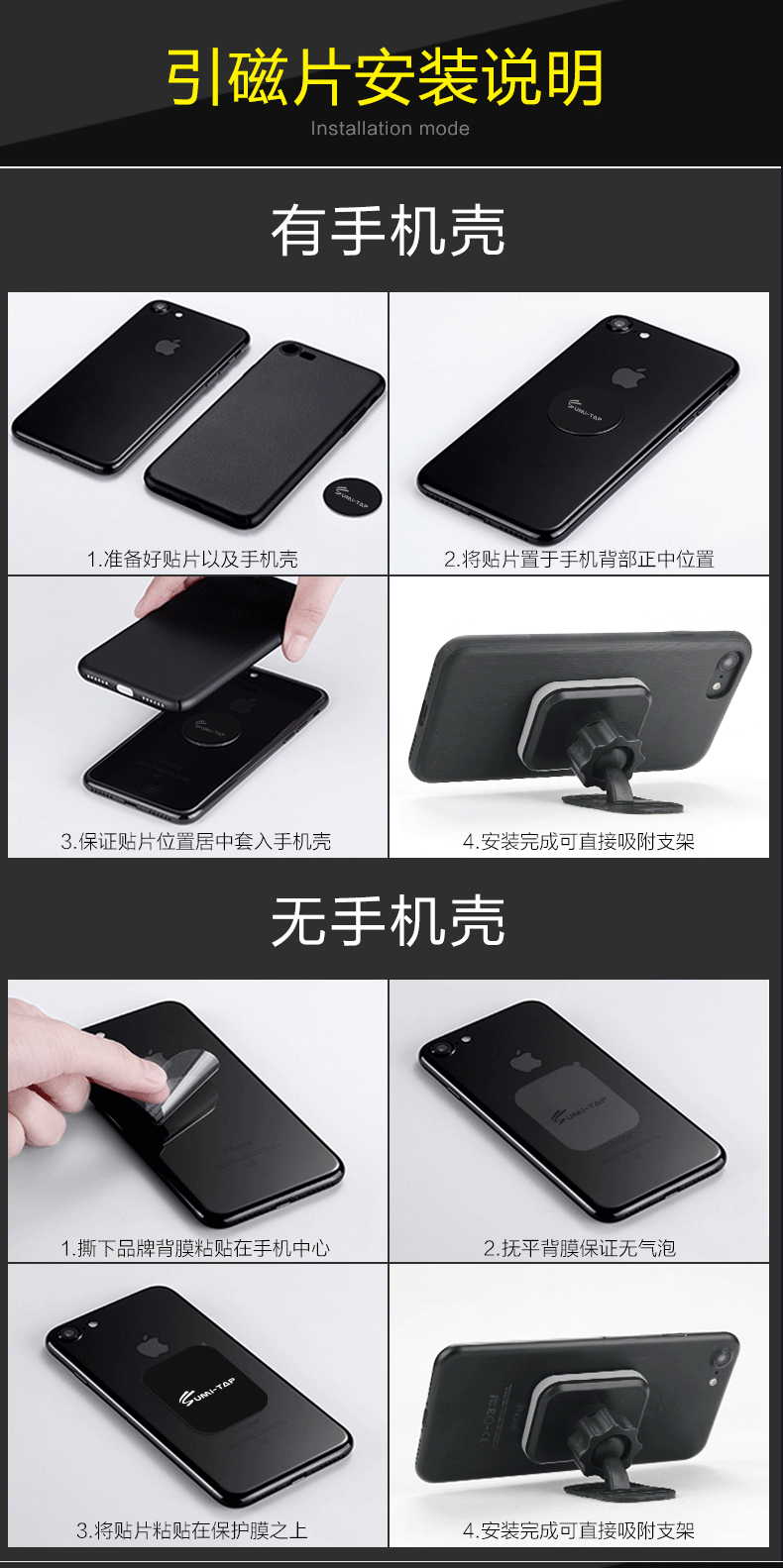 sumitap车载手机支架磁吸套装汽车粘贴式弧面底座4颗强磁