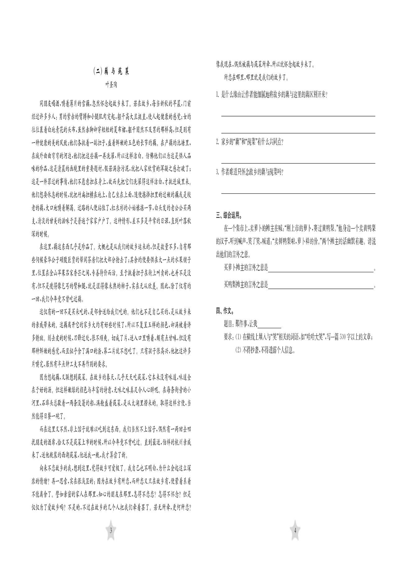 本书内容紧扣最新统编版语文教材,由一线名师编写。一课一练习,每课阅读部分选取一篇与本课主题相关的课外阅读文章,旨在让学生从课内走向课外,实现阅读能力的延伸;单元设置综合测试卷,让学生能够在学期的各个阶段得到综合评价。本书练习针对性强,能帮助学生更好地巩固所学知识,提升技能。在切实减轻学生过重负担的前提下,保证一定的练习量,使学生能从不同角度、不同形式进行训练,开拓思路,发展思维。本书适合学生六年级第一学期使用。