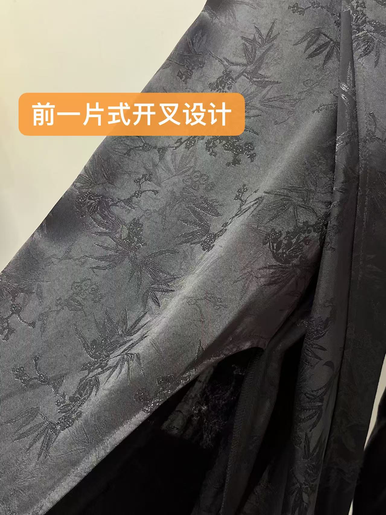 七夕福利-NO退【MYBL】8859 竹叶提花一片式开叉超垂感阔腿裤-喜出