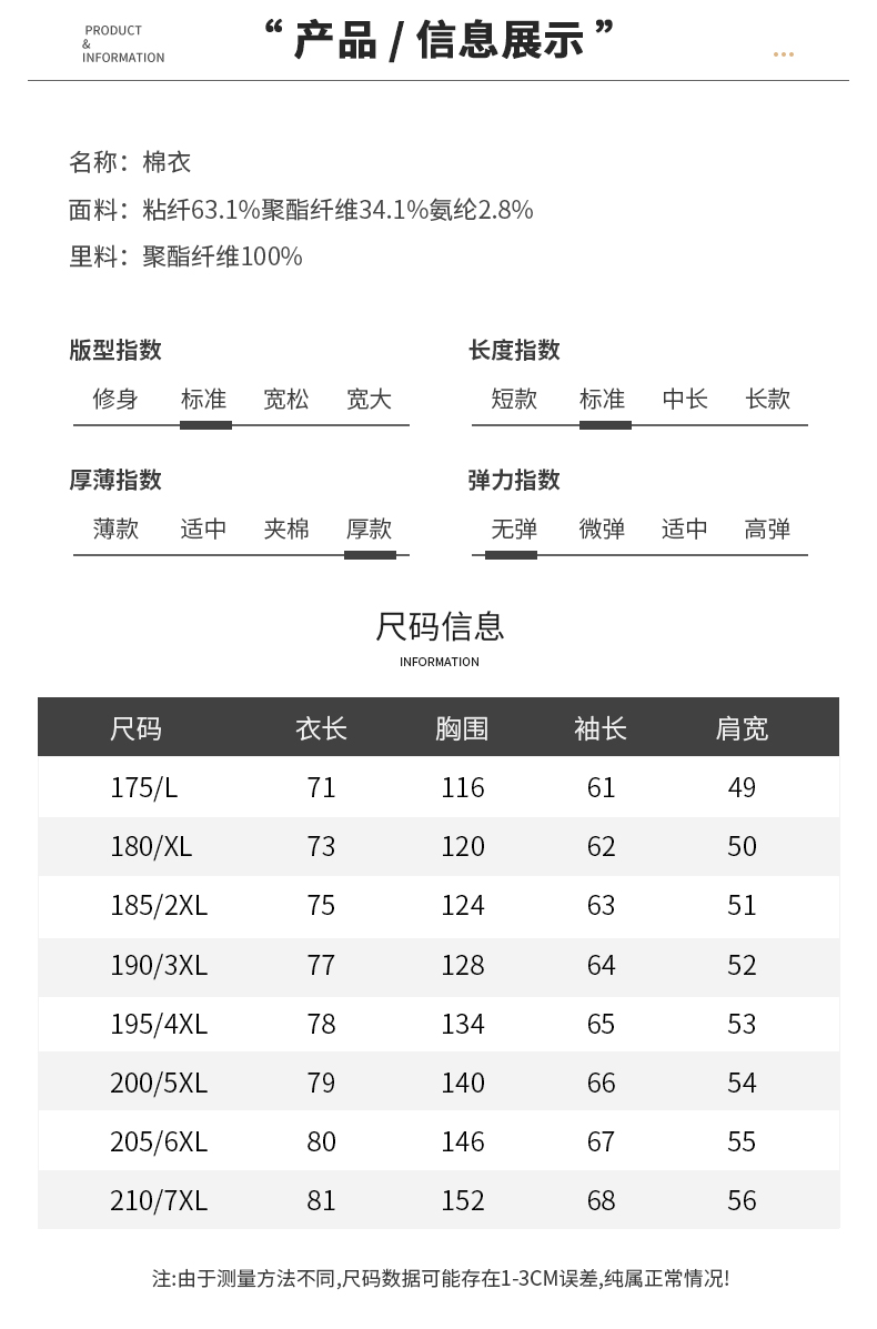 【新款DKP】大依优型大码棉服翻领棉衣胖子大码男休闲商务宽松加肥加大上衣冬季外套