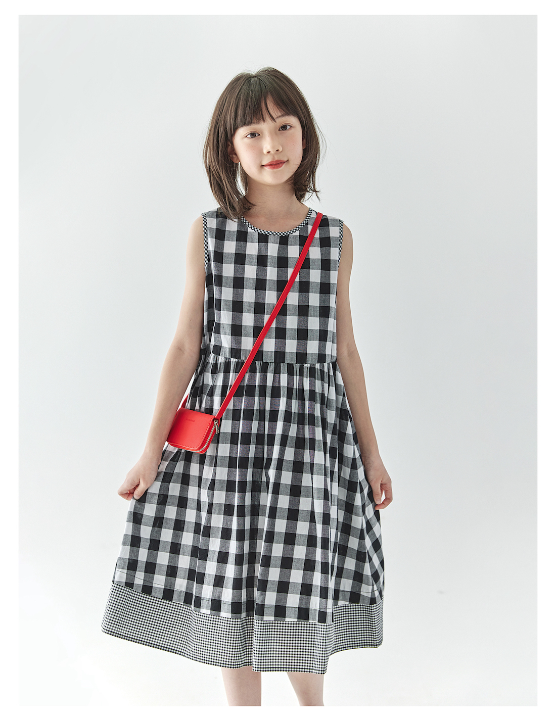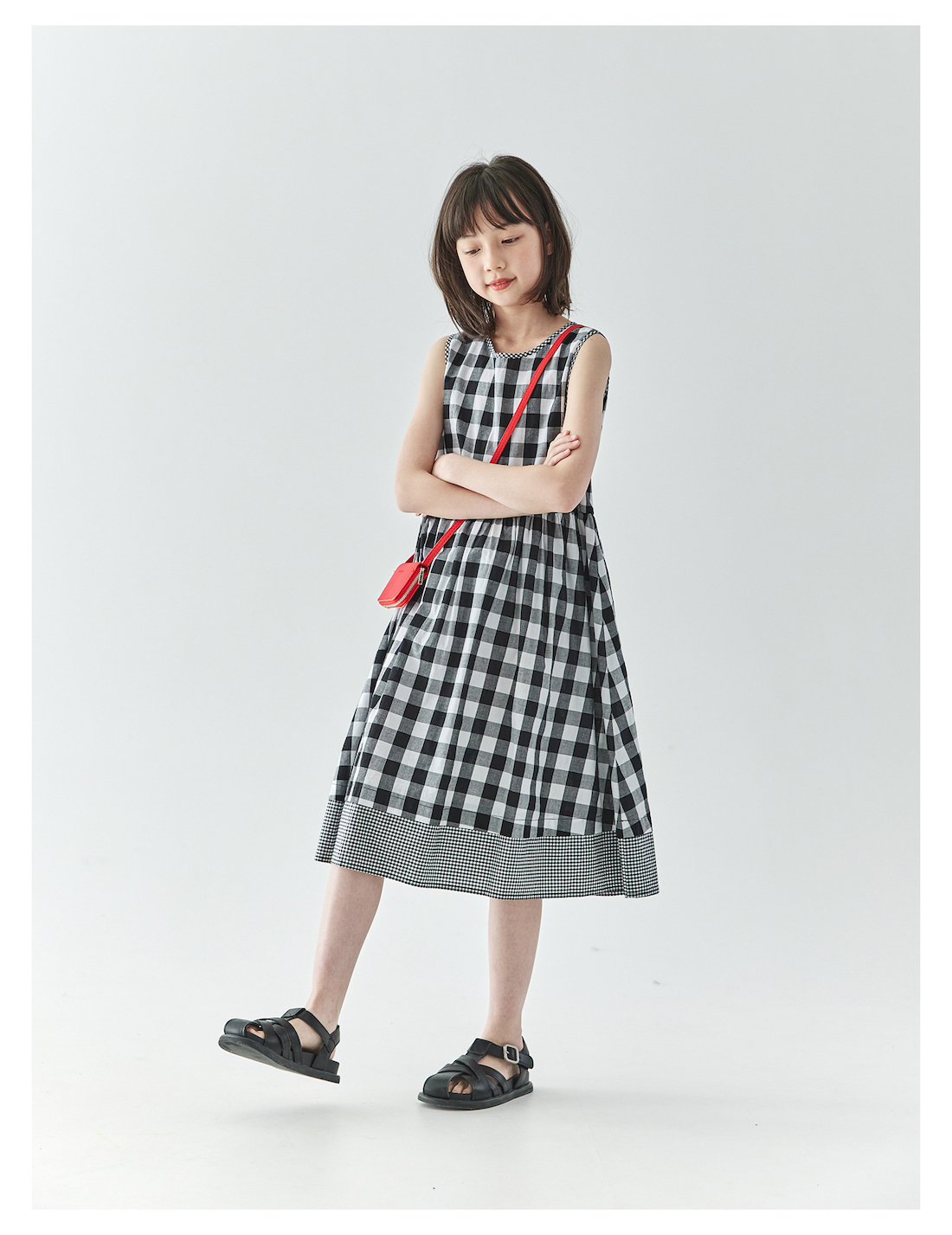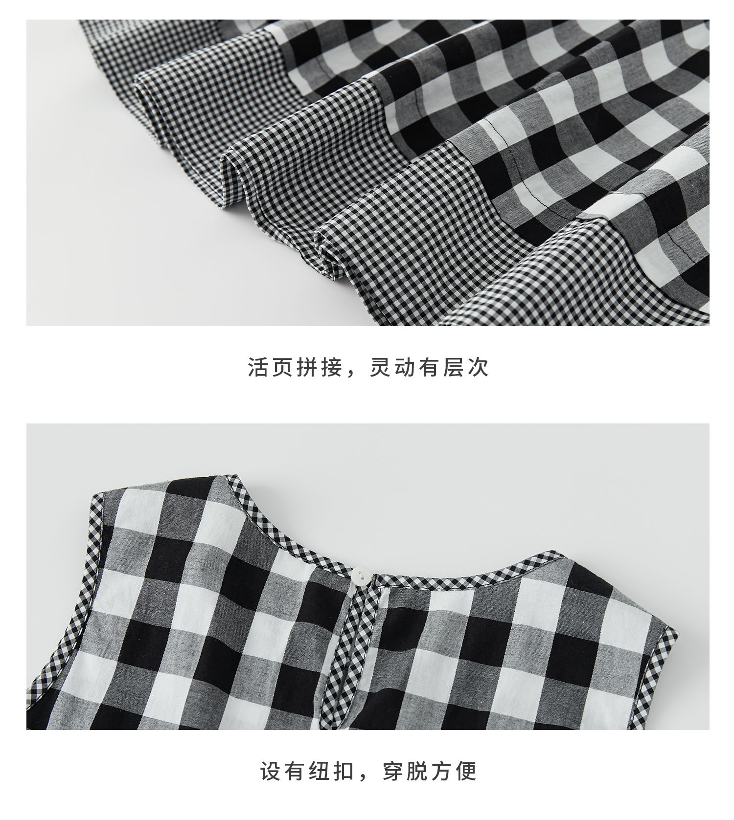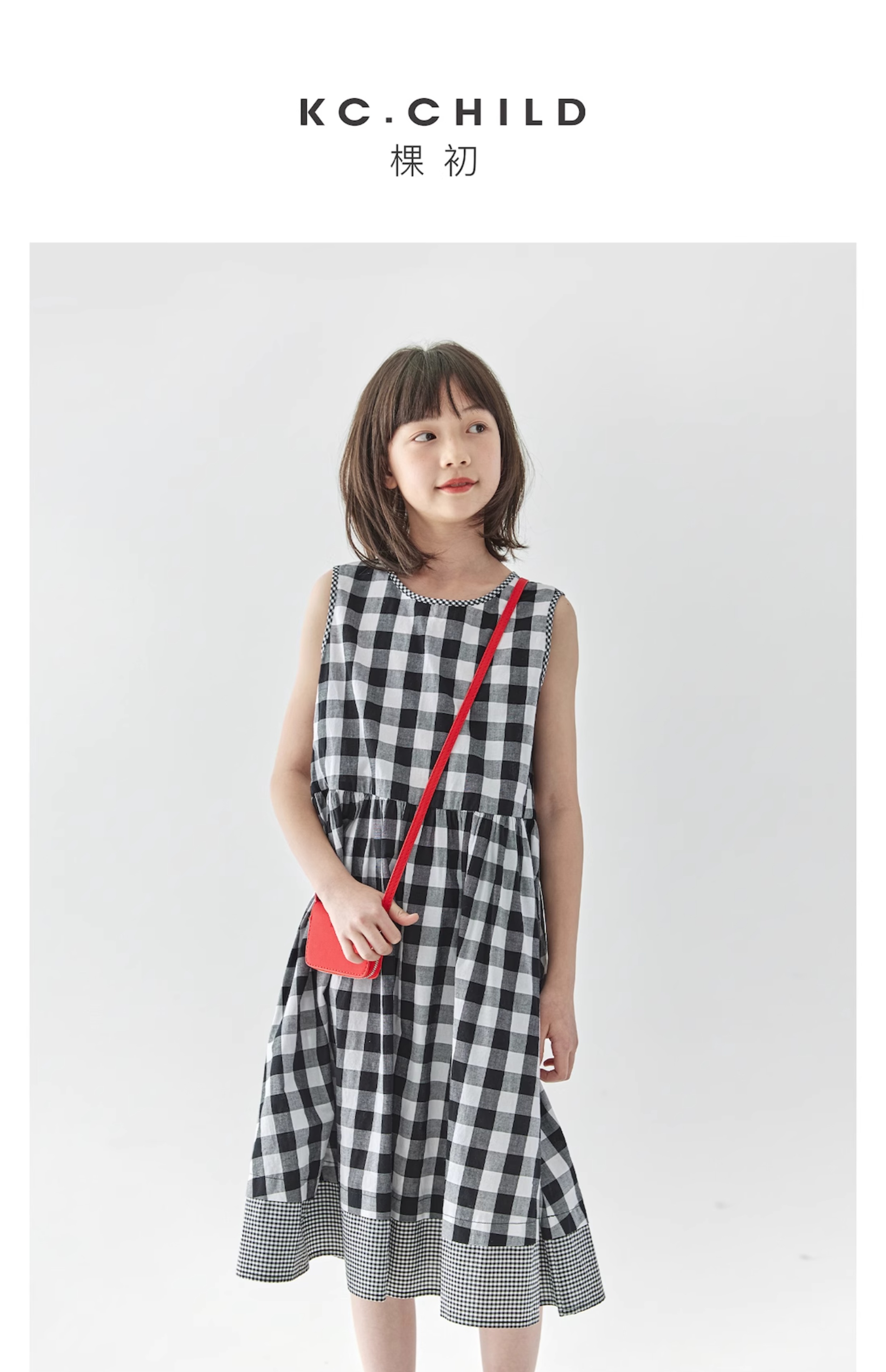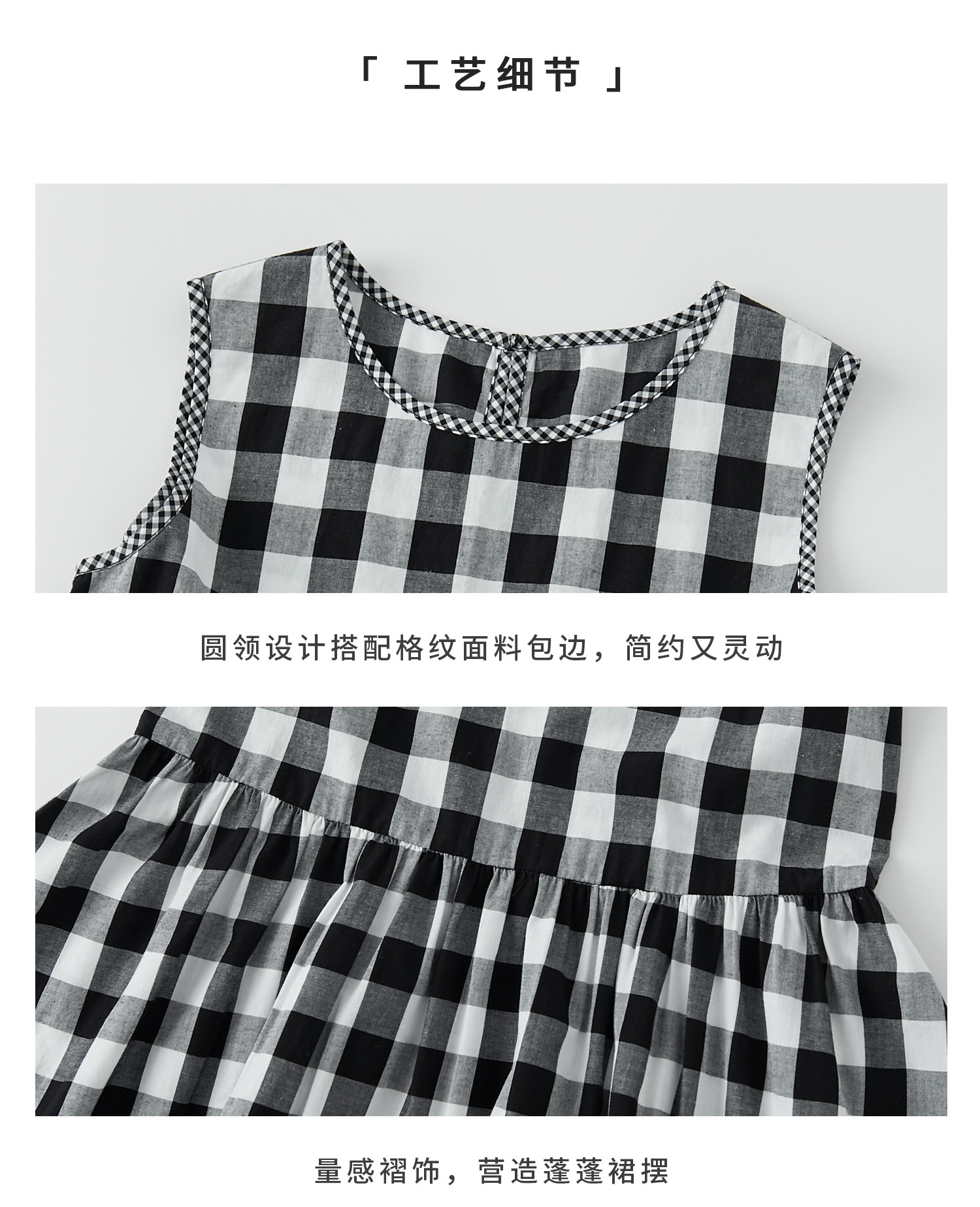 棵初2025夏季新款亲子中大女童格子连衣裙纯棉A字裙无袖背心裙