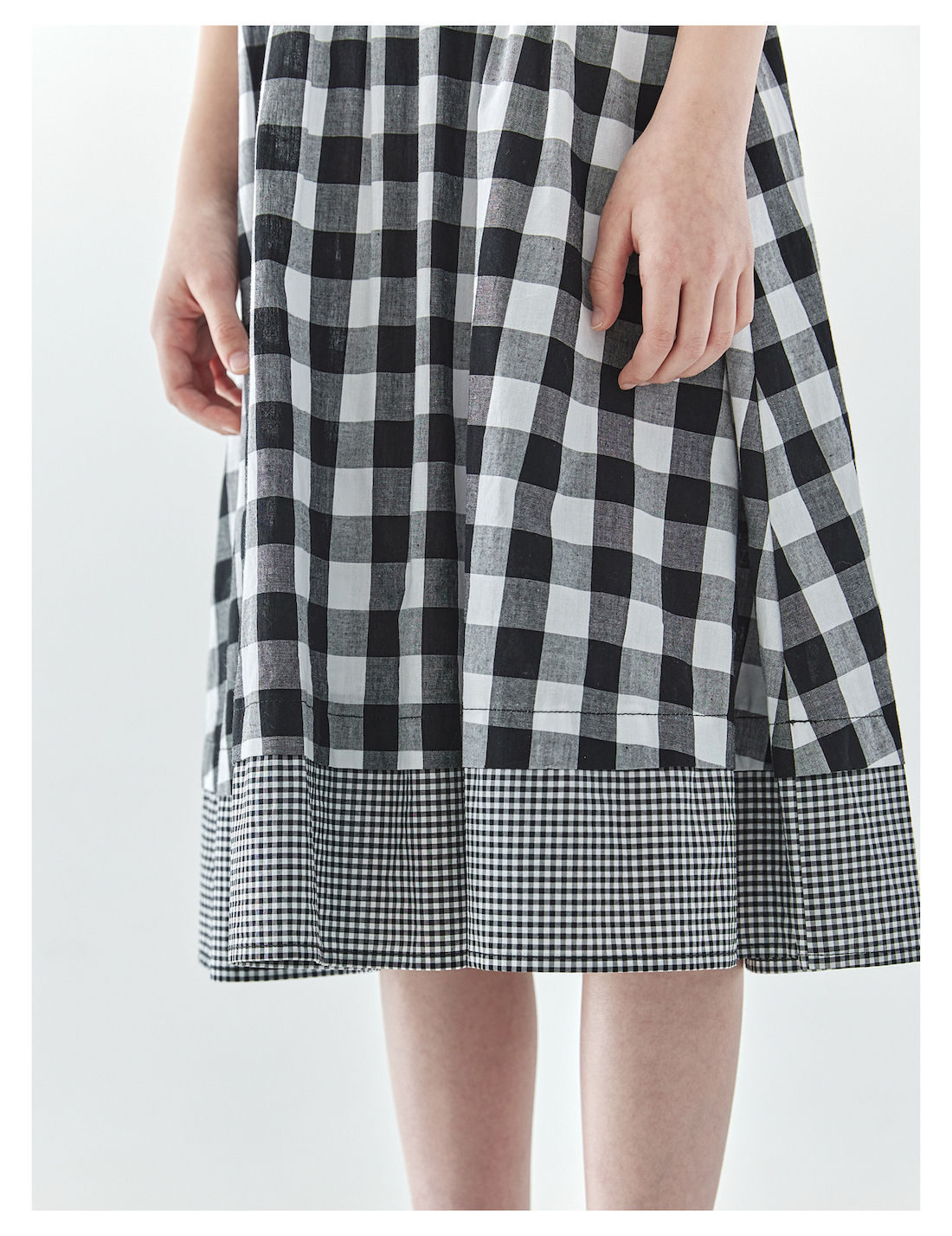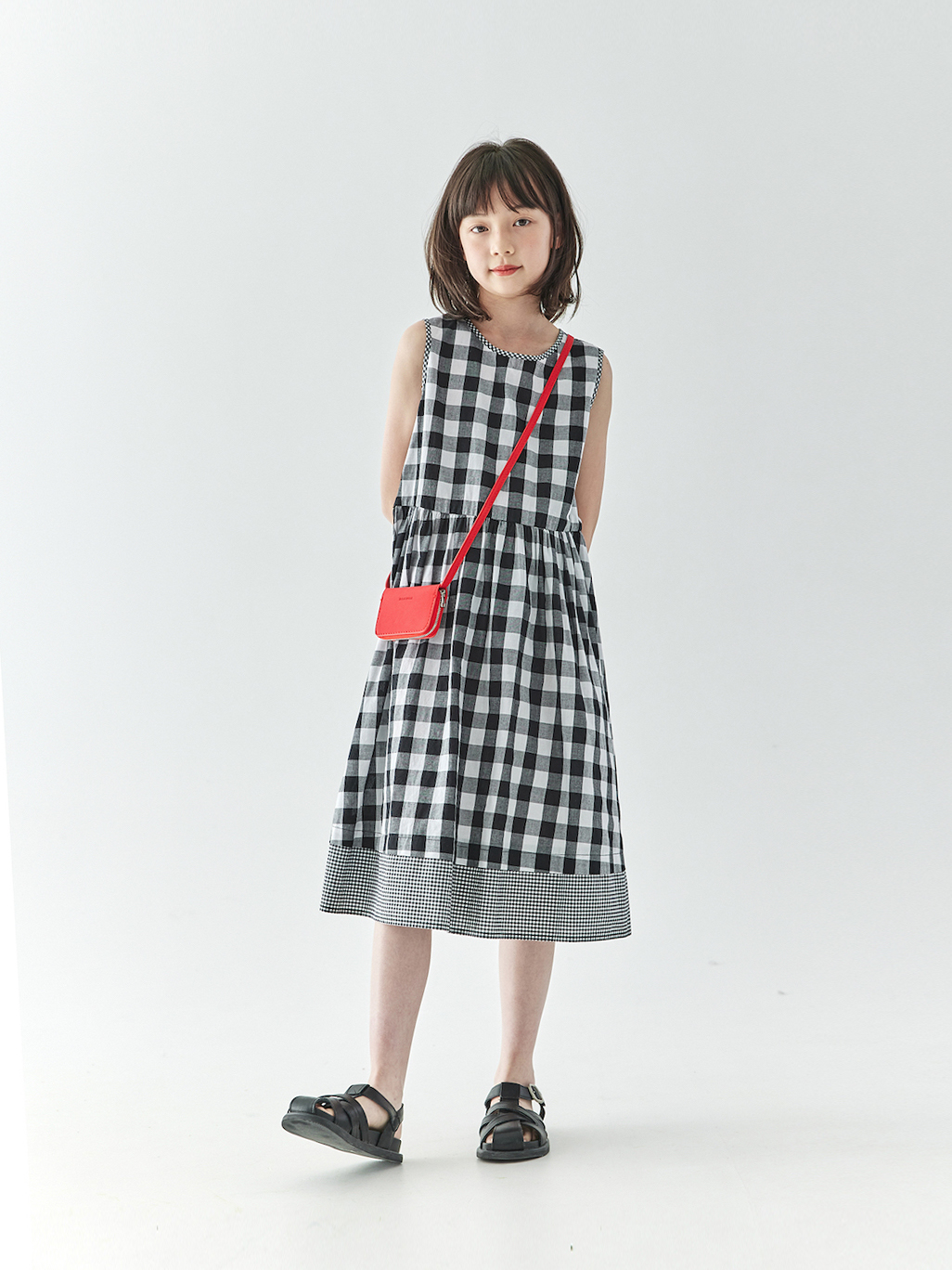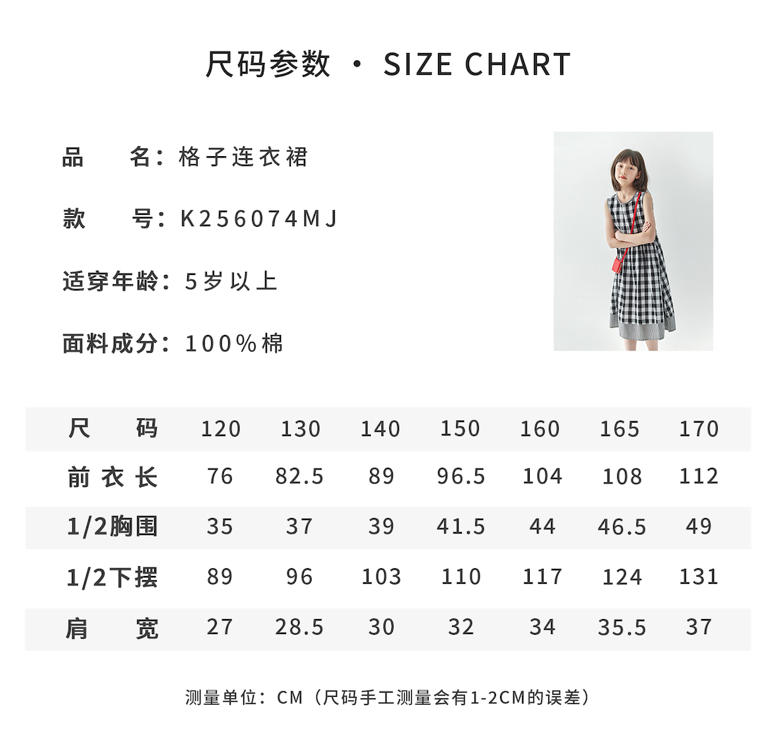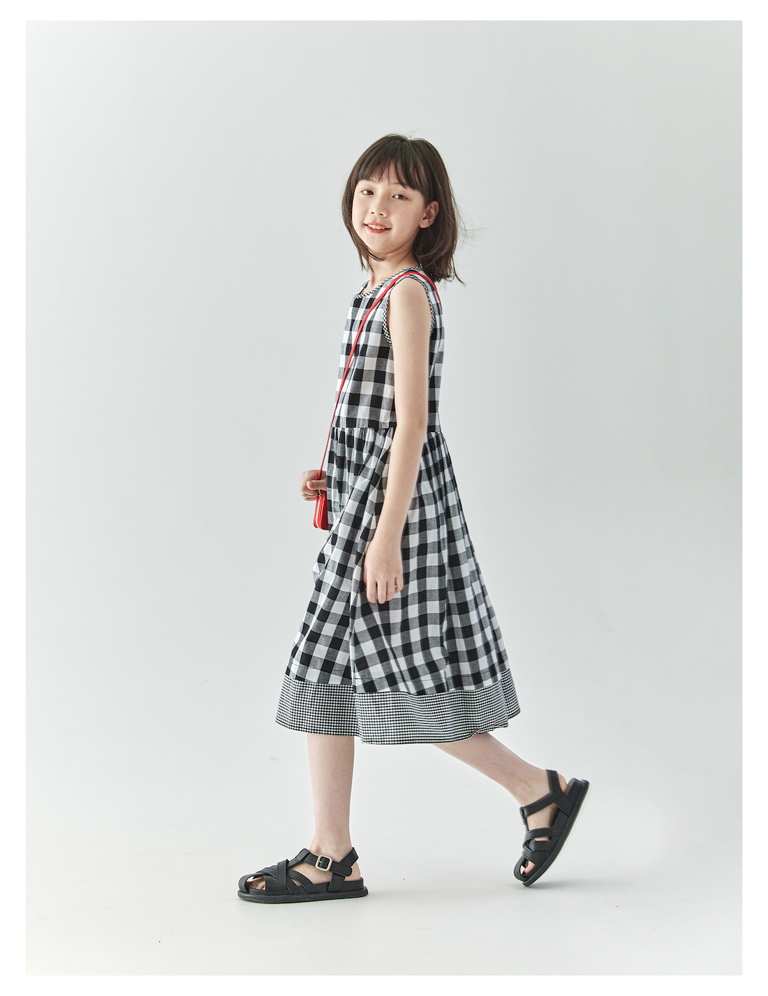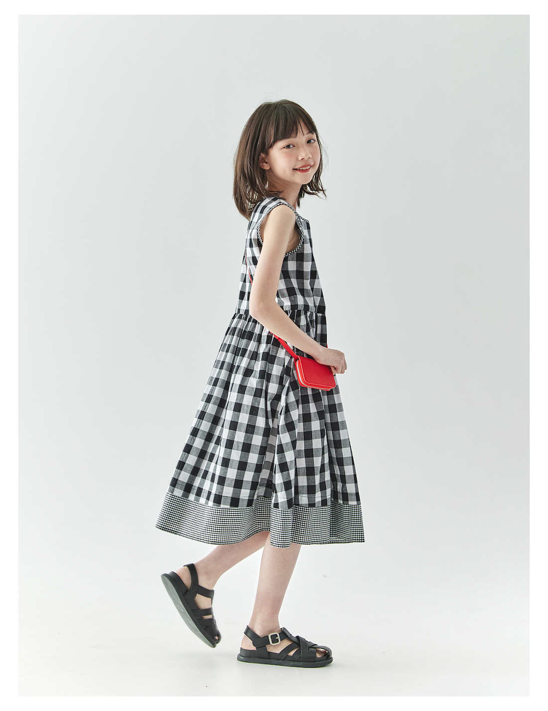 棵初2025夏季新款亲子中大女童格子连衣裙纯棉A字裙无袖背心裙