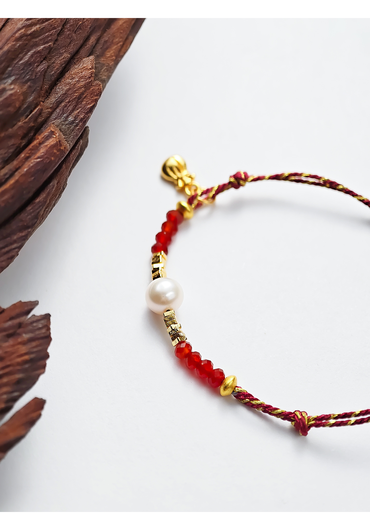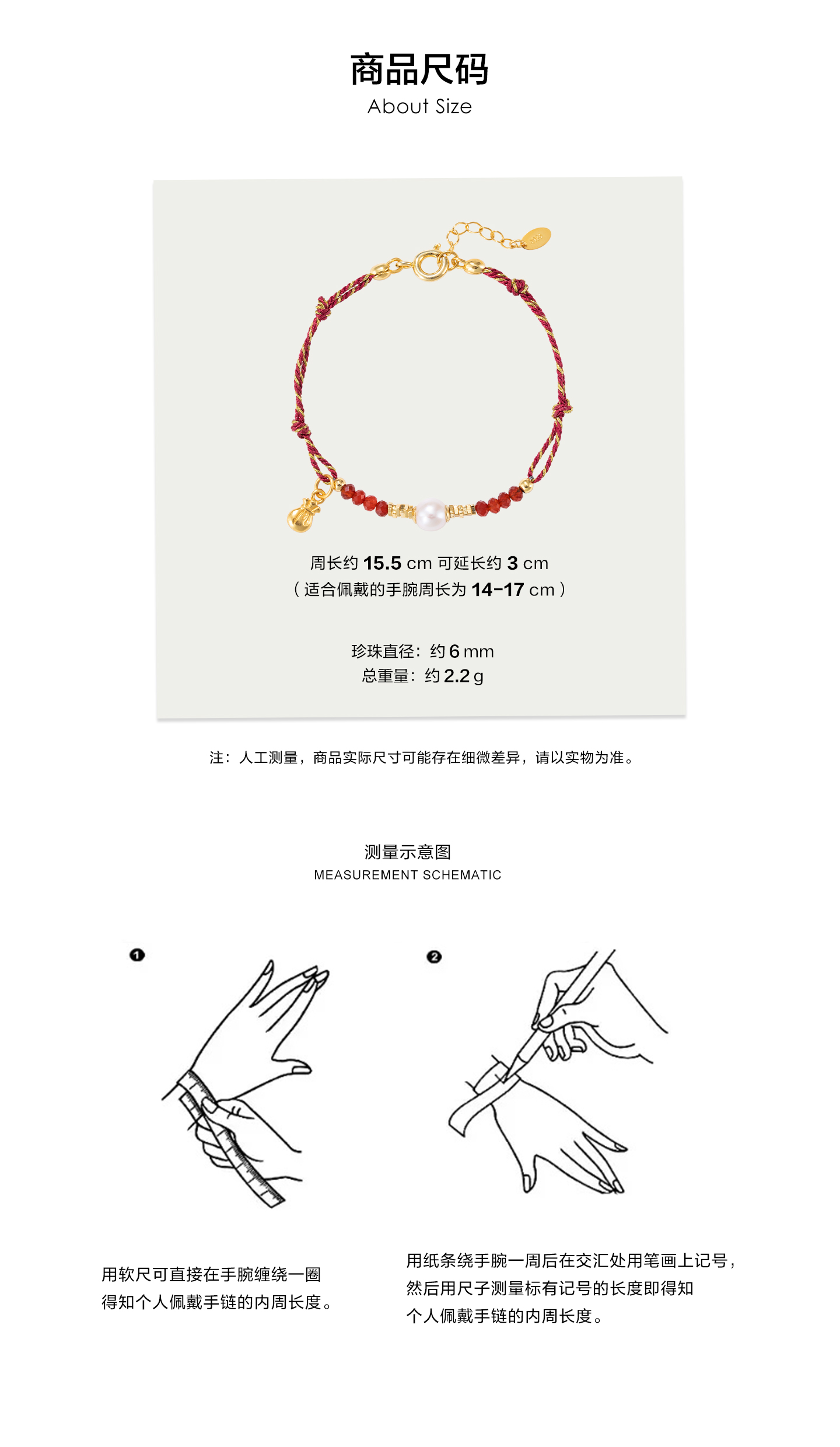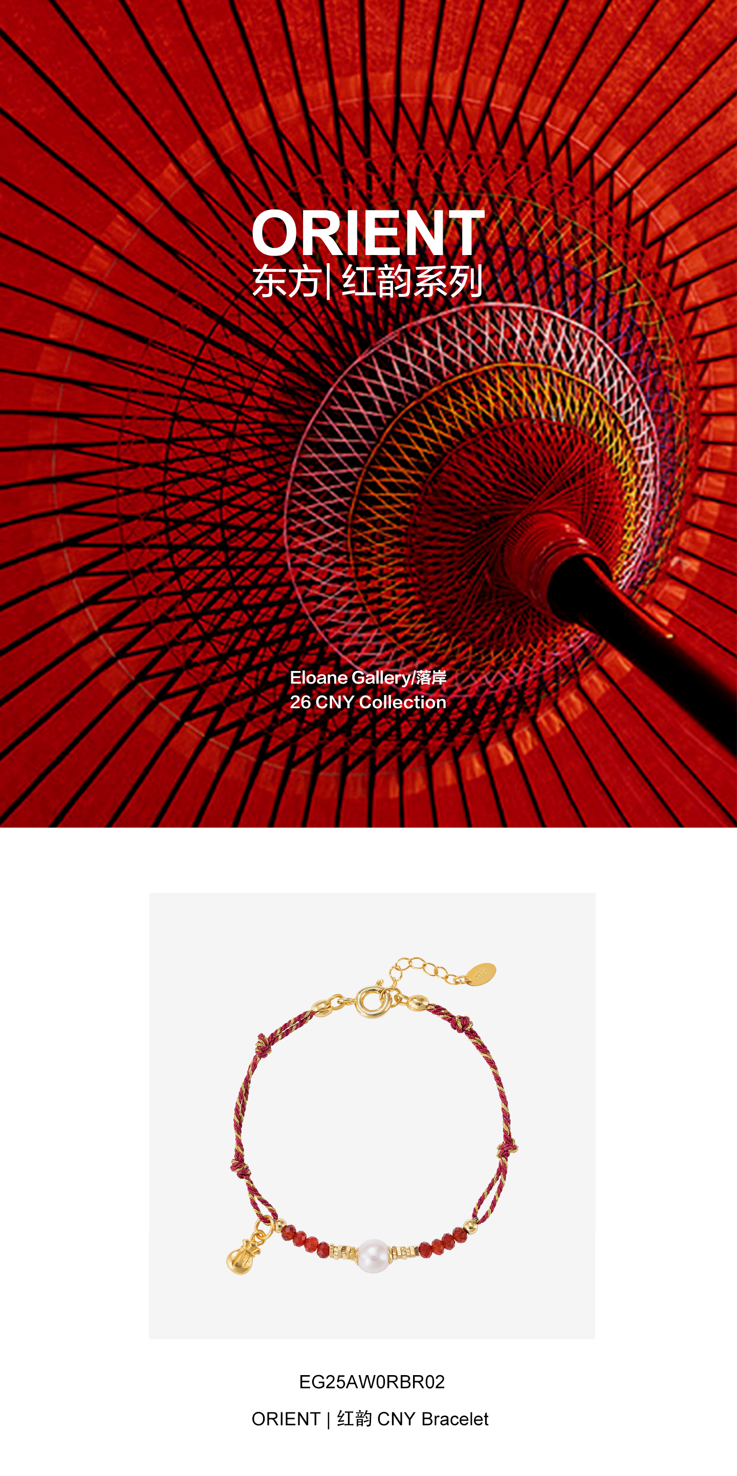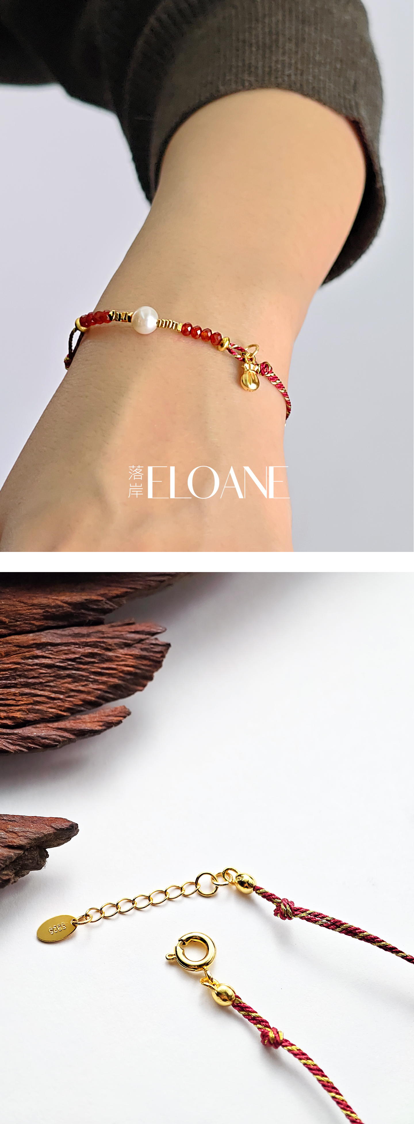 ELOANE GALLERY落岸 天然淡水珍珠红玛瑙碎金钱袋吊坠红绳手链ORIENT红韵系列