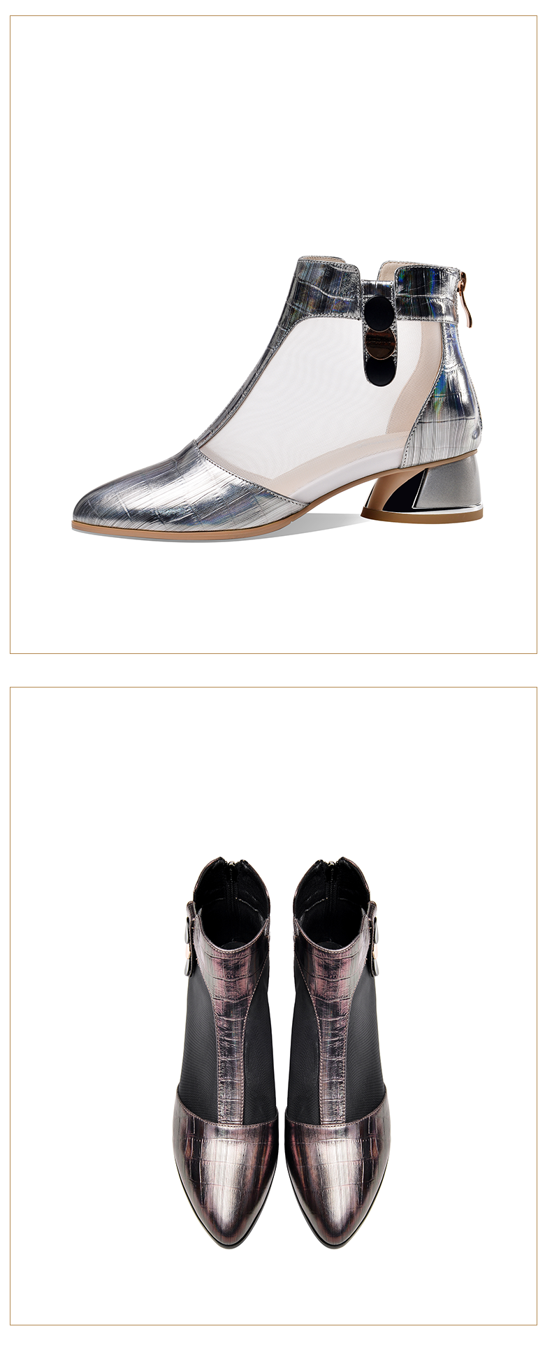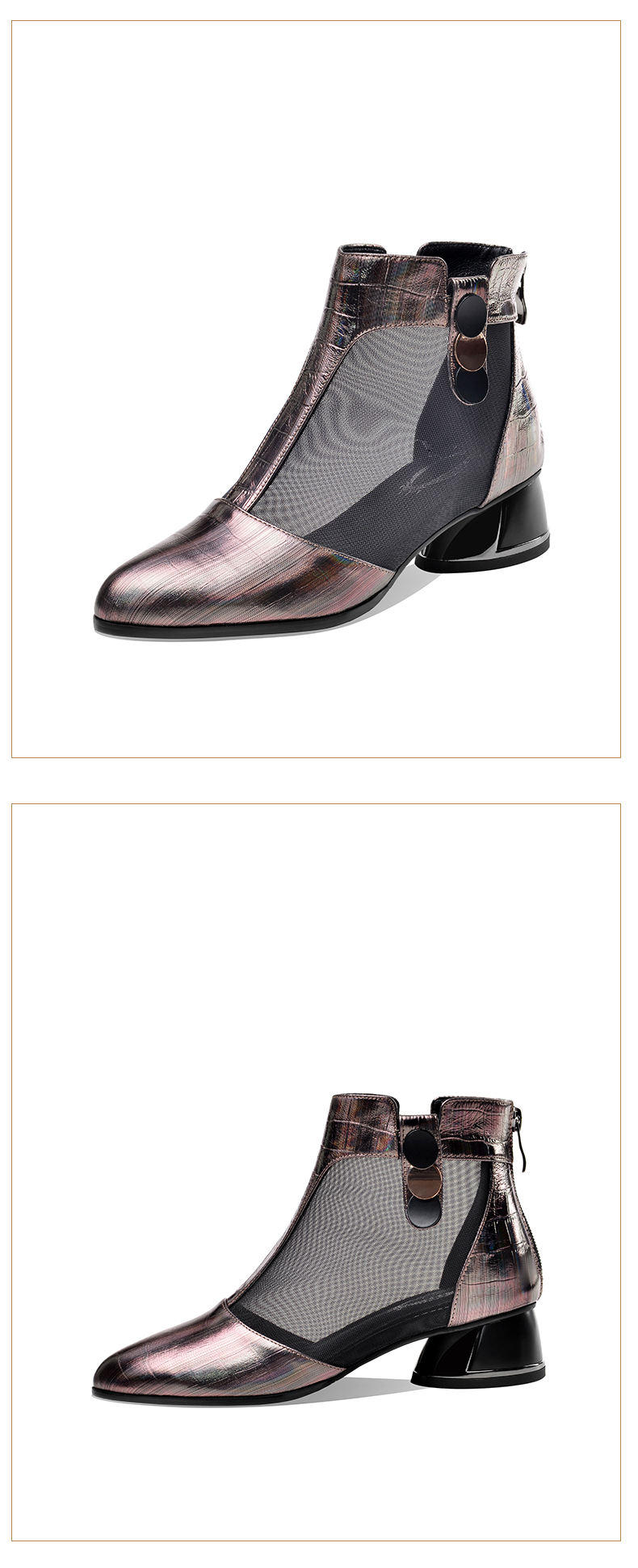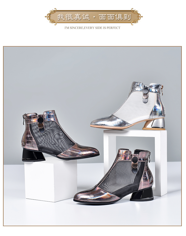新款粗跟纱网短靴粗跟凉靴靴子HYT-272A