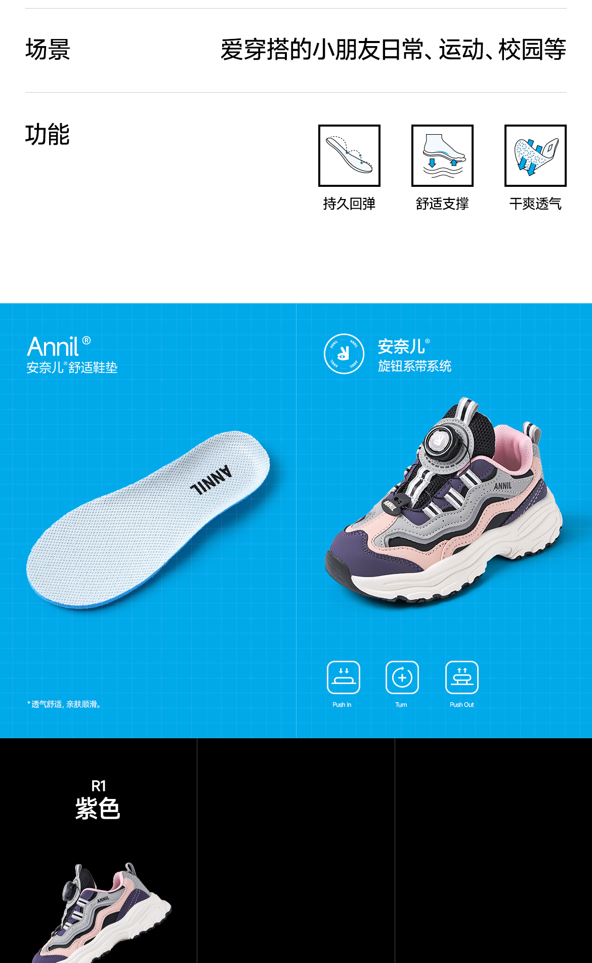 ANNIL/安奈儿童鞋男女童春季防滑减震科学护脚运动鞋儿HM6105775