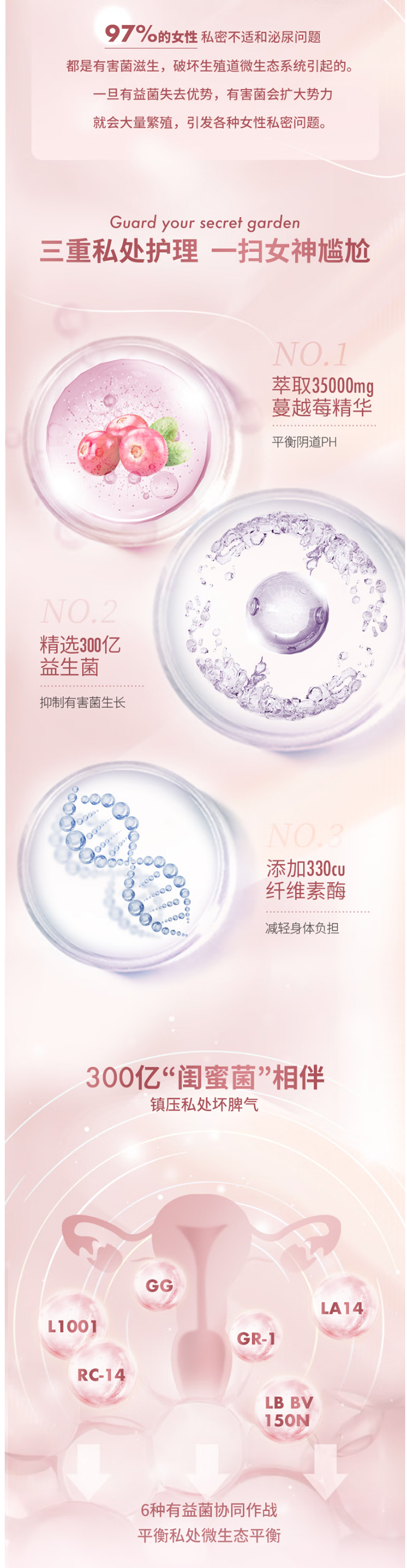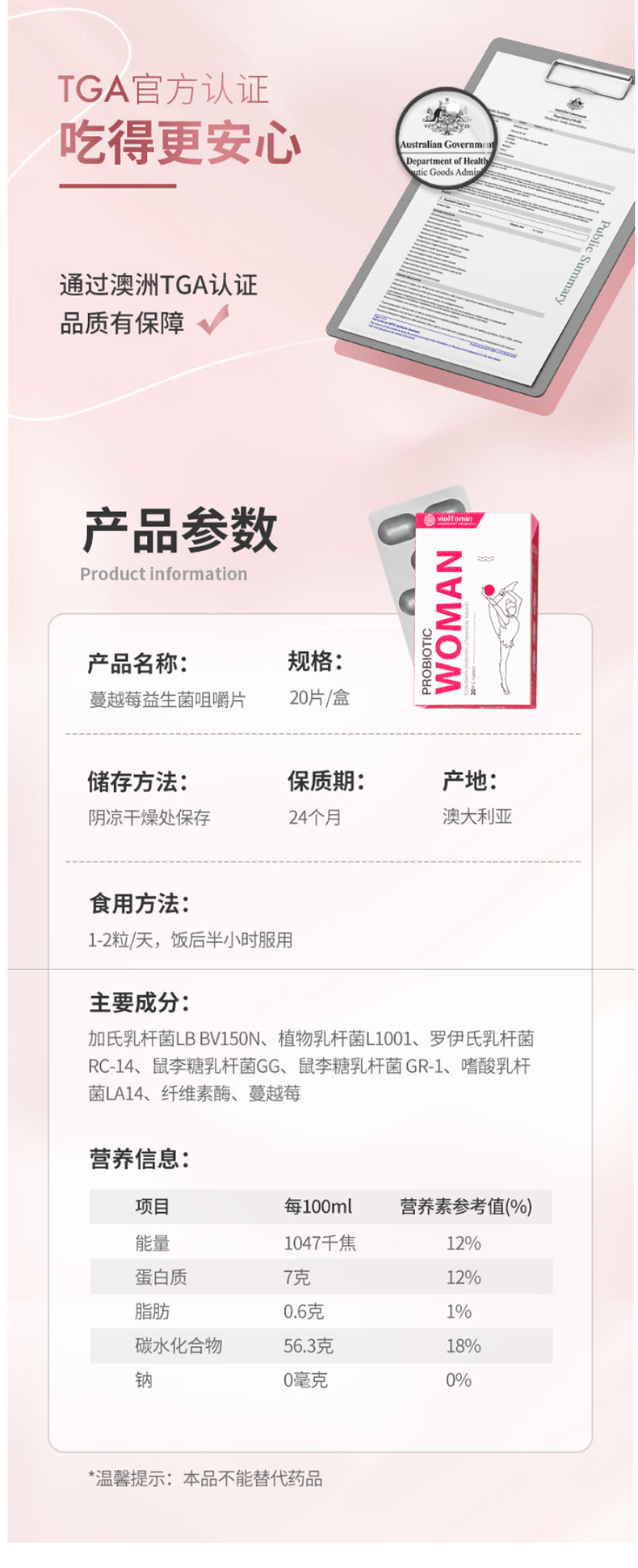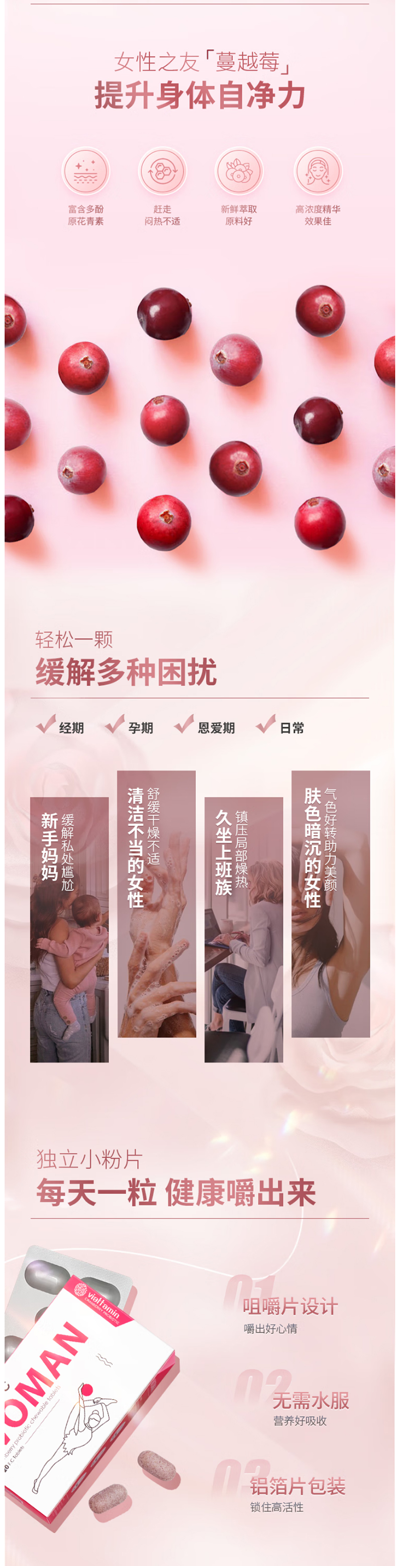 维态美蔓越莓女性益生菌专用乳酸杆菌肠胃消化酶调理片剂澳洲进口20粒
