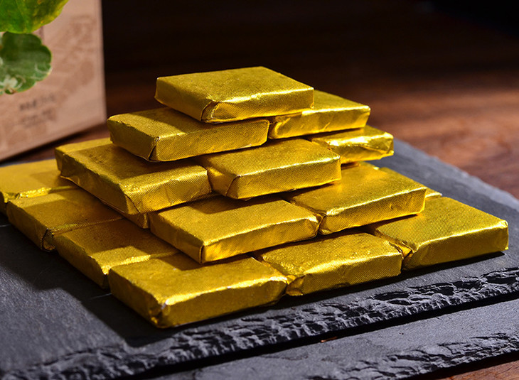 1、用料,拼配班章古茶发酵,用宫廷原料压制,里外一致;