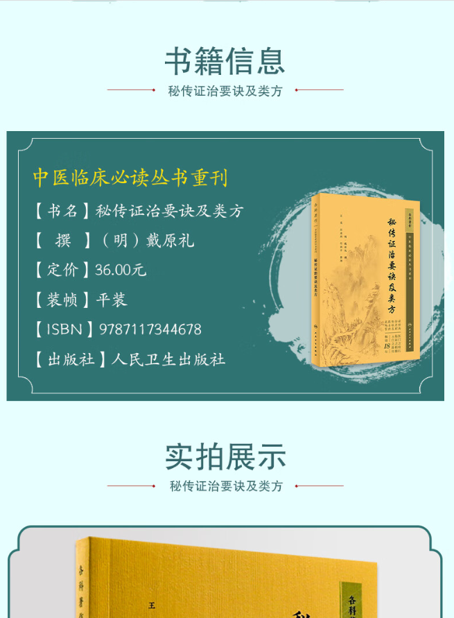 本书系《秘传证治要诀》和《证治要诀类方》的合刊本,是据余时雨校本整理而成。全书共16卷,其中《要诀》12卷,分诸中门、诸伤门、诸气门、诸血门、诸痛门、诸嗽门、寒热门、大小腑门、虚损门、拾遗门、疮毒门、妇人门等12门,主要论述各科疾病的病因、病机、症状、治法等;《类方》四卷,是根据《要诀》中的各门分类处方,按汤、饮、丸、散、膏、丹剂型排列,主要阐述了各科病证的方药。全书全面反映了戴原礼治疗杂病的丰富经验,其对疾病的辨治,议论清晰,方法简明,对现代中医临床有重要指导作用。本次整理重新编排目录,书前增加导读,书末附有方剂索引,很适合广大中医药人员和中医院校学生、自学中医者阅读。