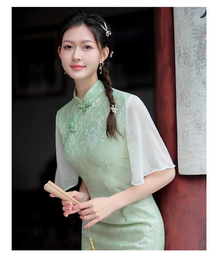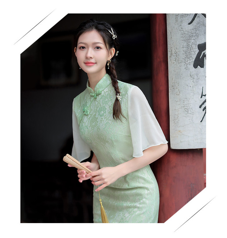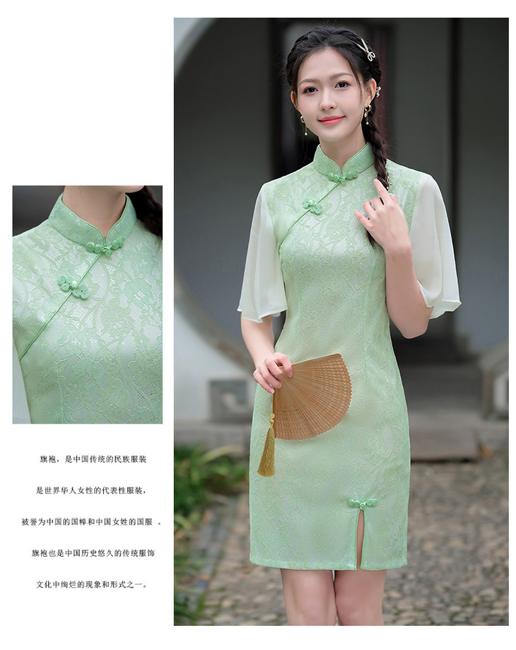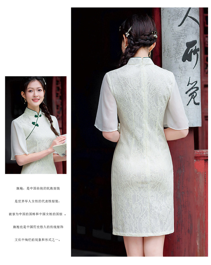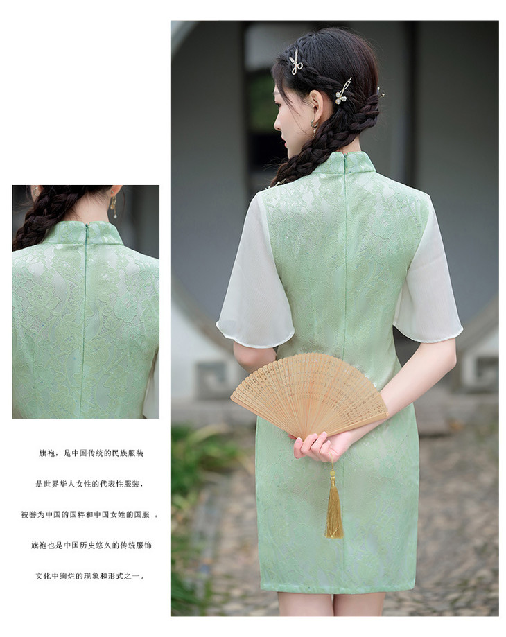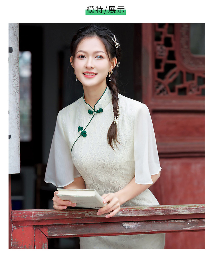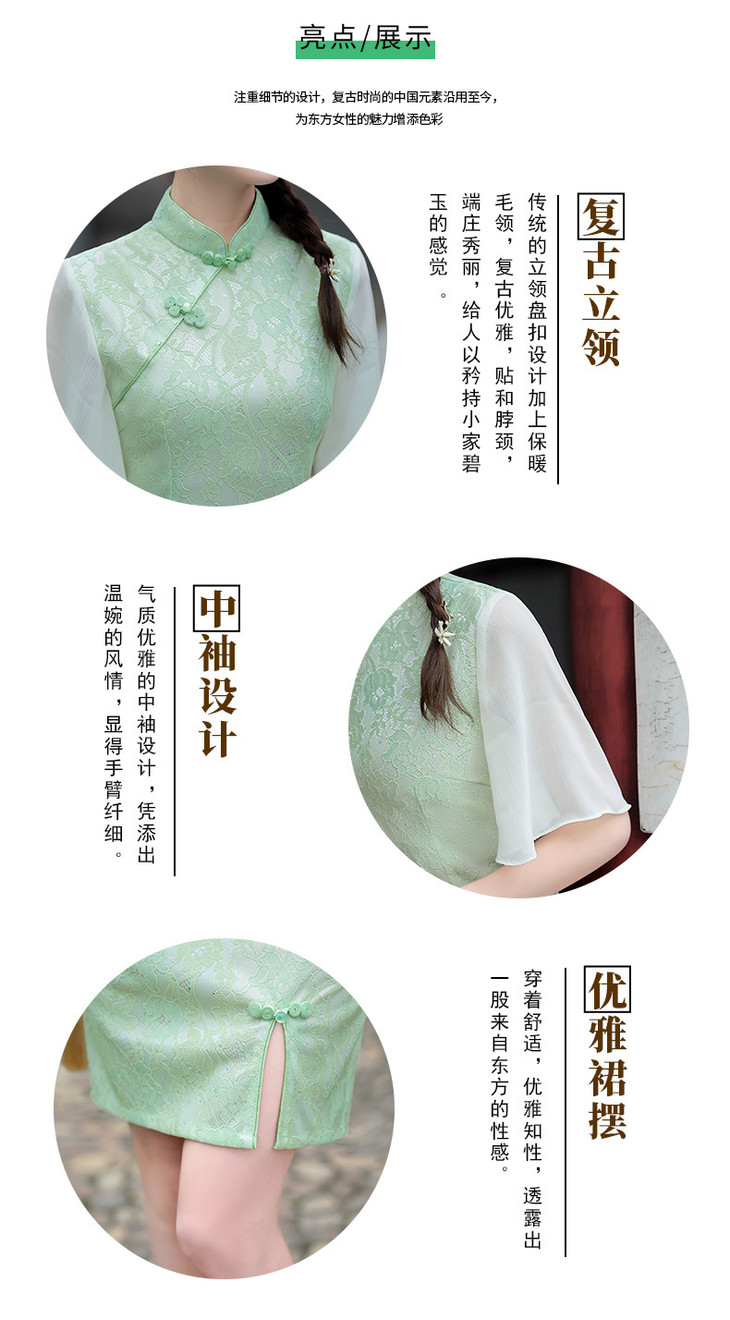 蕾丝气质少女日常旗袍小清新喇叭袖改良旗袍MLS6362