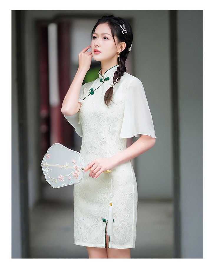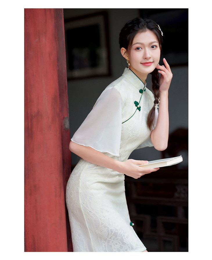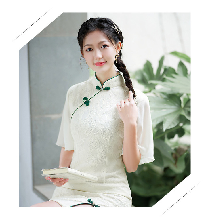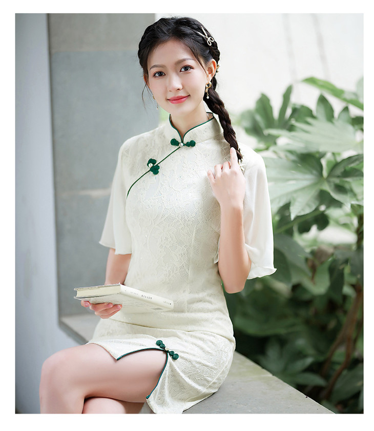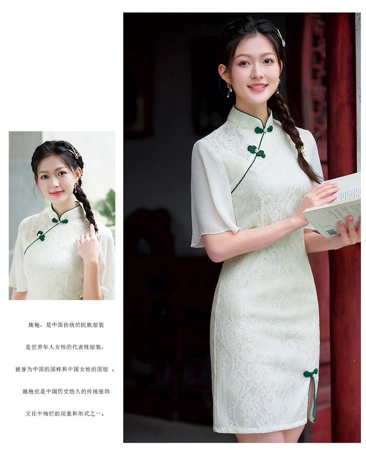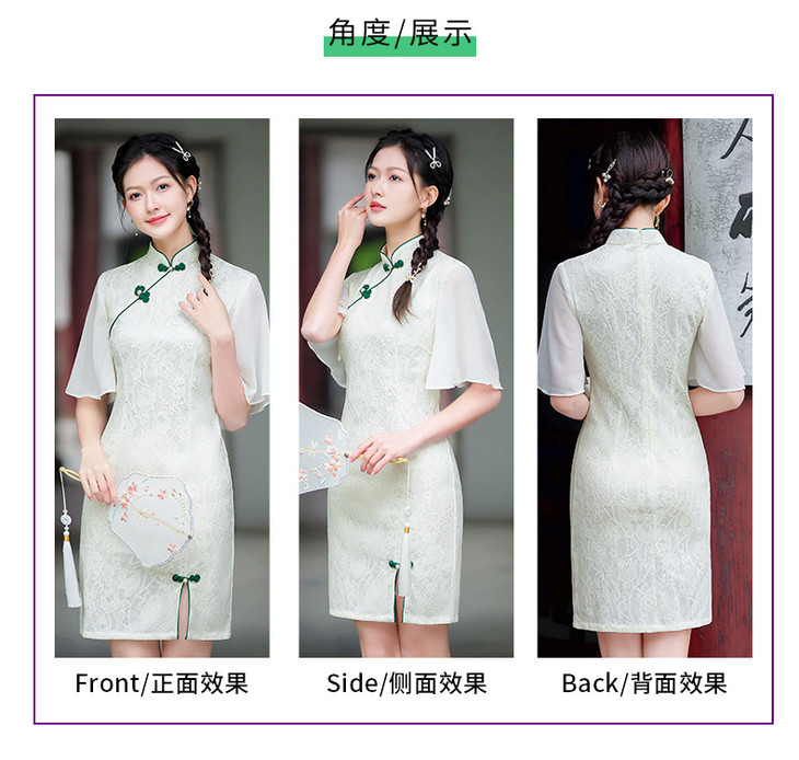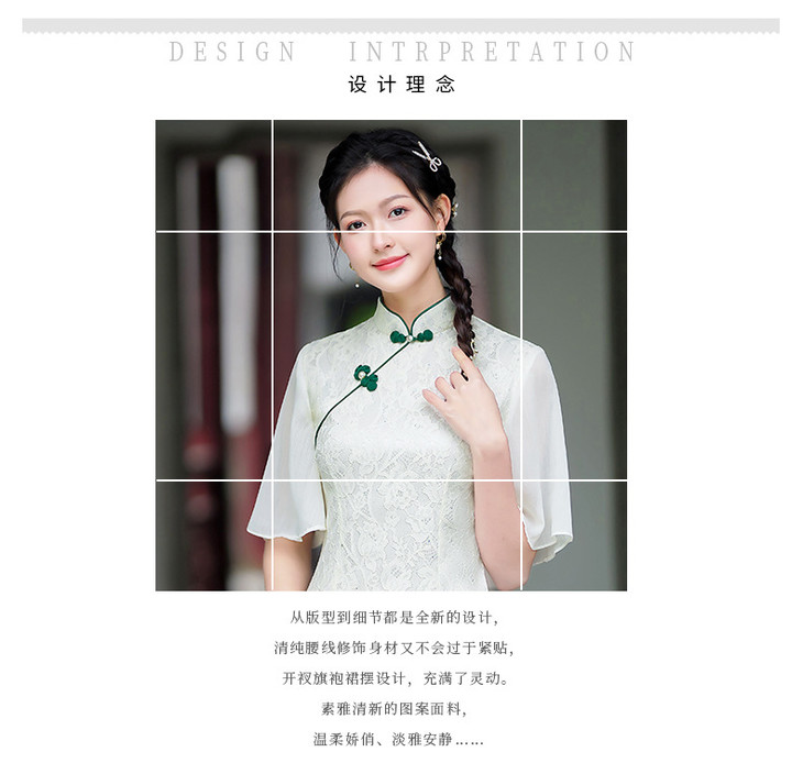 蕾丝气质少女日常旗袍小清新喇叭袖改良旗袍MLS6362