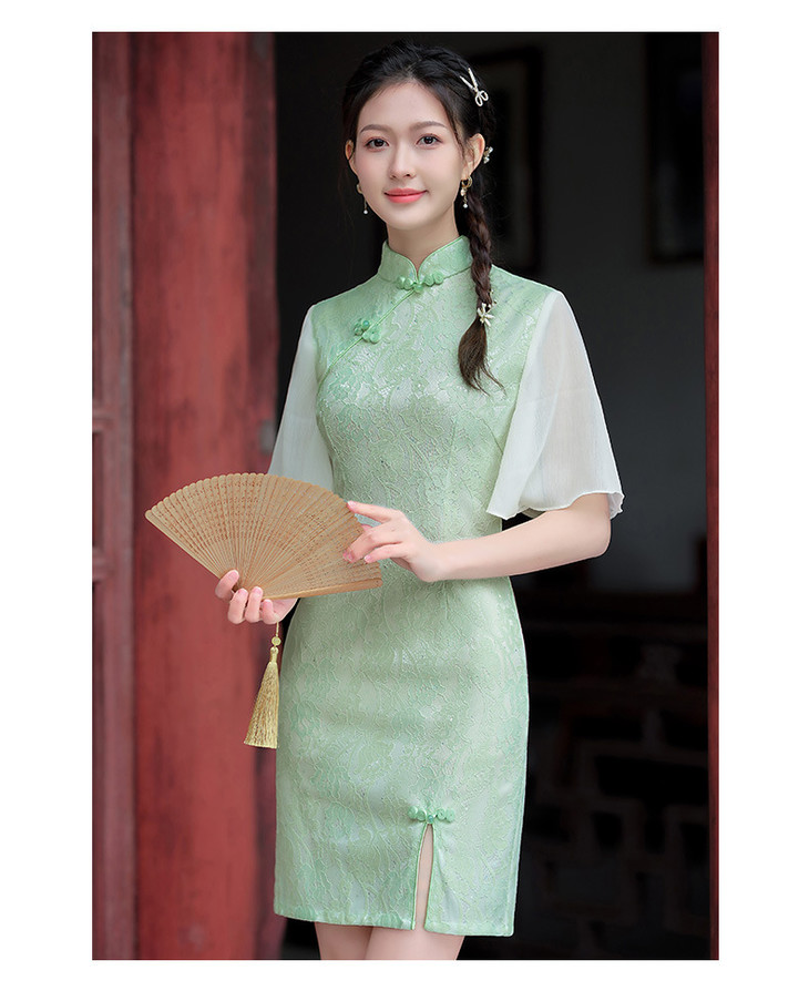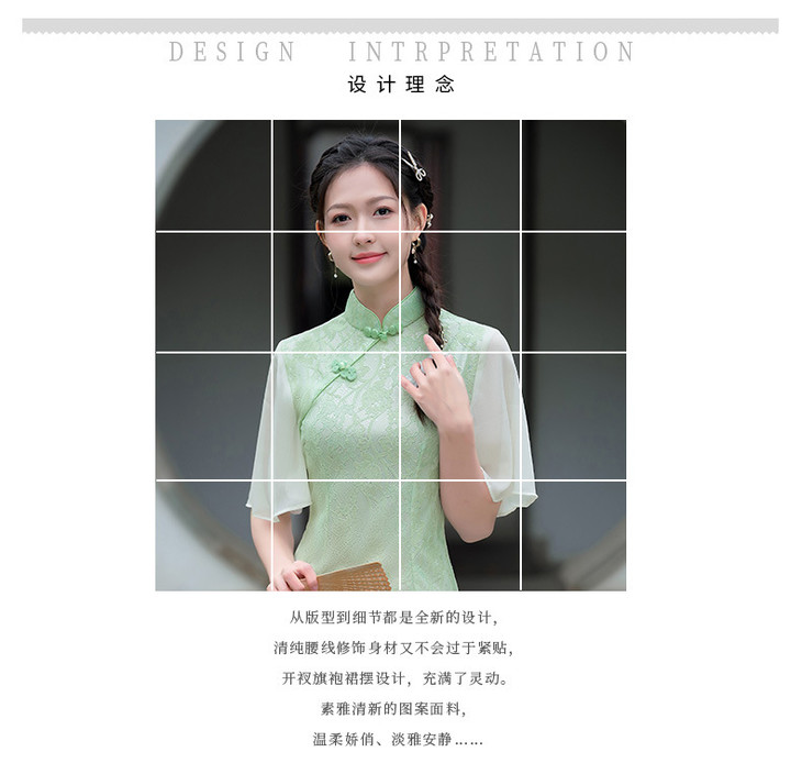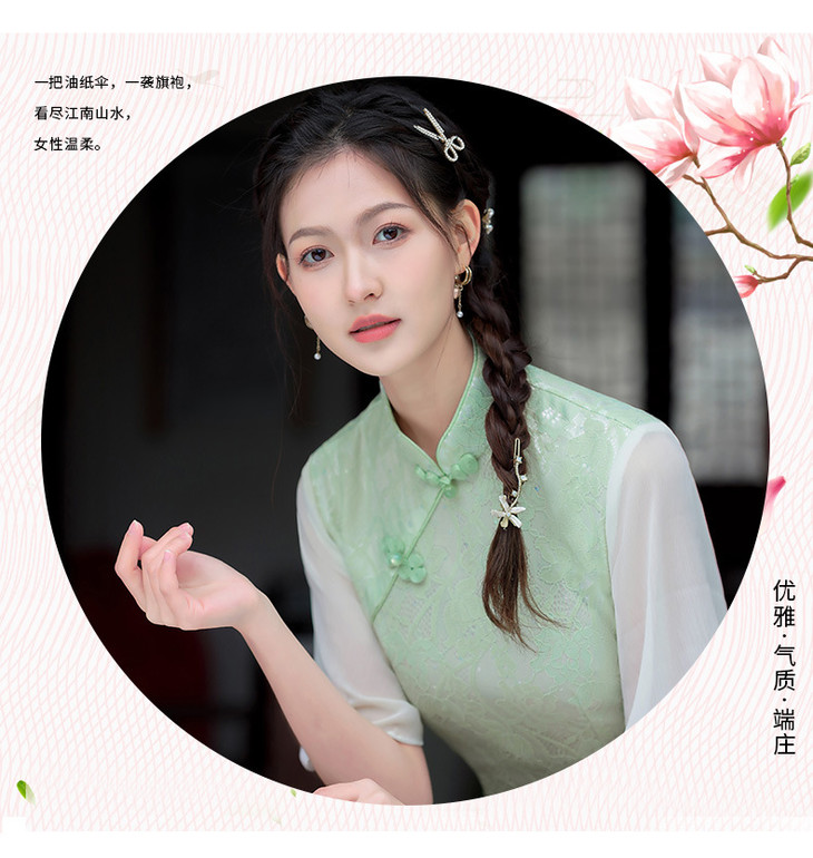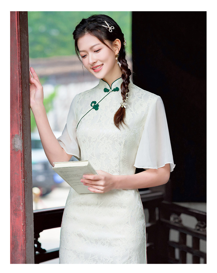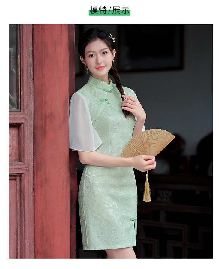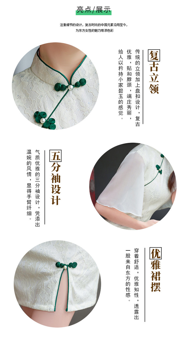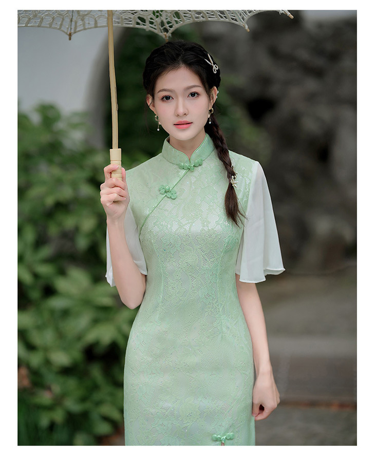 蕾丝气质少女日常旗袍小清新喇叭袖改良旗袍MLS6362