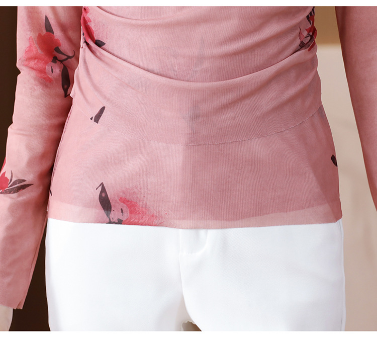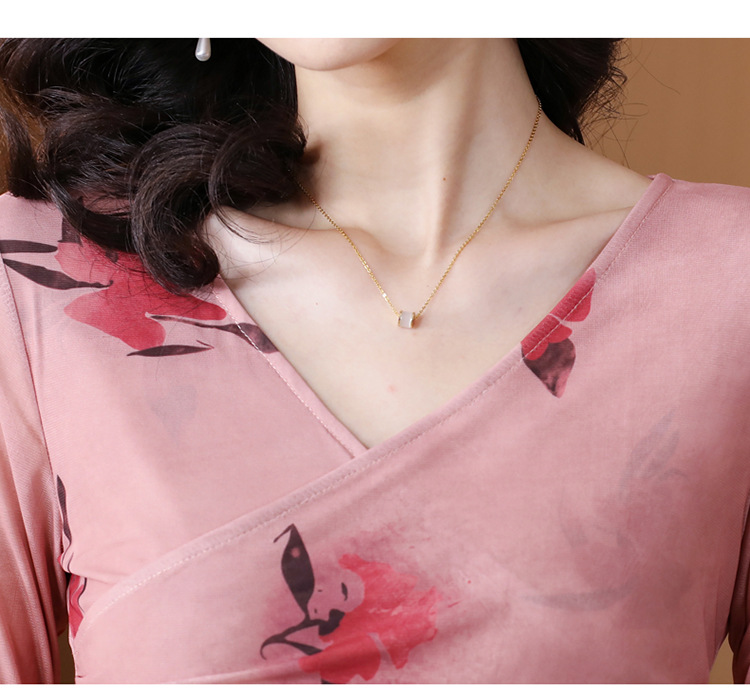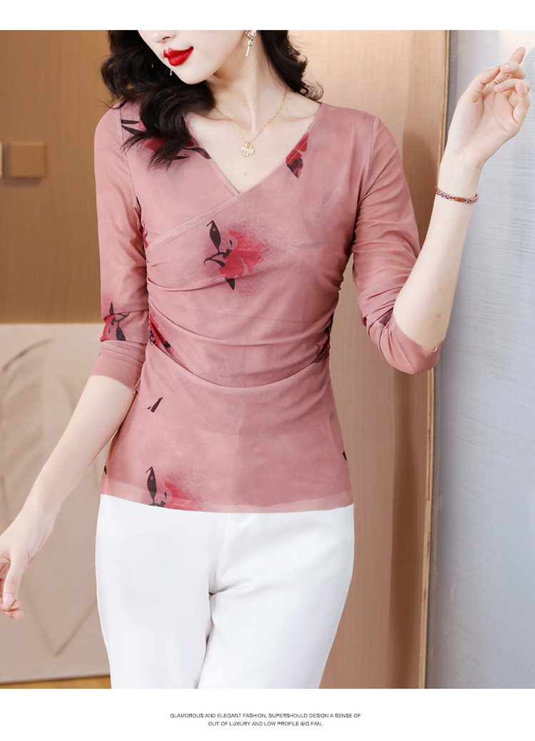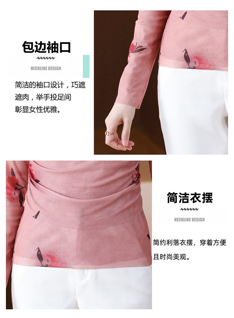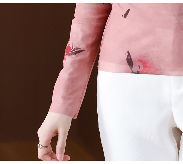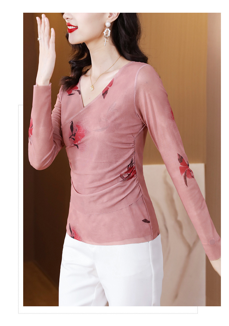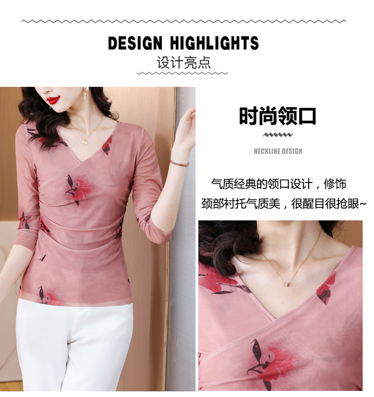 早秋新款,设计感小众女花卉印花v领复古别致优雅长袖上衣KQL-B40N2271