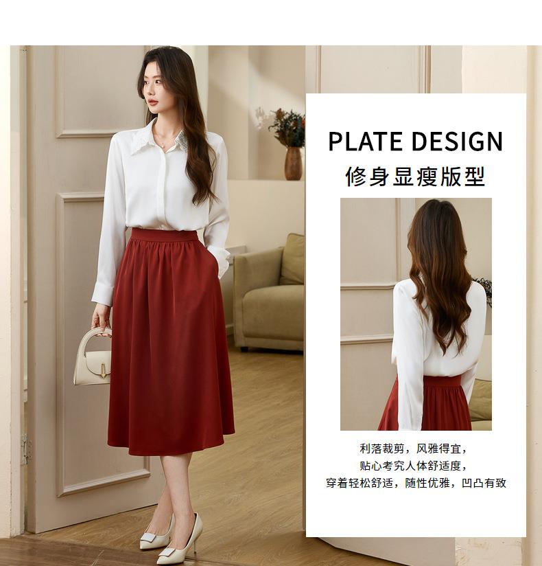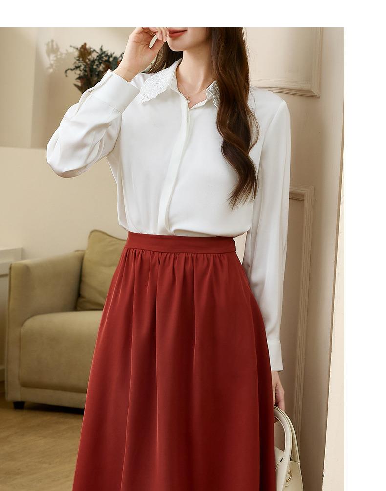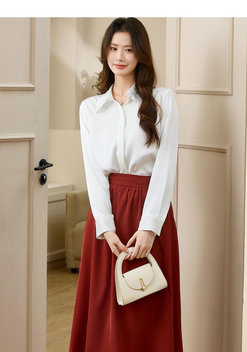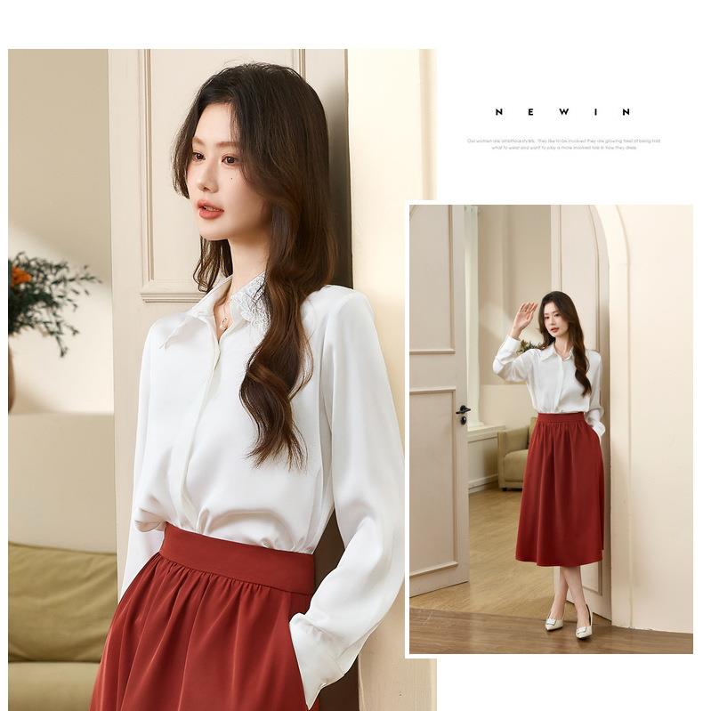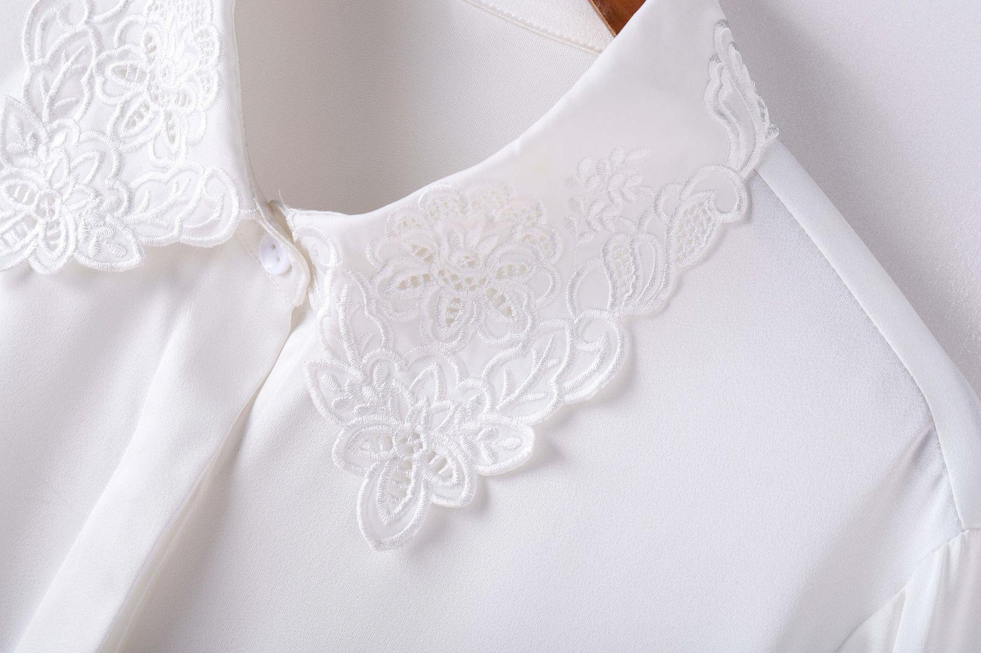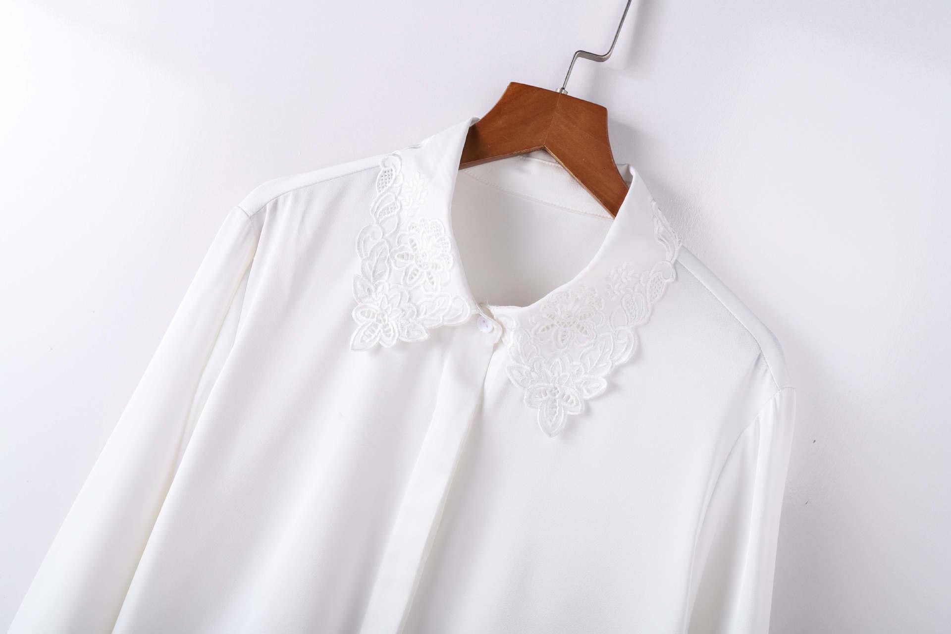 百姿 都市丽人刺绣翻领长袖衬衫女2023早秋新款纯色上衣231222