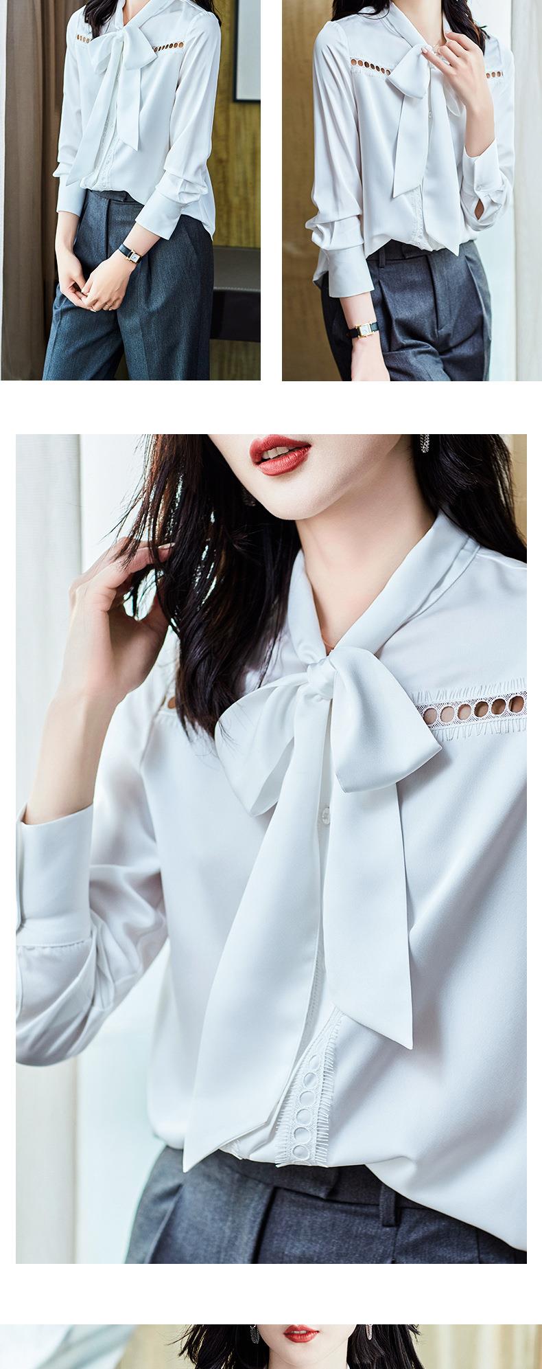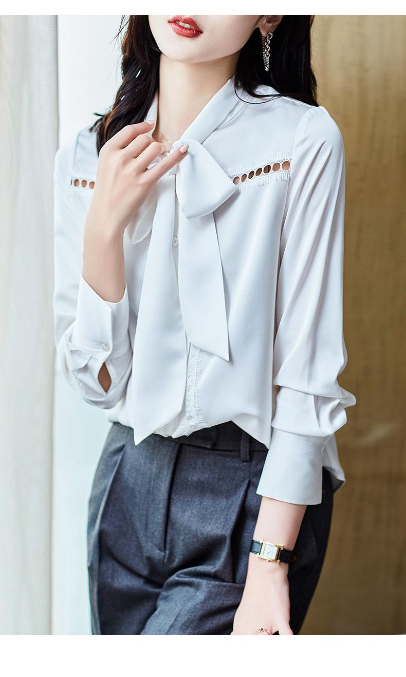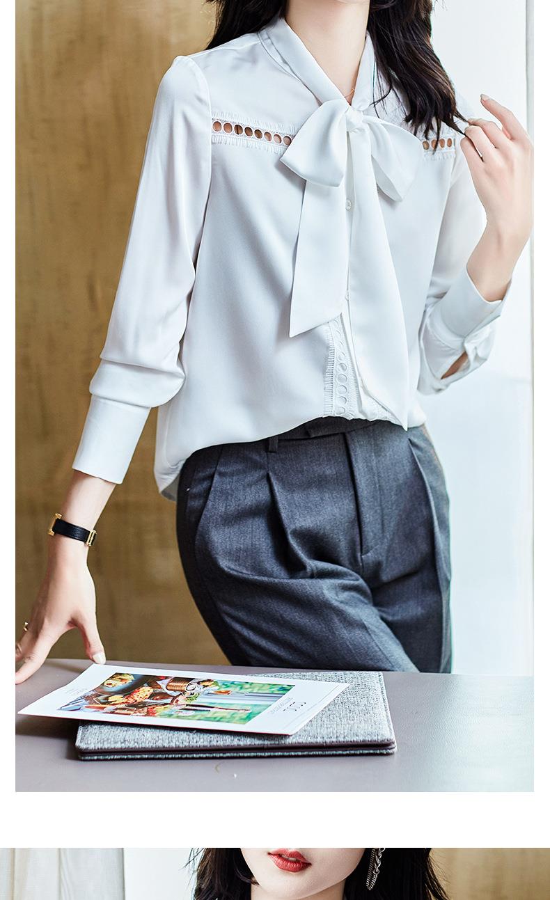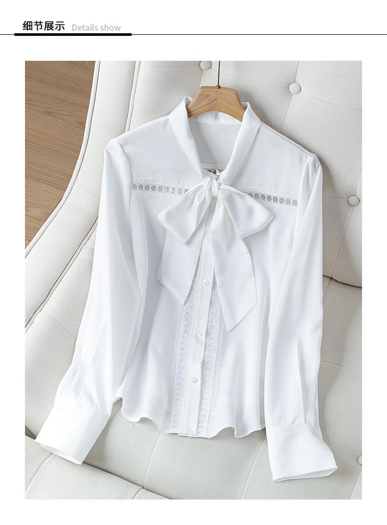 2023秋装新款衬衫女长袖宽松雪纺衫白色女士衬衣A2516