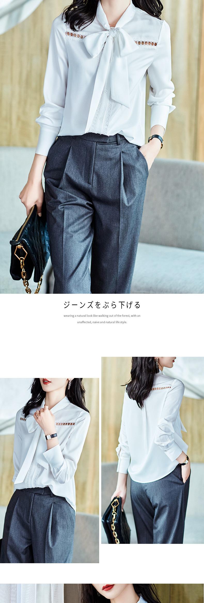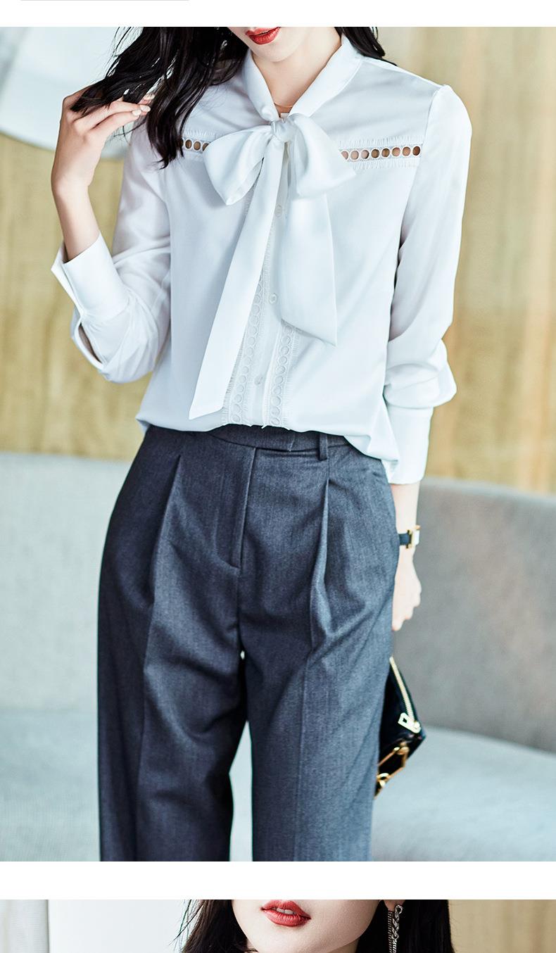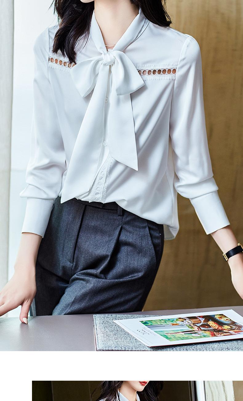 2023秋装新款衬衫女长袖宽松雪纺衫白色女士衬衣A2516
