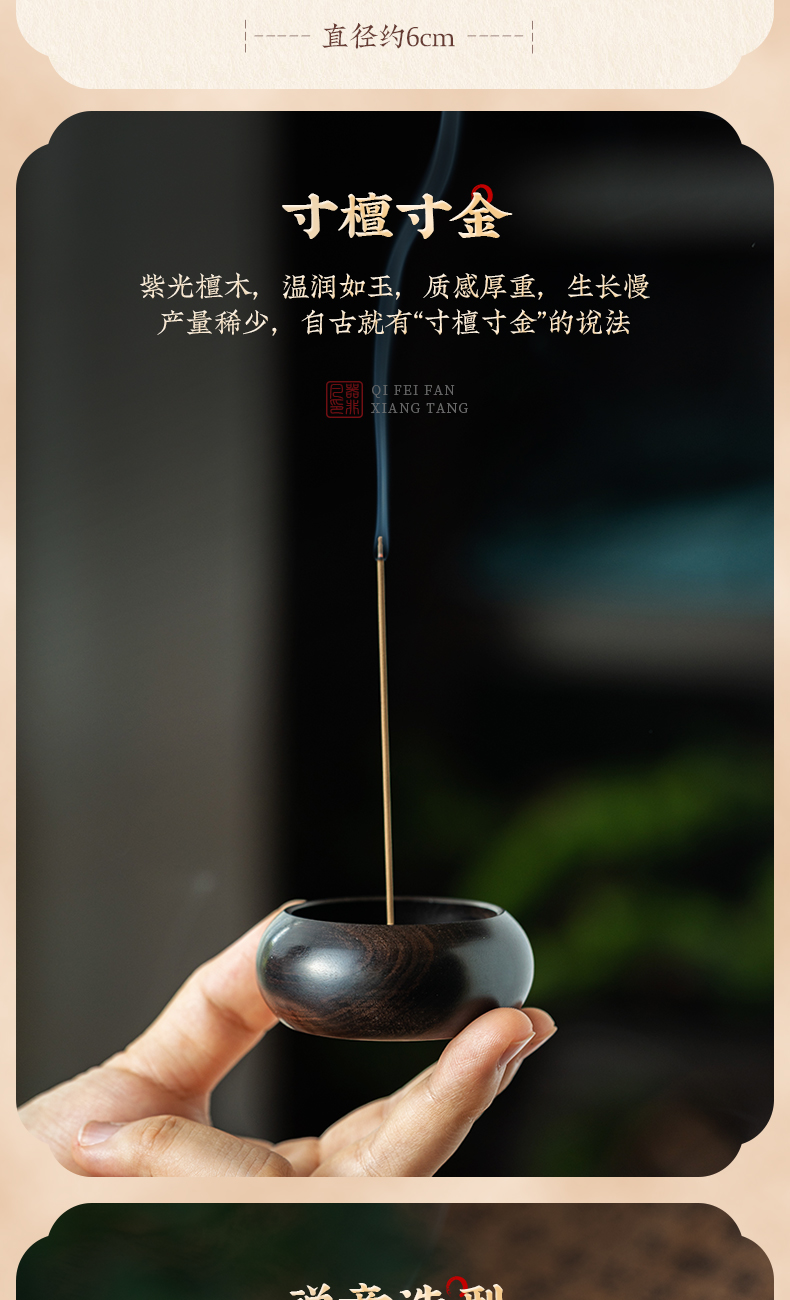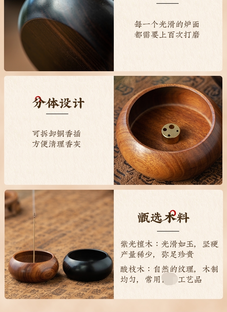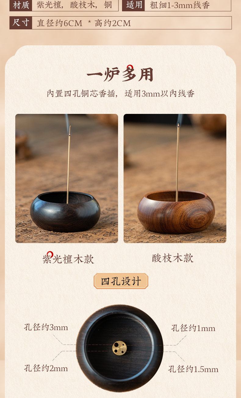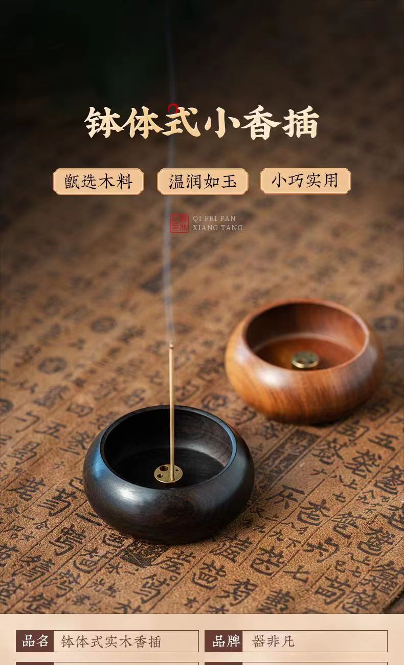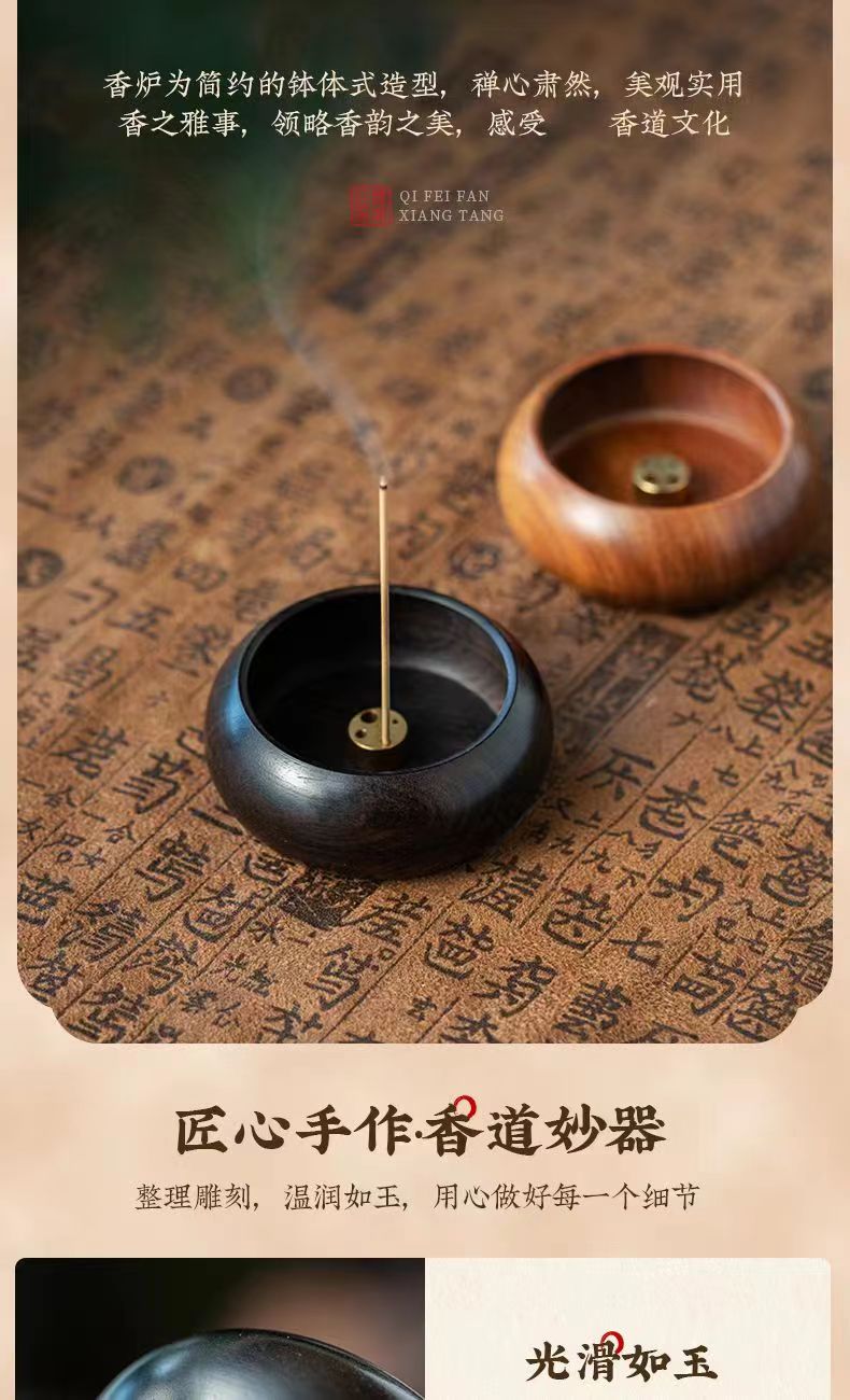 黑檀木迷你小香插 圆形酸枝木质旅行香座 室内沉香檀香香炉