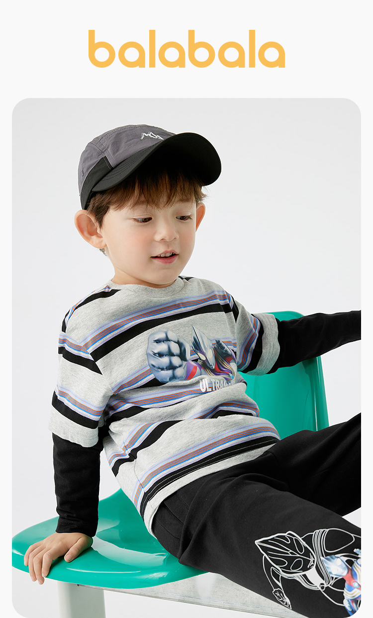 【奥特曼IP】巴拉巴拉男童长袖t恤秋季款纯棉假两件上衣舒适时尚