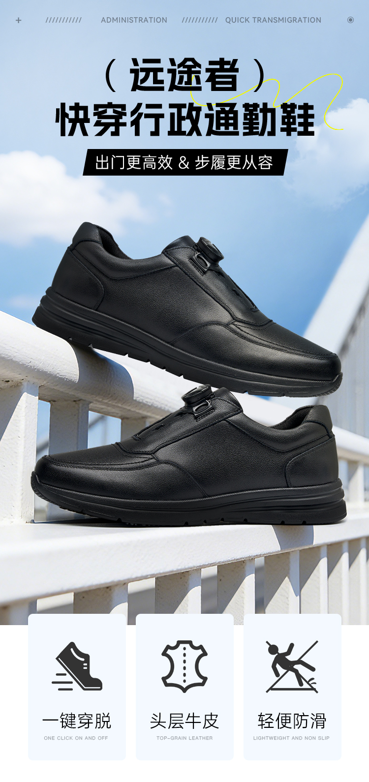 【远途者快速穿脱行政通勤鞋】户外通勤牛皮皮鞋男女款减震鞋商务休闲低帮鞋XT605