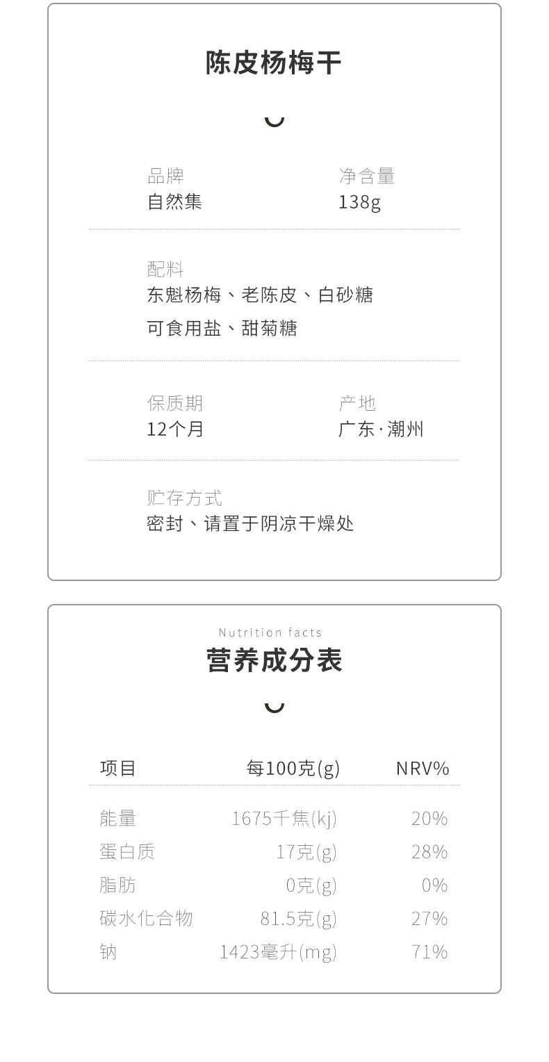 39元任选3件!自然集陈皮杨梅干138g 酸甜双重口感 闽南漳州特产 无添加休闲零食
