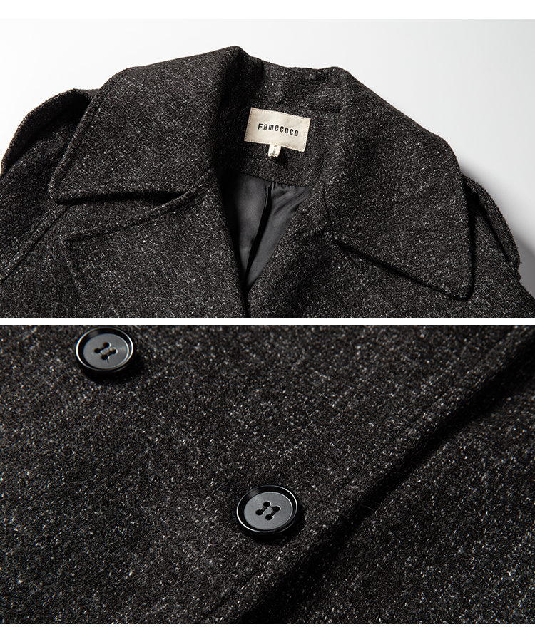 Famecoco范可儿毛呢外套显瘦中长款呢子大衣F198AC126