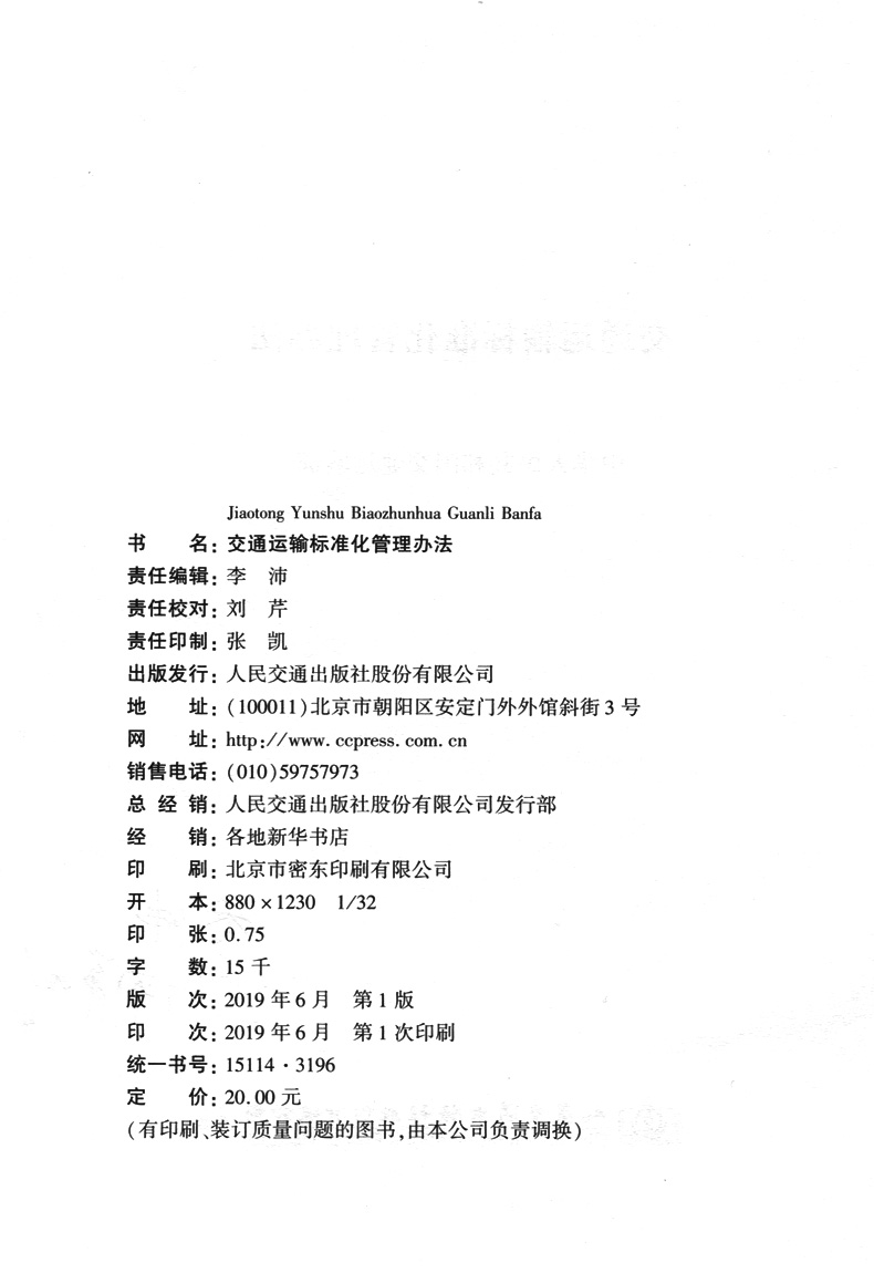 正版现货交通运输标准化管理办法人民交通版社股份有限公司