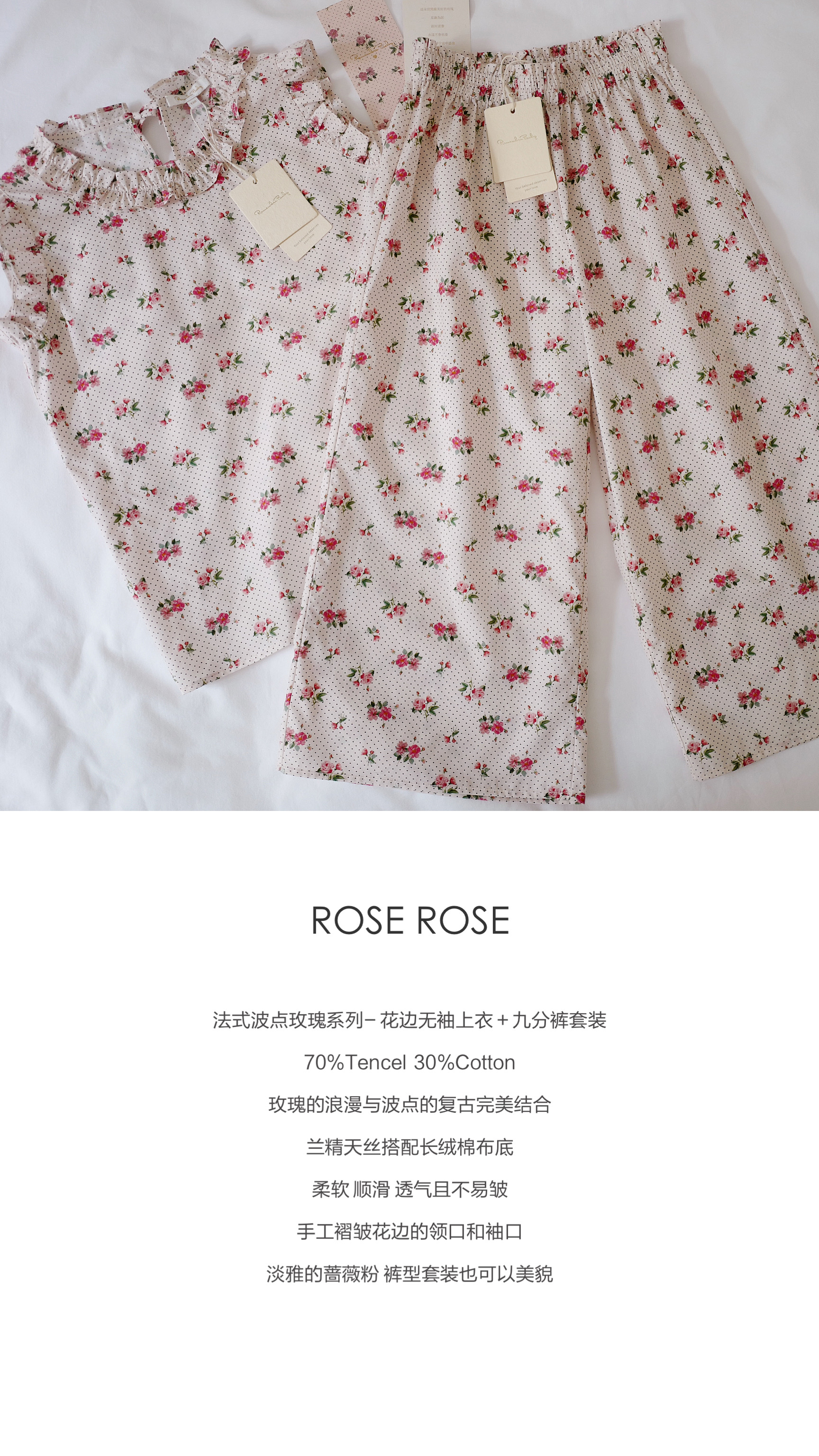 现货 / ROSE ROSE | 法式波点玫瑰系列 - 花边无袖上衣+九分裤套装 蔷薇粉