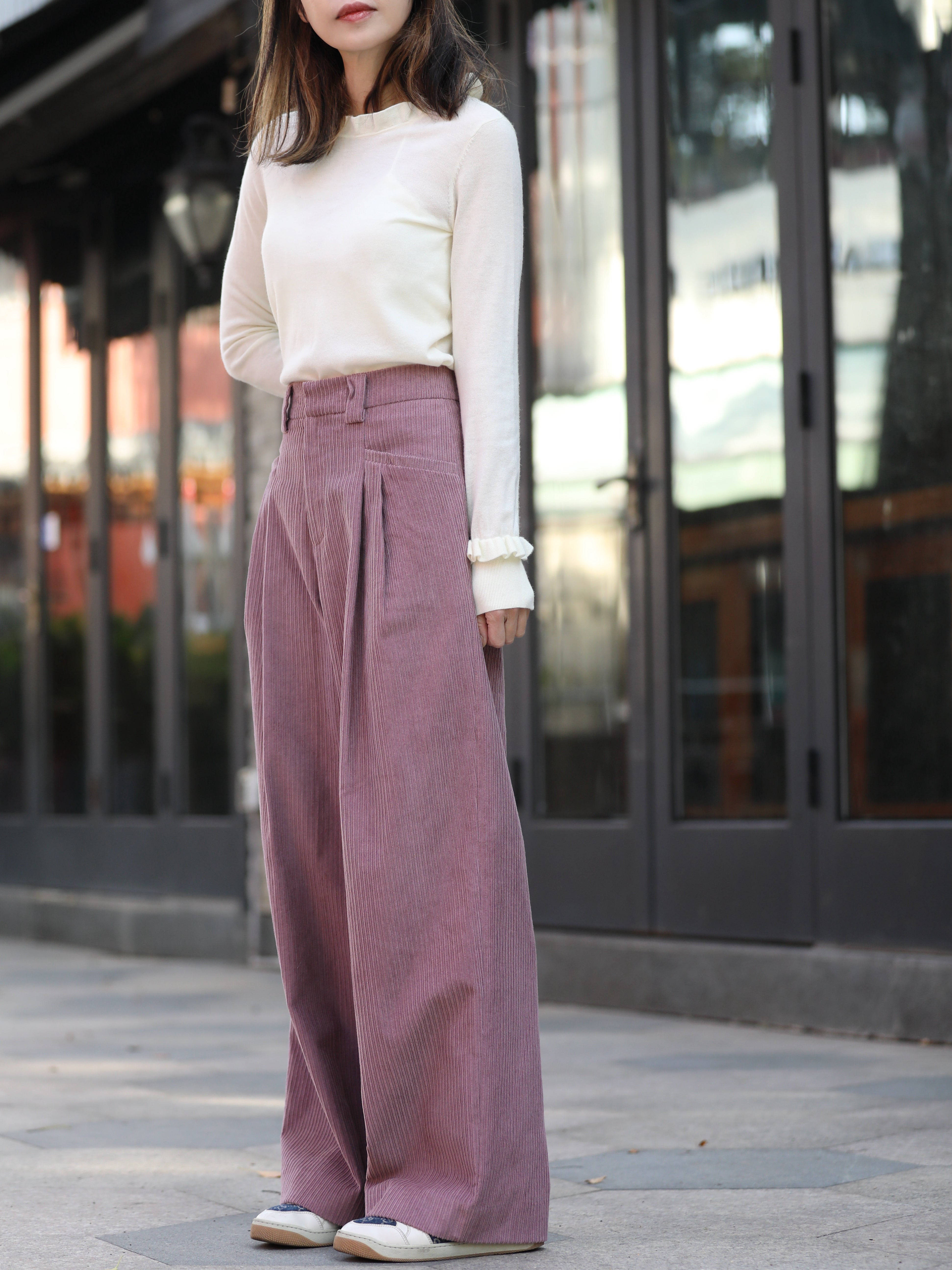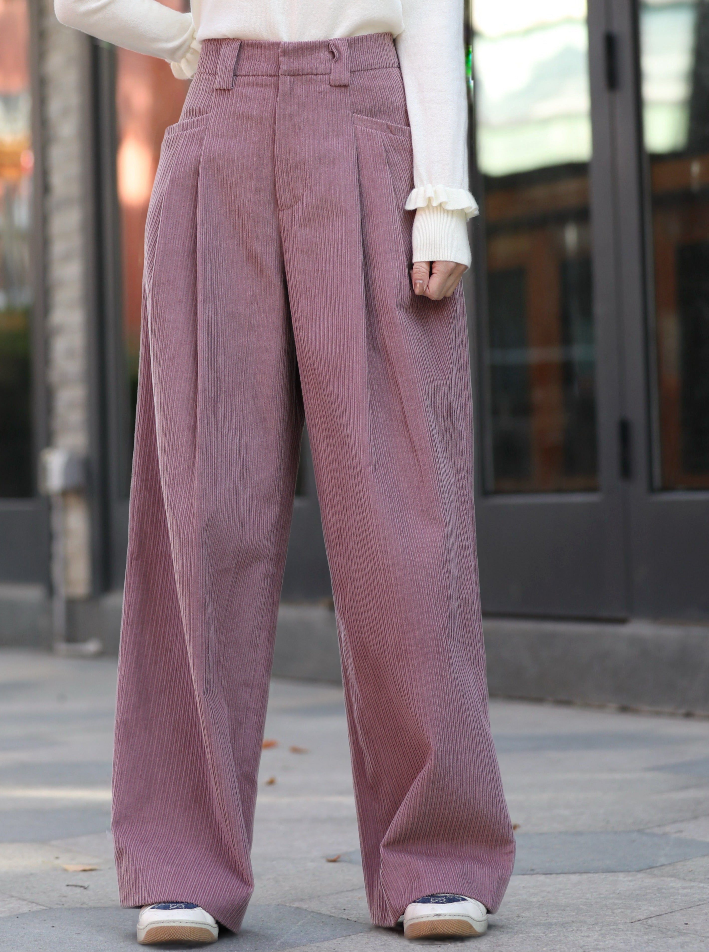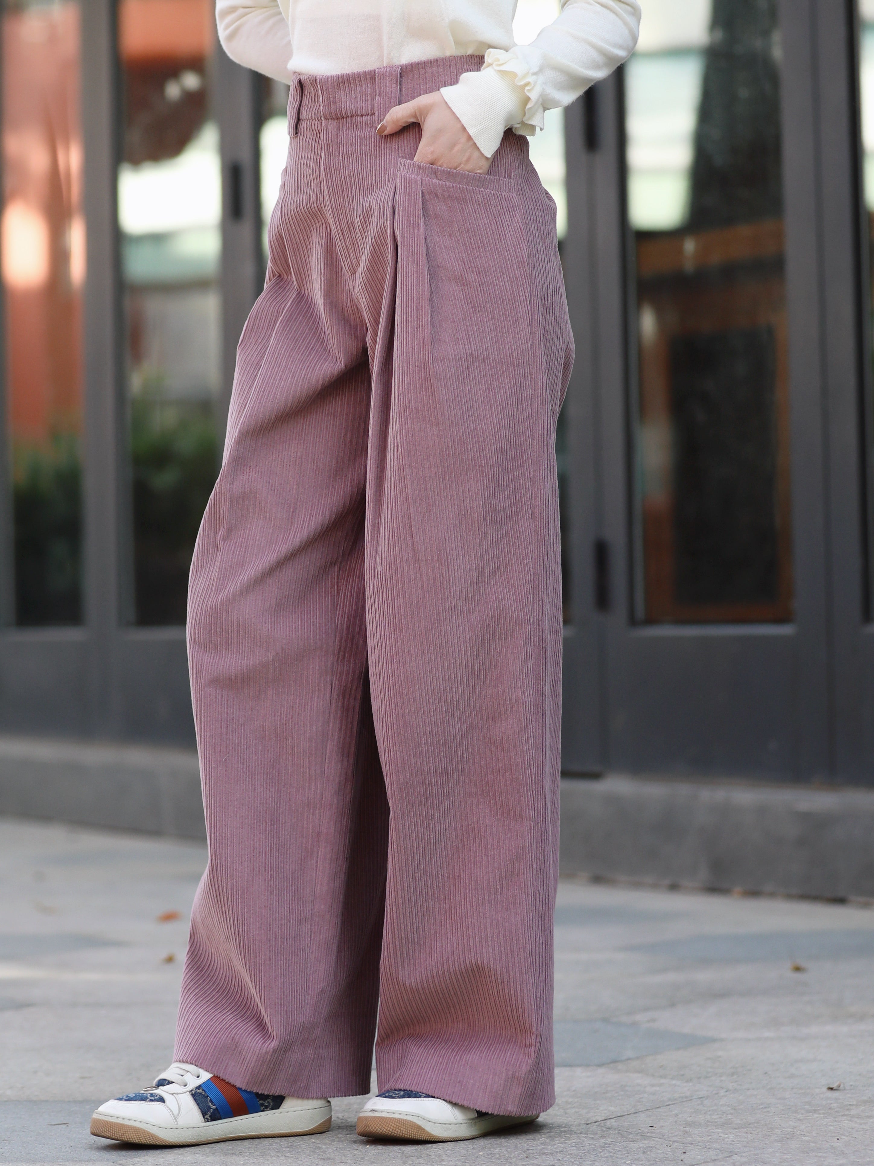 TYNVIE 灯芯绒褶皱阔腿裤 - 粉色