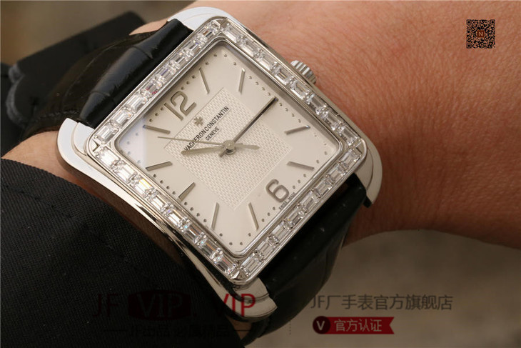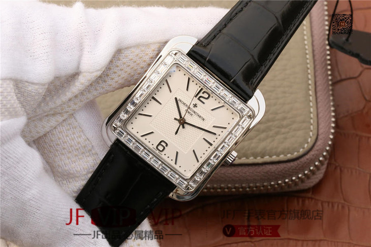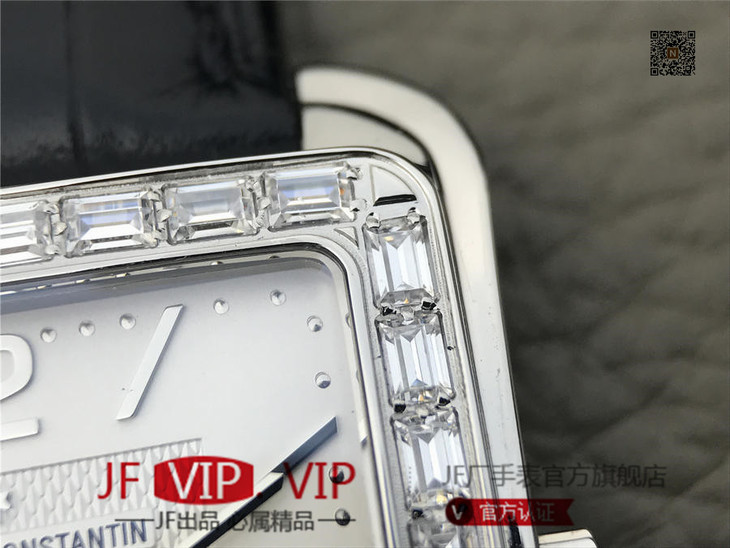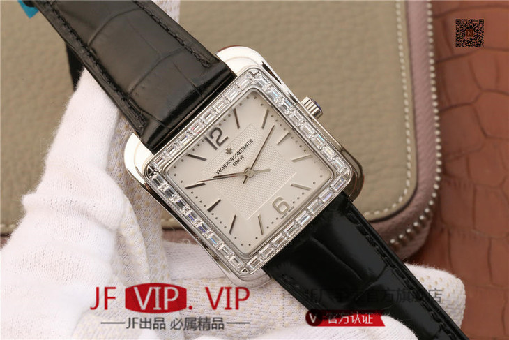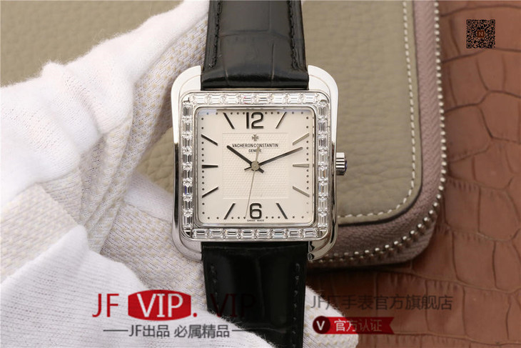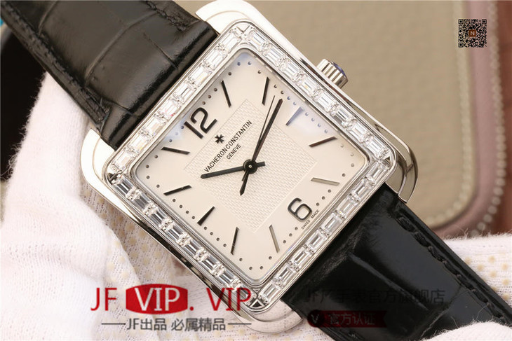 GS江诗丹顿历史名作系列86300款 光泽亮丽的方形外壳,内衬简洁的麦穗面盘,搭配意大利小牛皮表,最大限度还原正品的艺术感官。