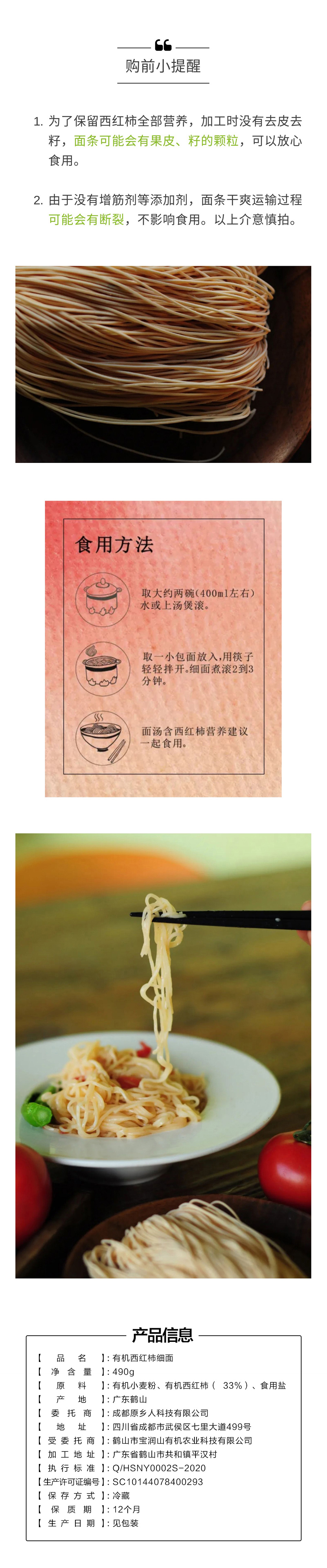有机西红柿面条(成都仓库-顺丰快递) | 60g*8,来自广东鹤山,生产者:邹子龙【合作生产,公平贸易】