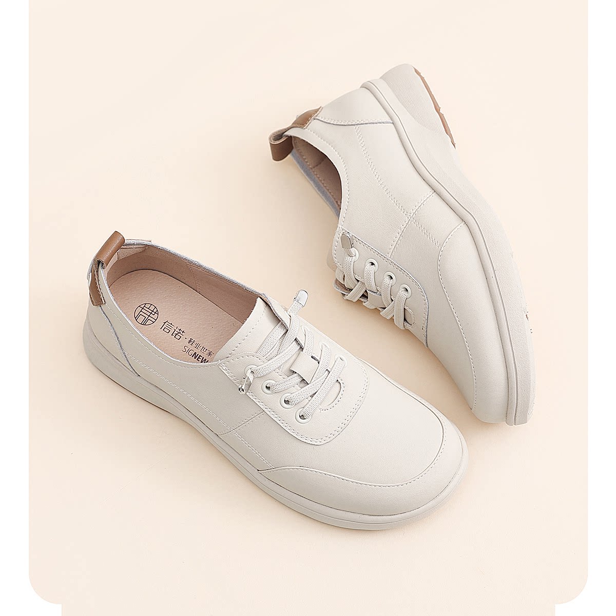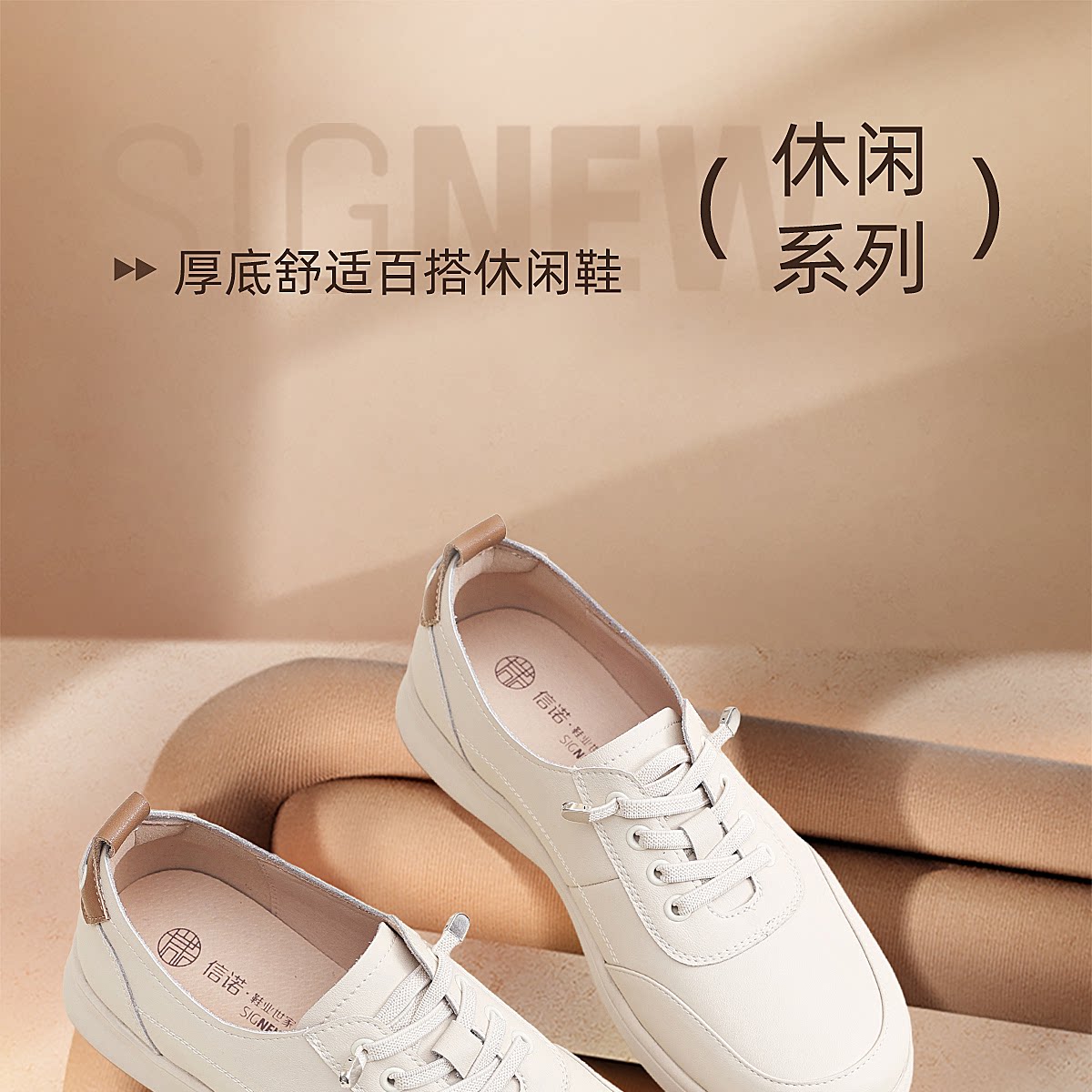 信诺妈妈鞋舒适百搭女鞋厚底小白鞋中老年休闲运动鞋2026春季新款6C5096-3T