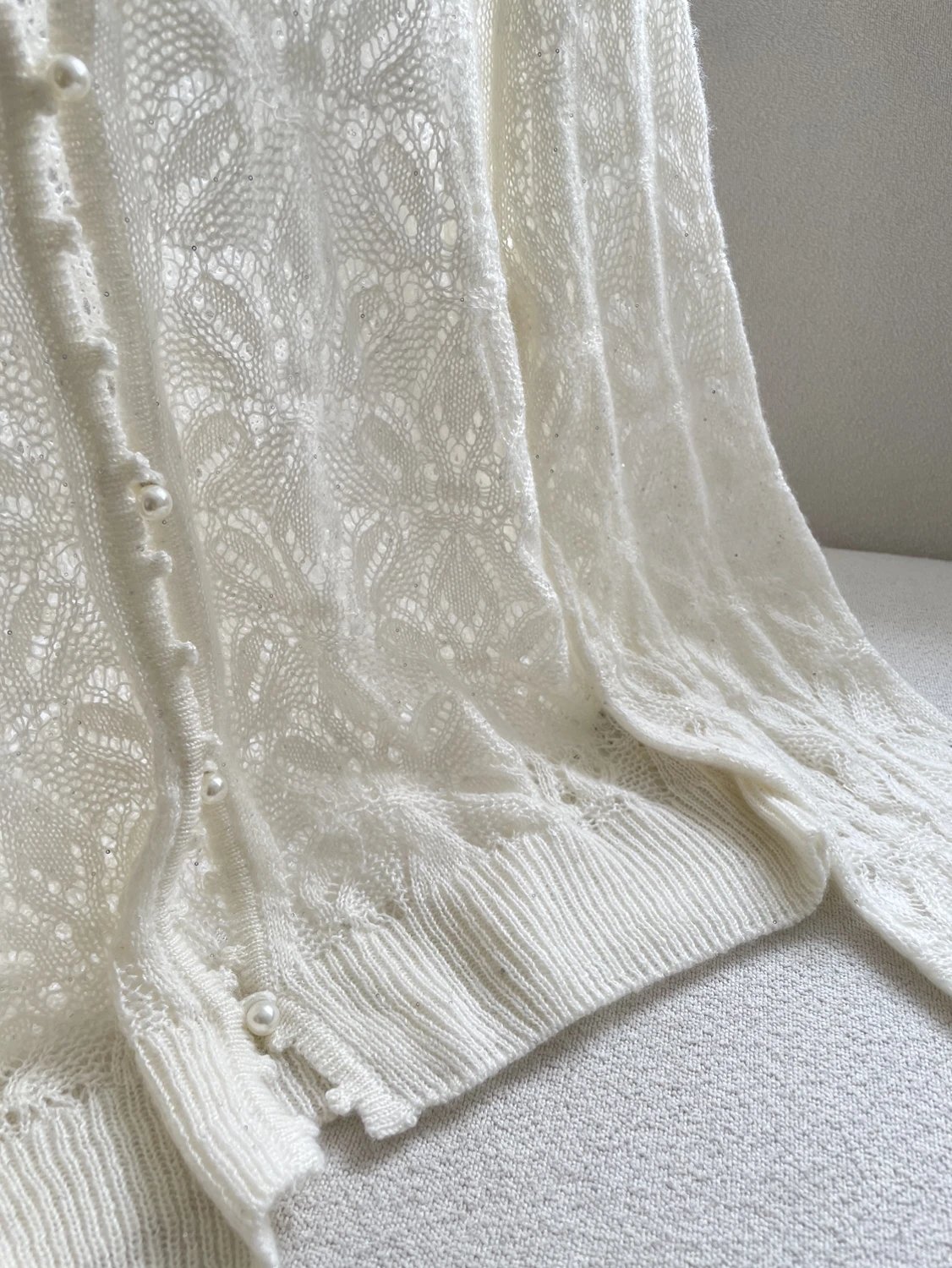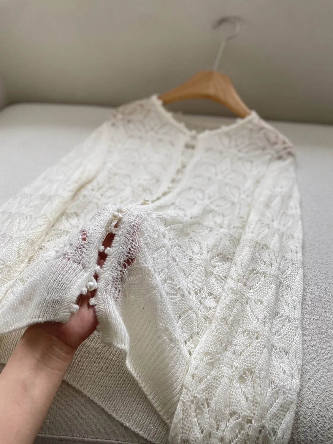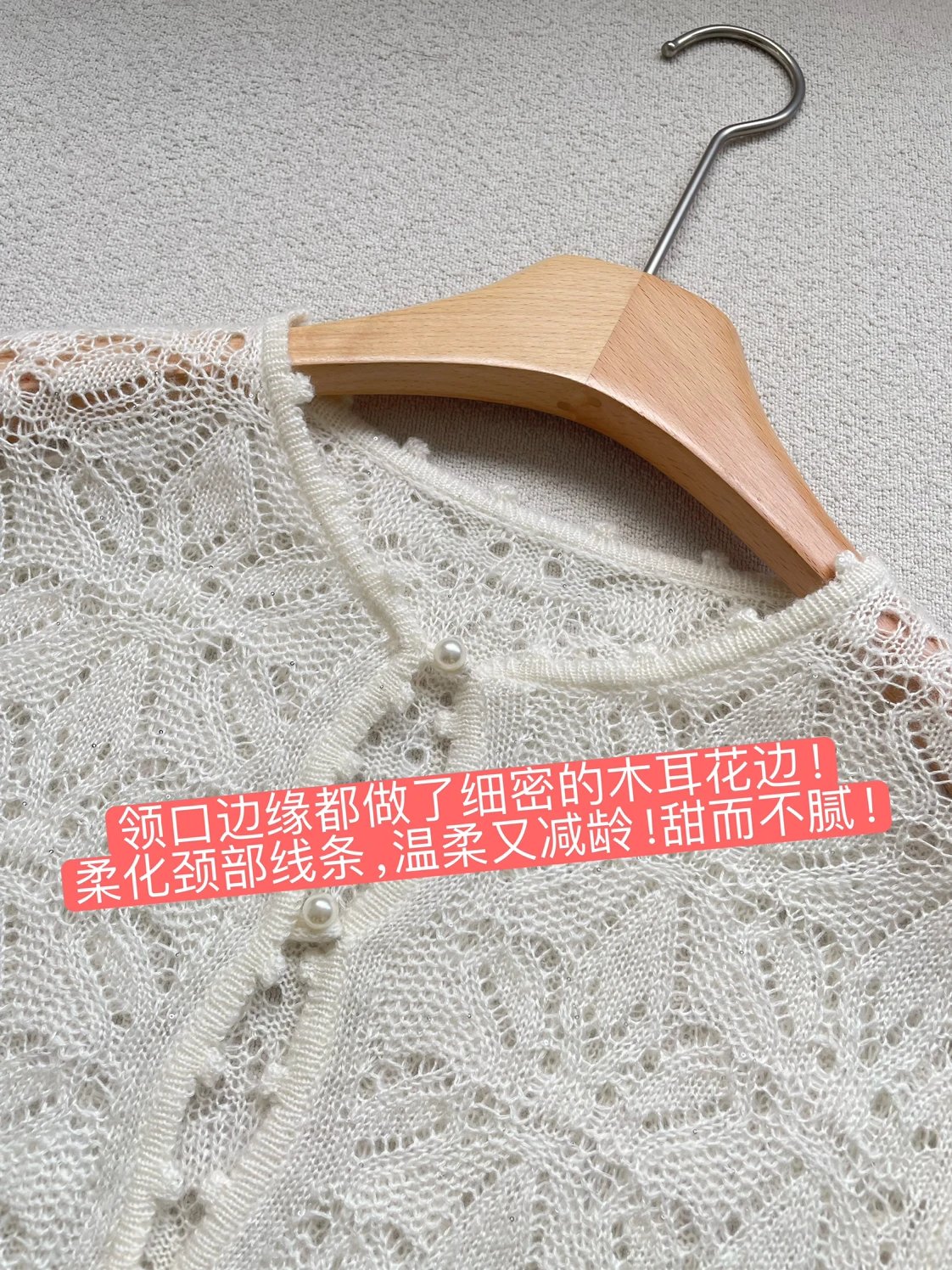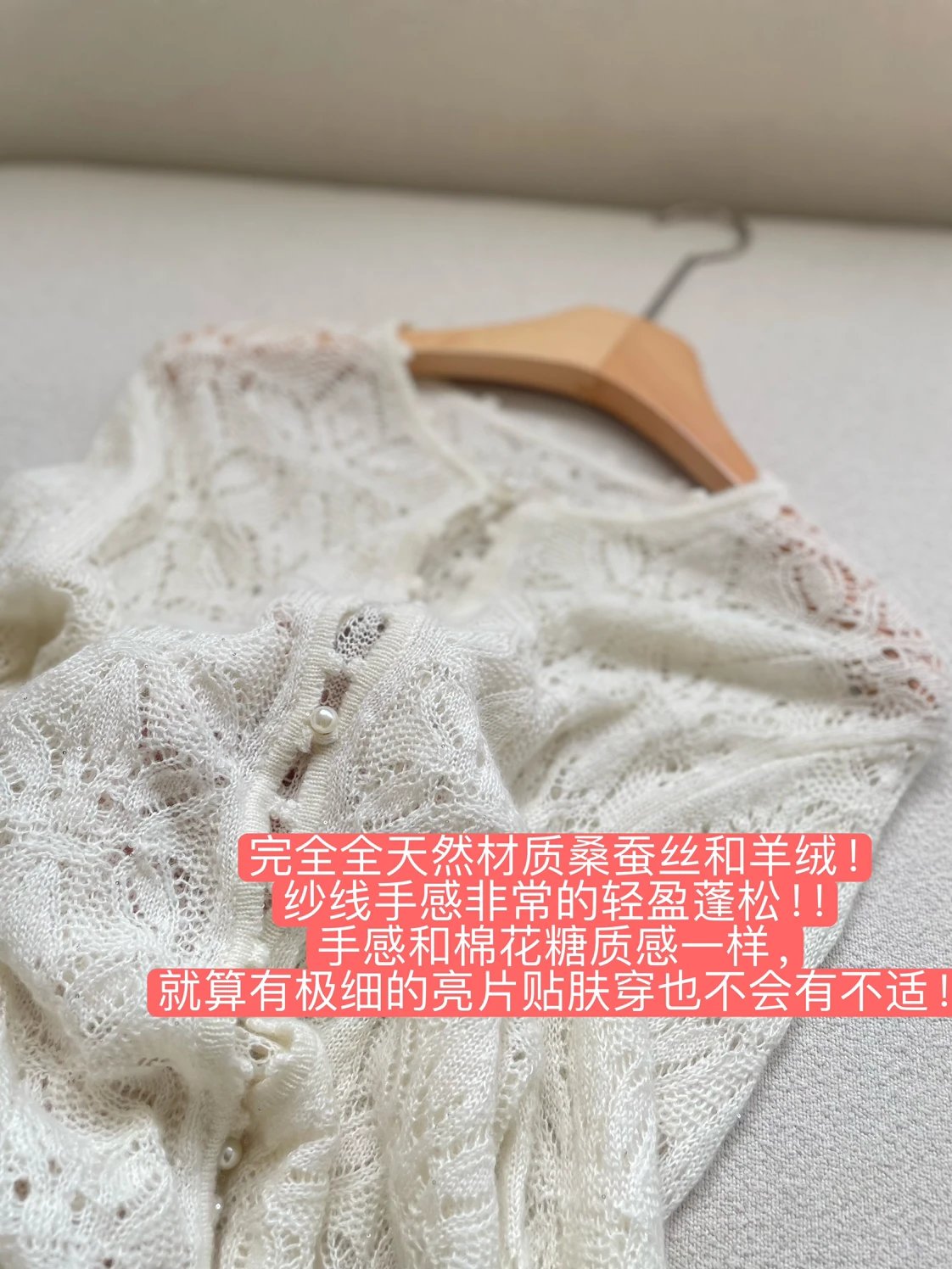 重磅渠道 ER真丝羊绒镂空勾花开衫 超美珍珠扣开合针织开衫 温柔减领早春开衫