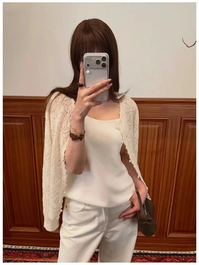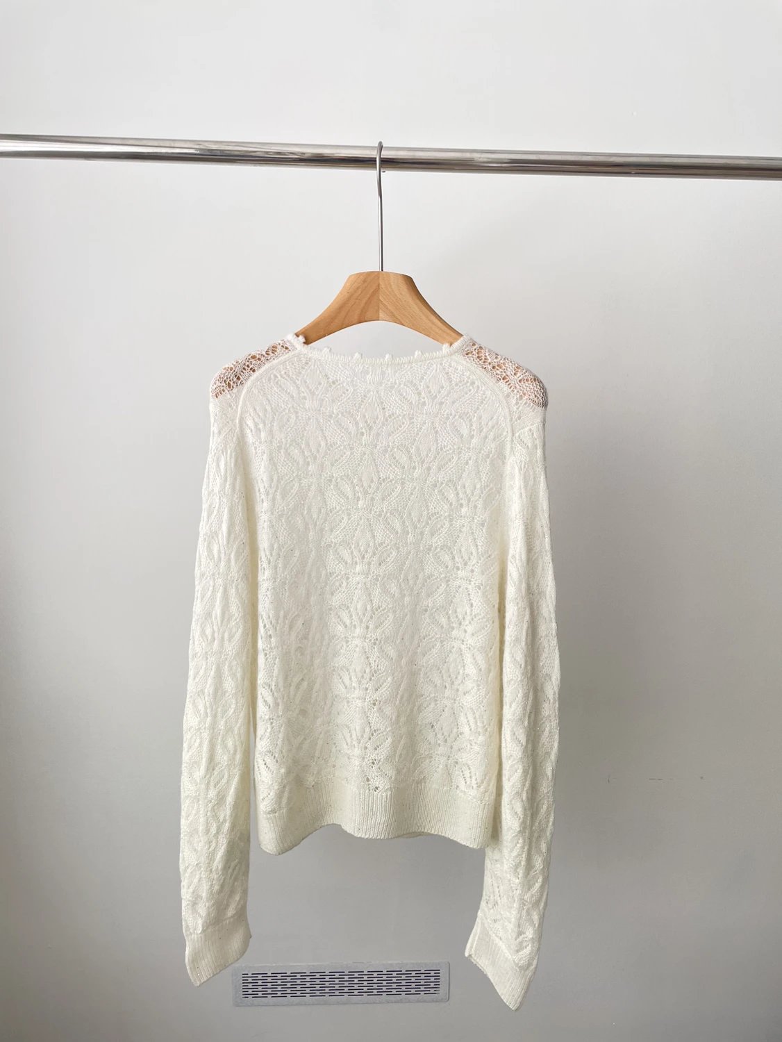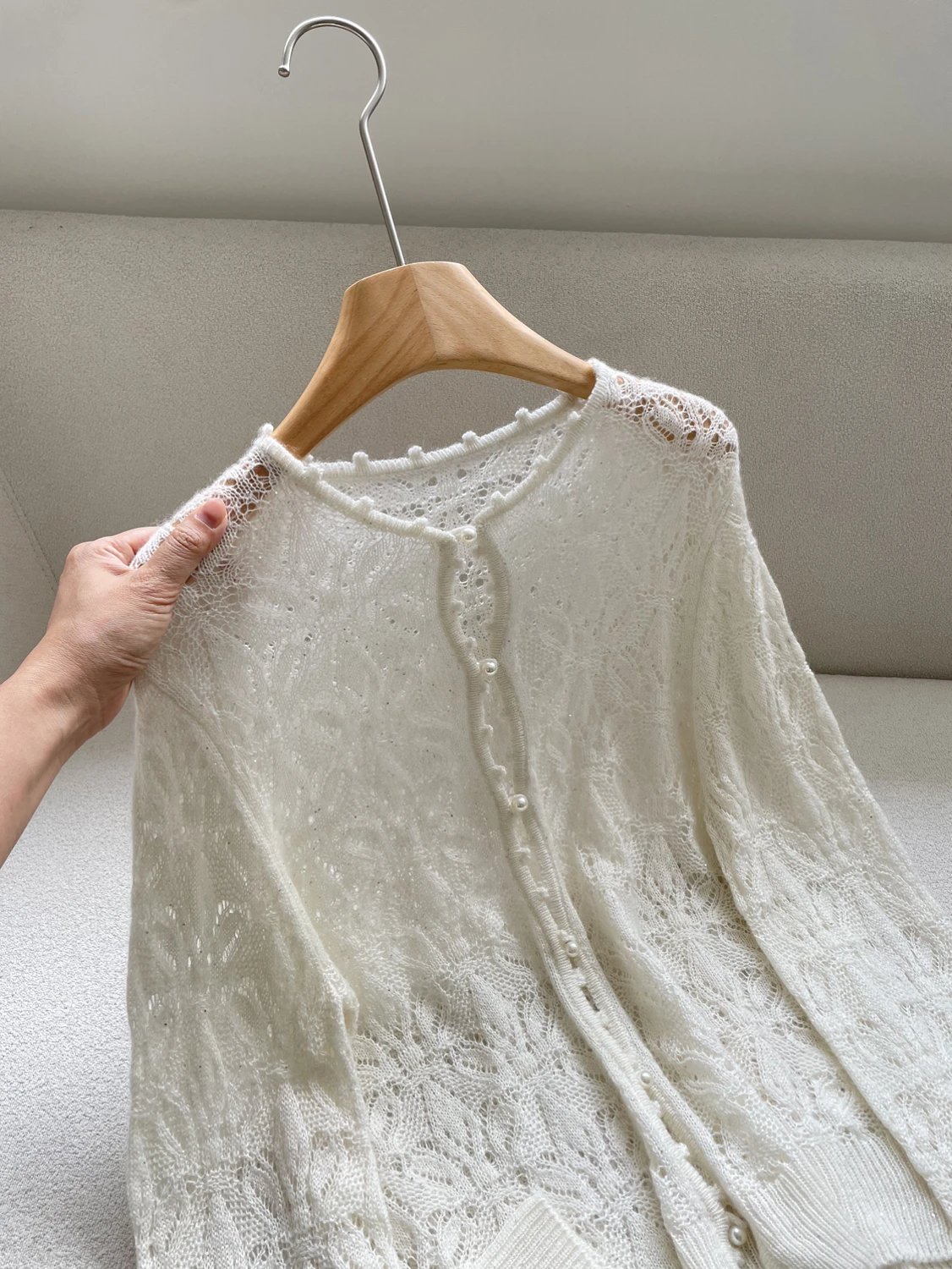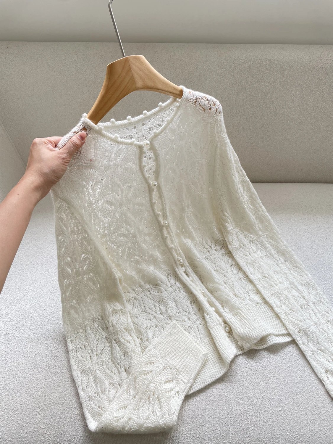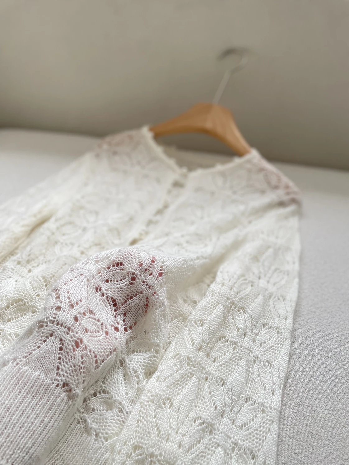 重磅渠道 ER真丝羊绒镂空勾花开衫 超美珍珠扣开合针织开衫 温柔减领早春开衫