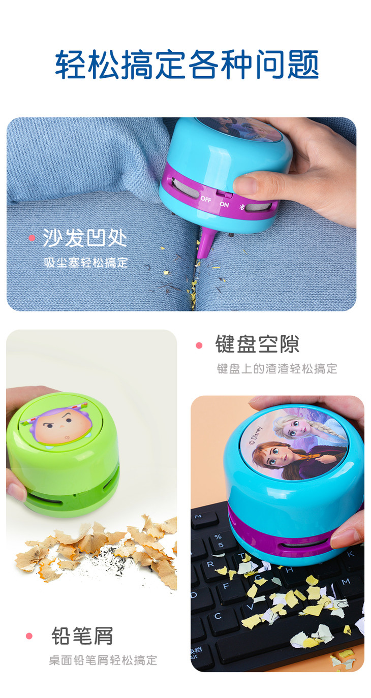 【秒变音箱,桌面吸尘器】迪士尼桌面吸尘器爱莎公主米奇巴斯光年便携中小学生电动小型usb自动清理橡皮擦铅笔屑清洁器迷你桌上小型可充电幼儿园宝宝卡通可爱办公微型清理神器键盘吸屑机