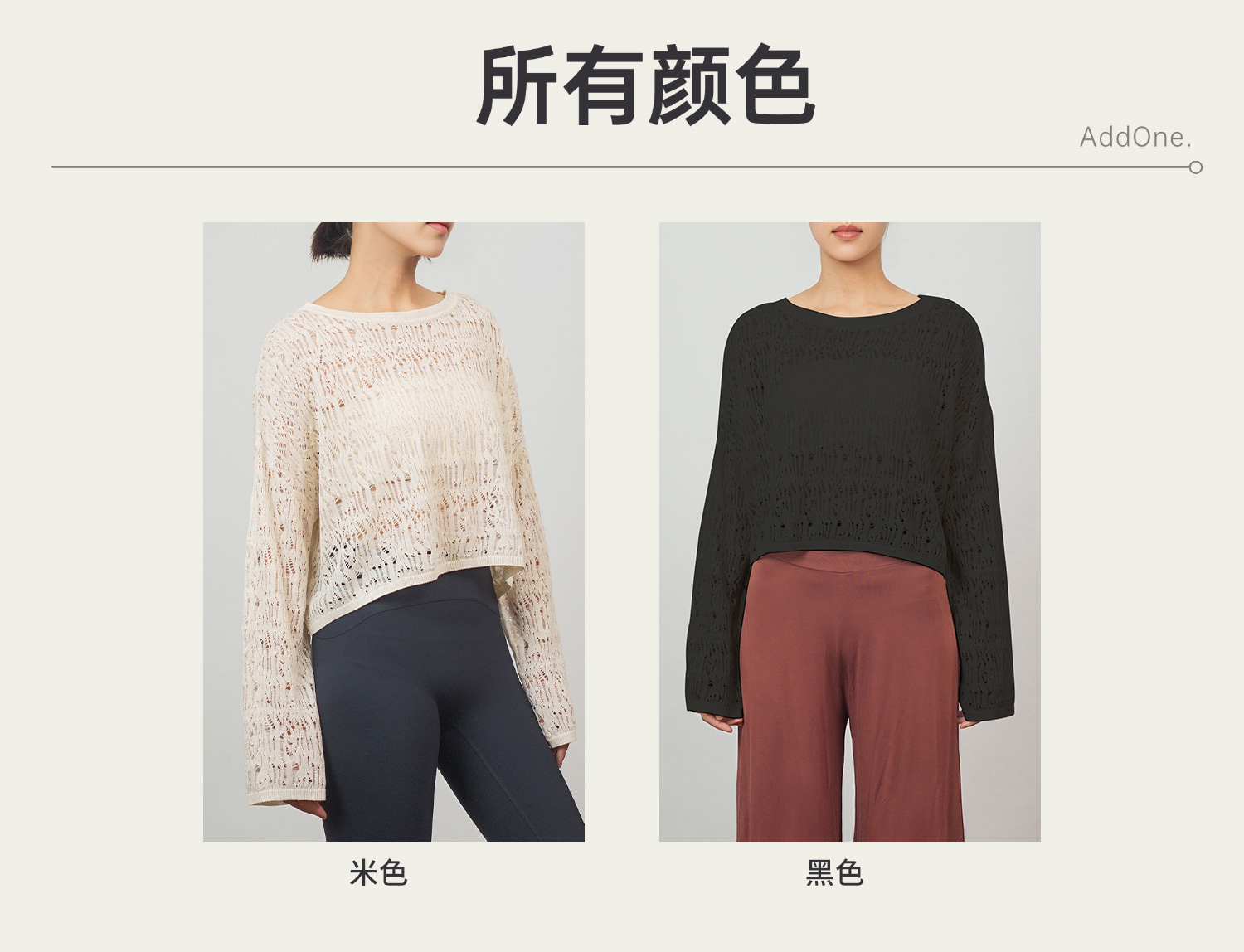 AddOne+1 New 瑜伽时尚圆领镂空天丝针织衫外搭