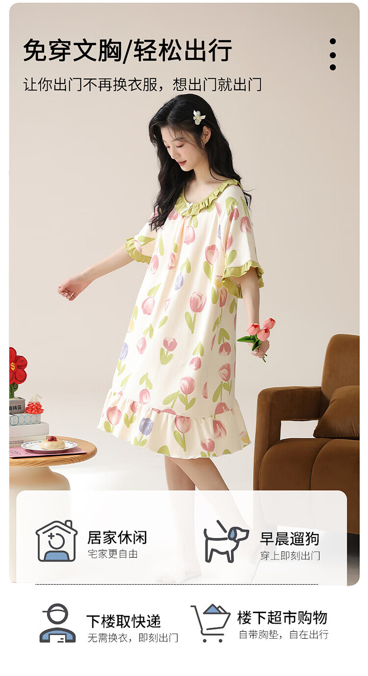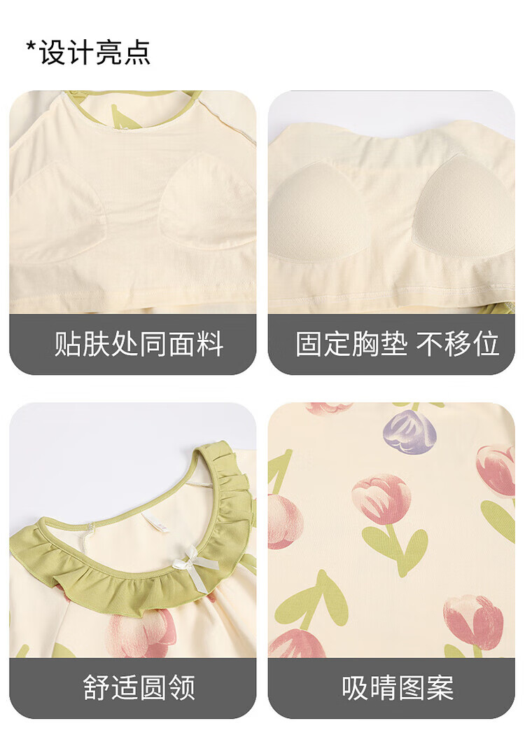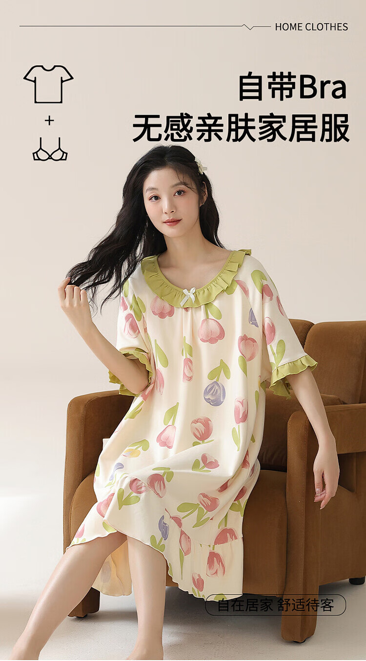 可人儿带bra小众设计新款泡泡绵女士睡衣夏季少女睡裙可外穿居家