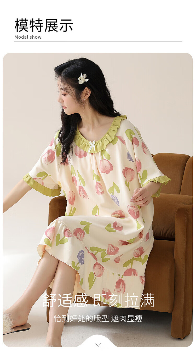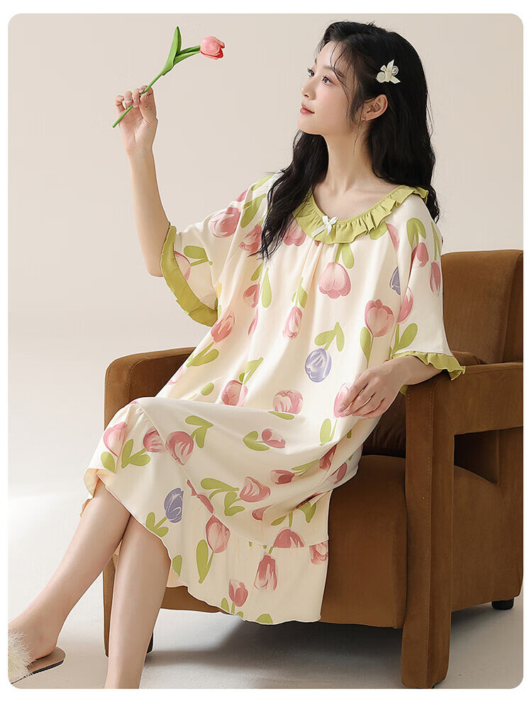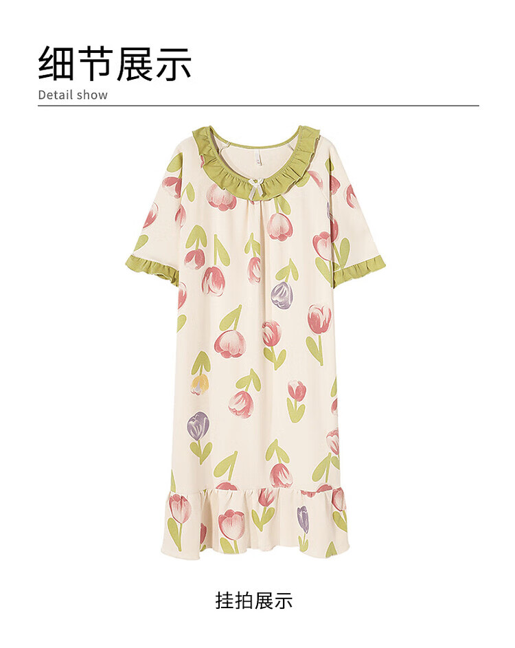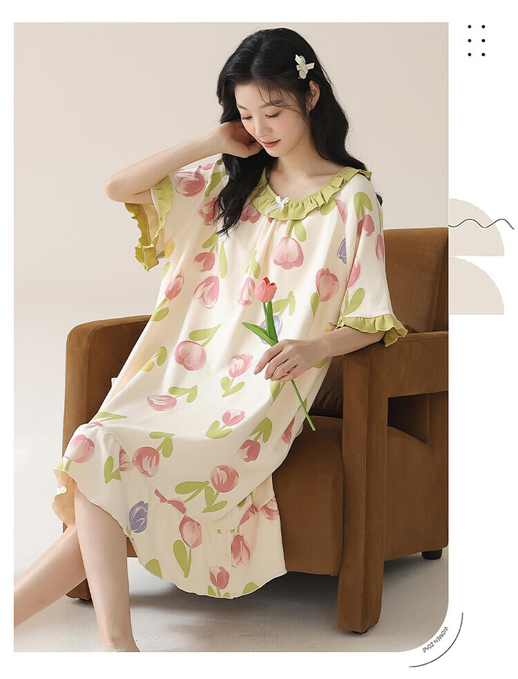 可人儿夏季纯棉新款睡衣女可爱甜美宽松睡裙夏天薄款家居服连衣裙