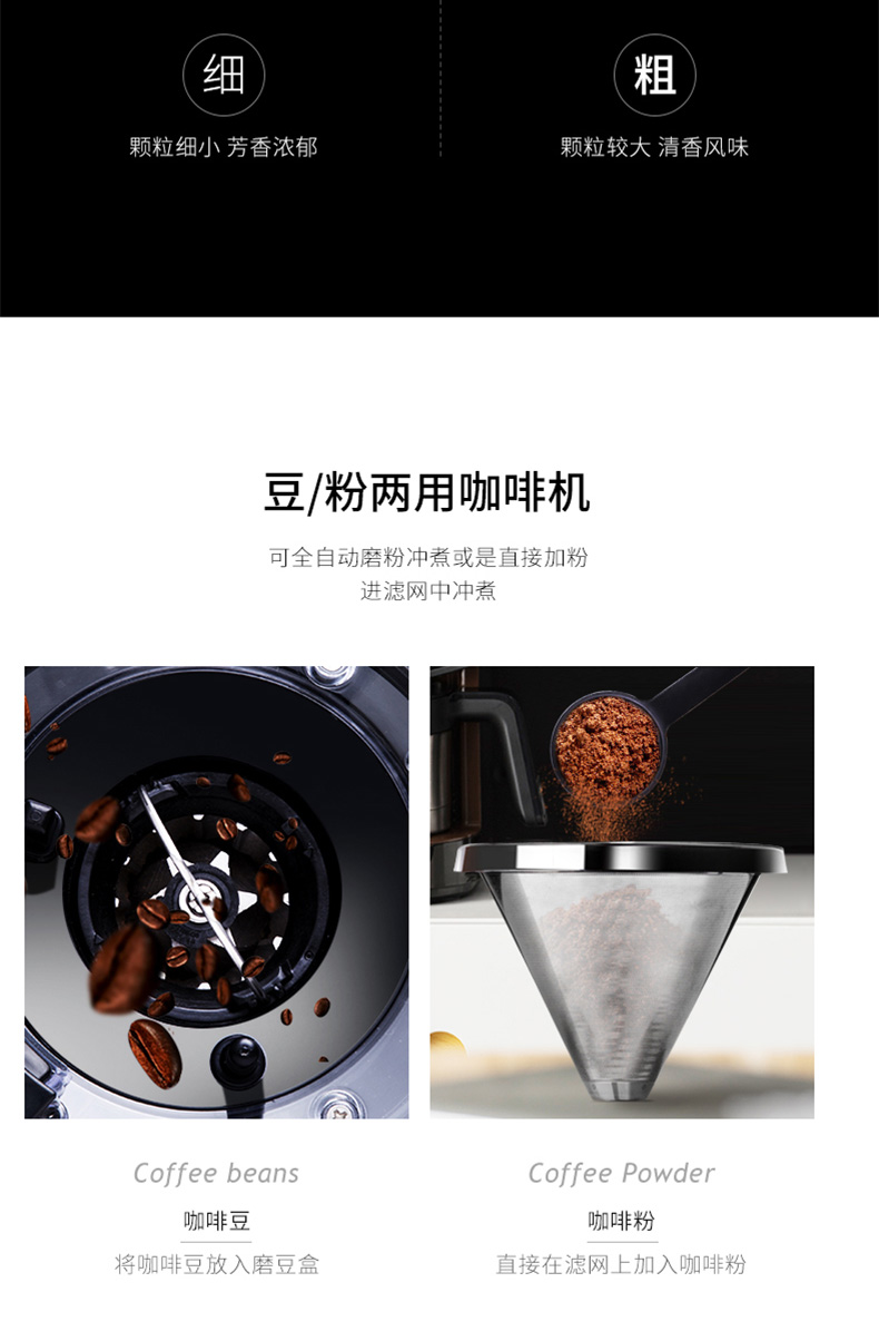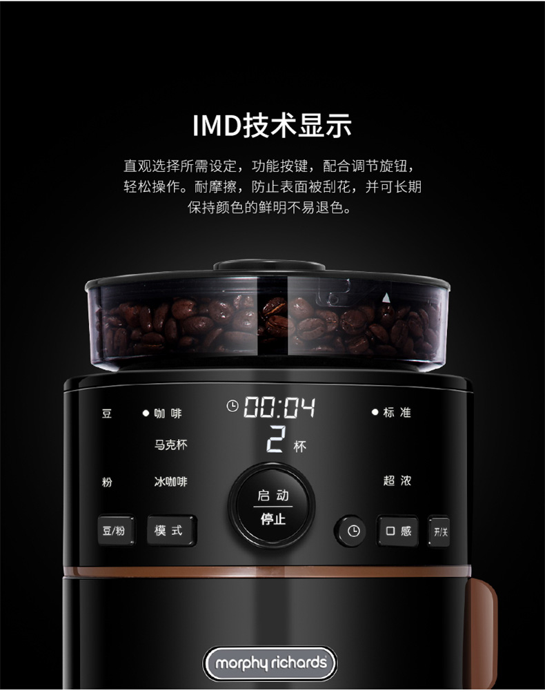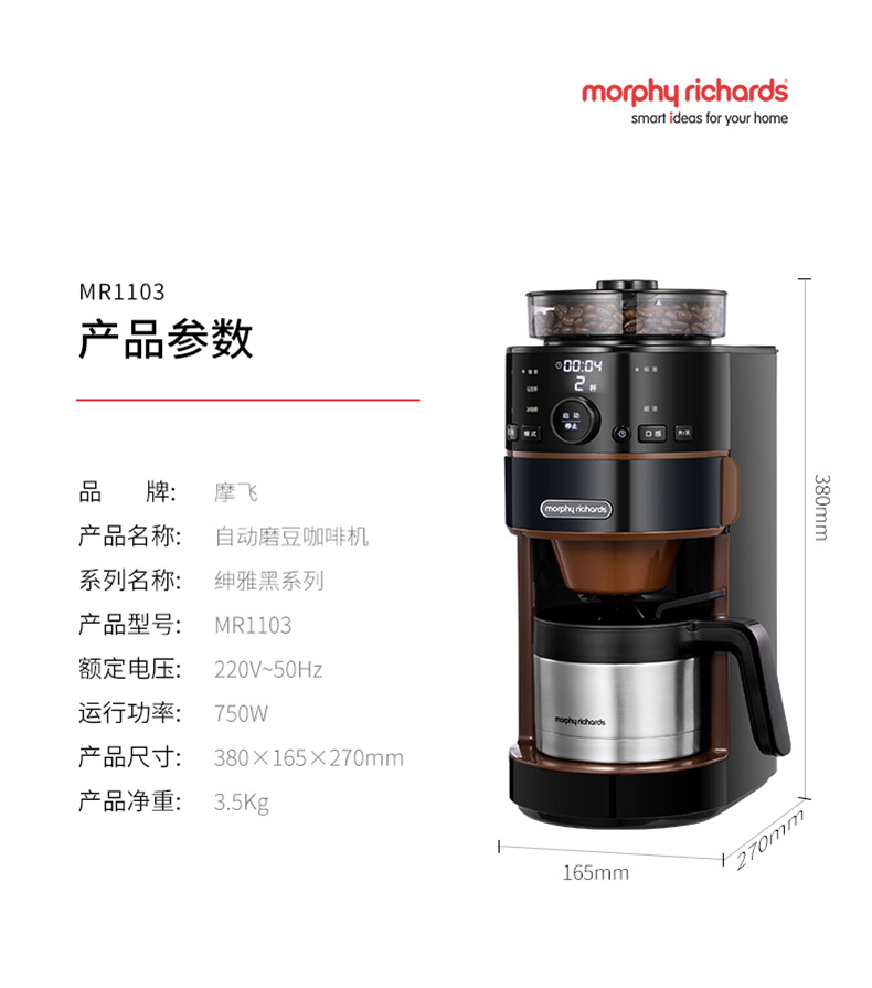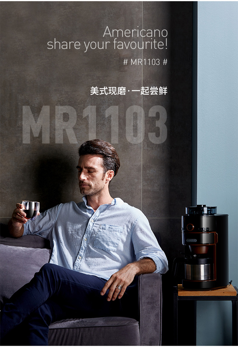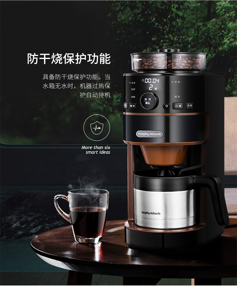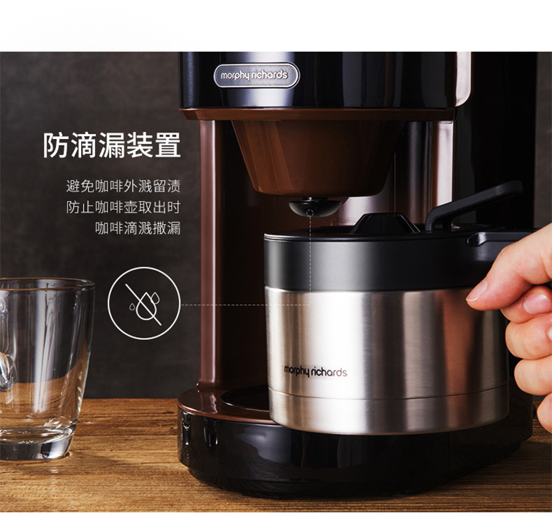 摩飞电器(Morphyrichards) 家用美式全自动咖啡机研磨滴漏式带真空保温壶MR1103 标准版