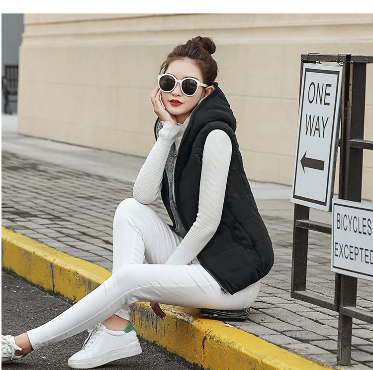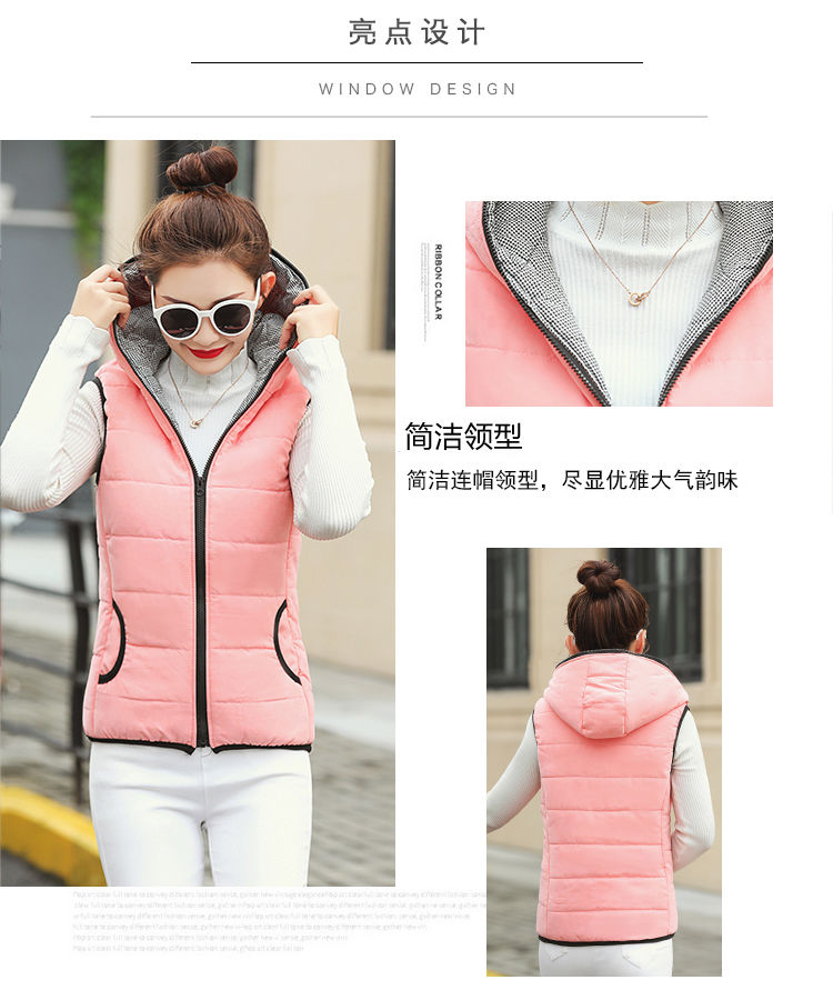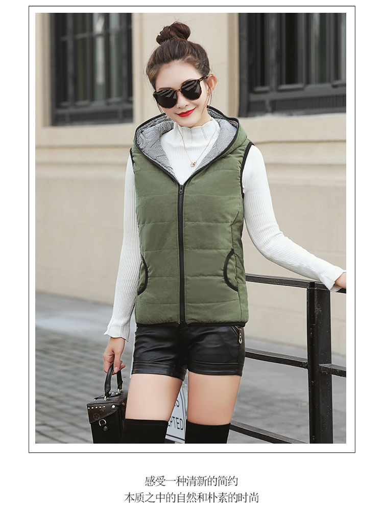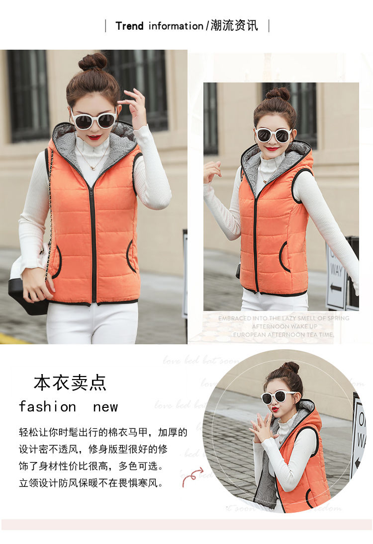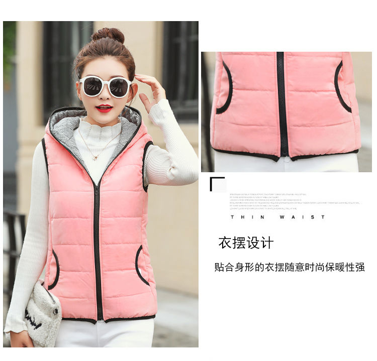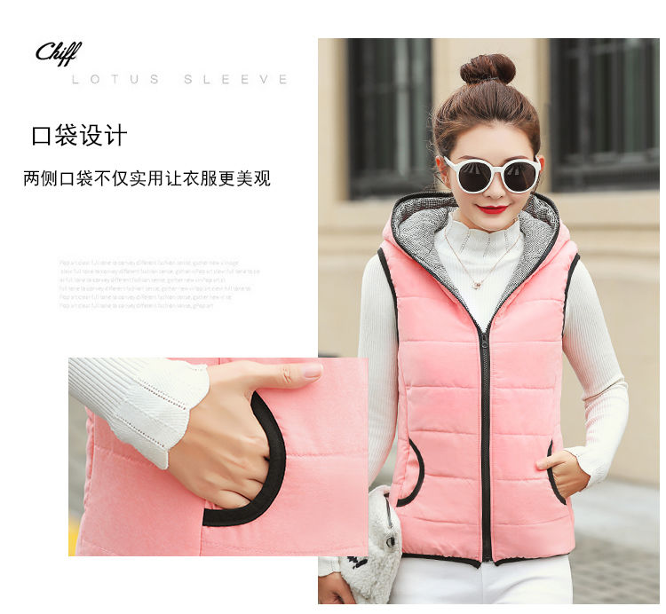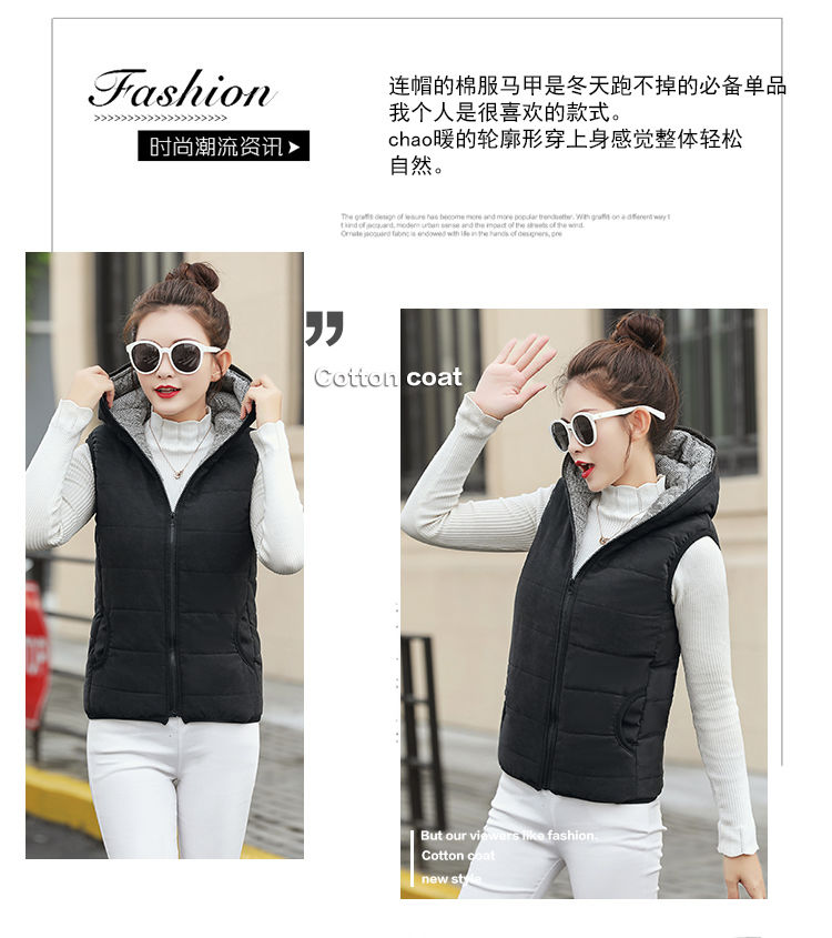 马夹女韩版秋冬款薄连帽马甲宽松棉背心无袖短外套学生打底上衣