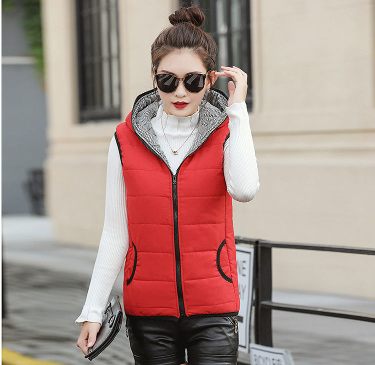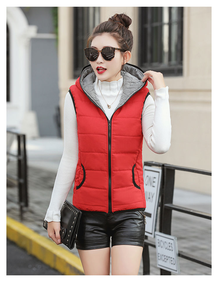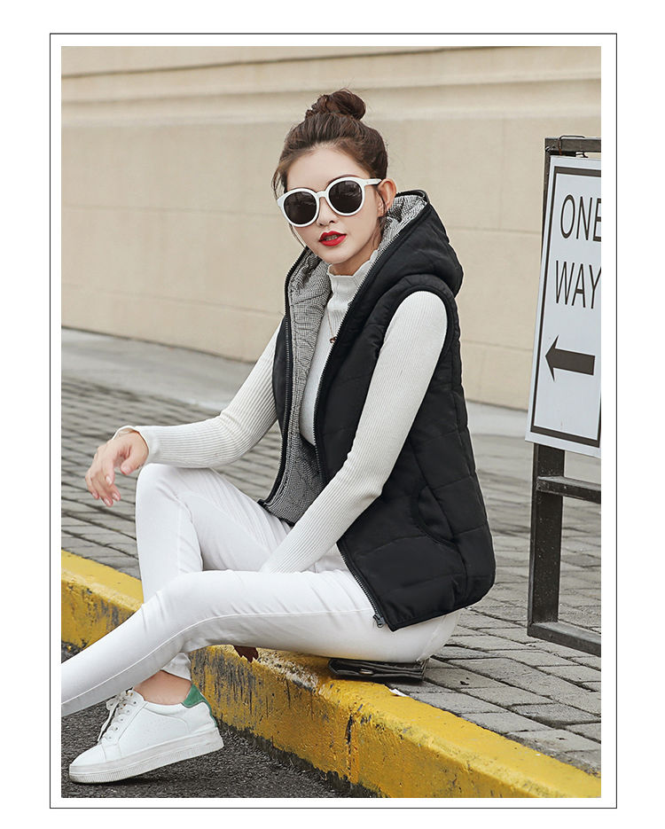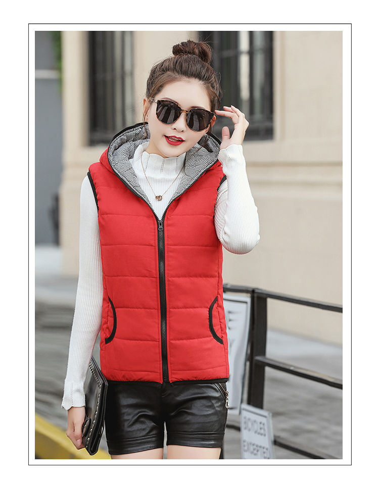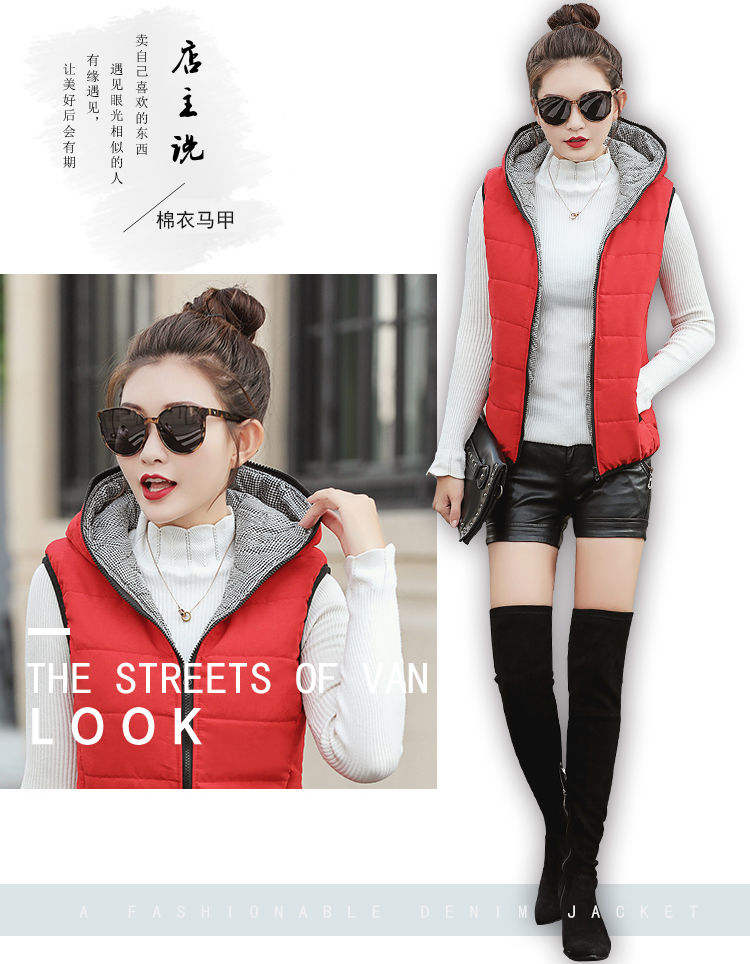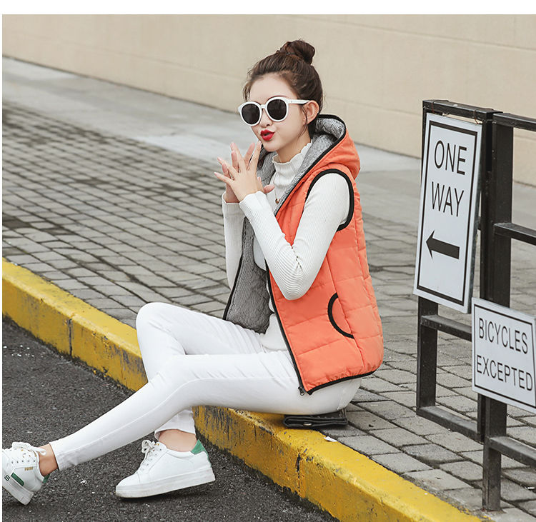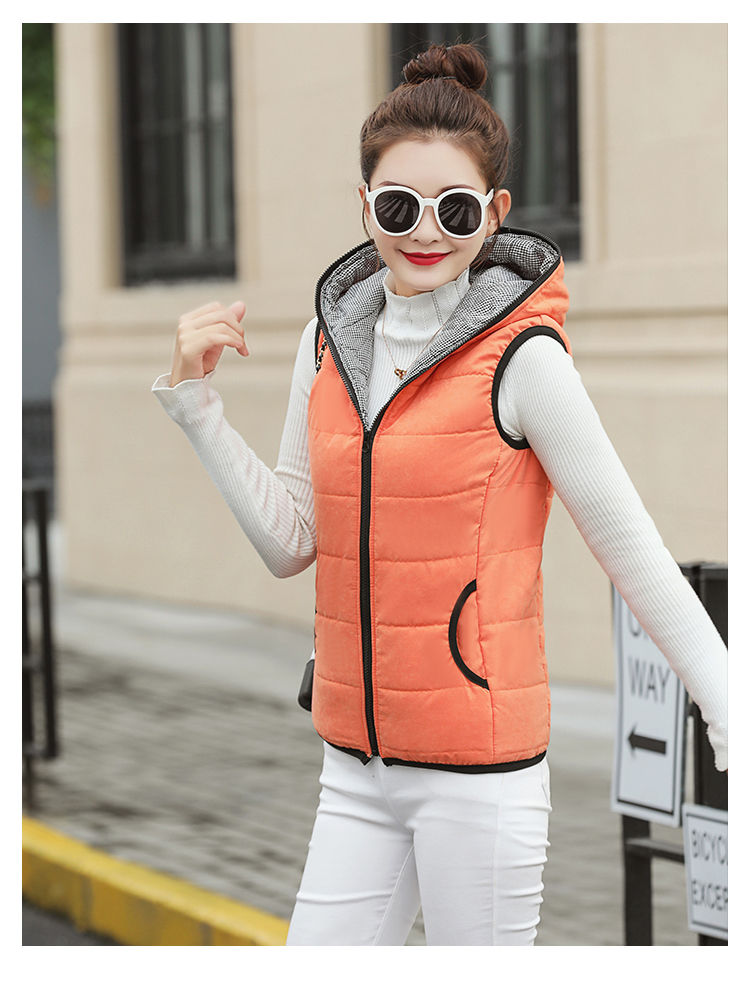 马夹女韩版秋冬款薄连帽马甲宽松棉背心无袖短外套学生打底上衣