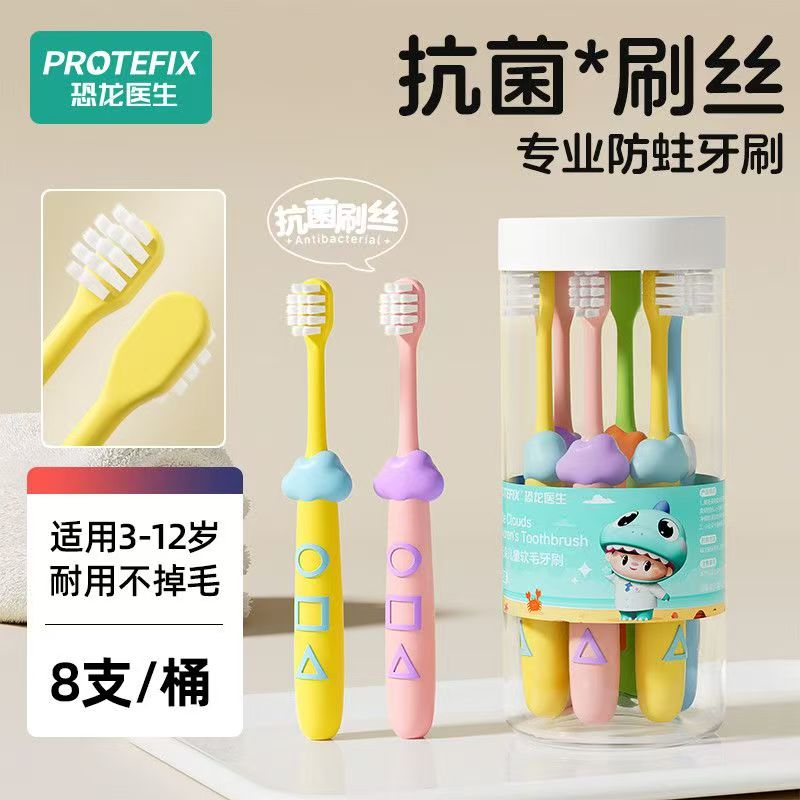 【8只装】恐龙医生儿童牙刷宝宝3-4-5到6一12岁以上换牙期套装乳牙牙膏小孩学生
