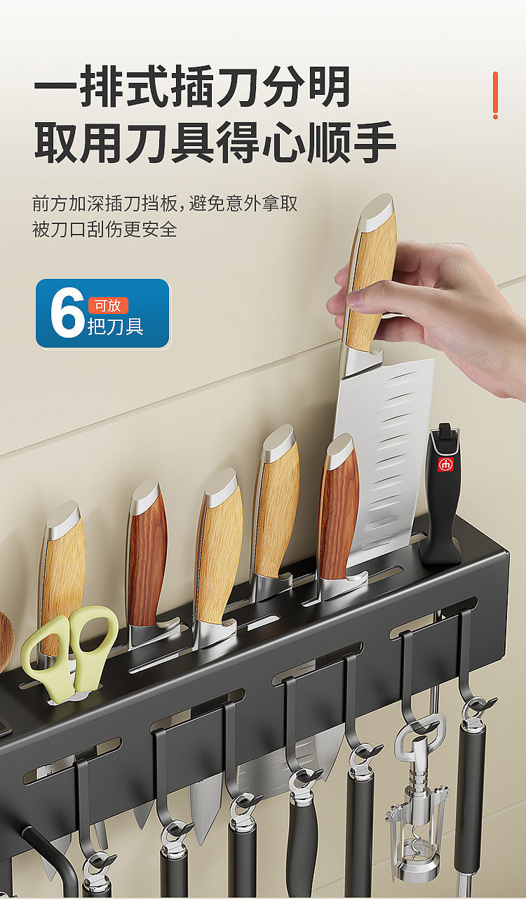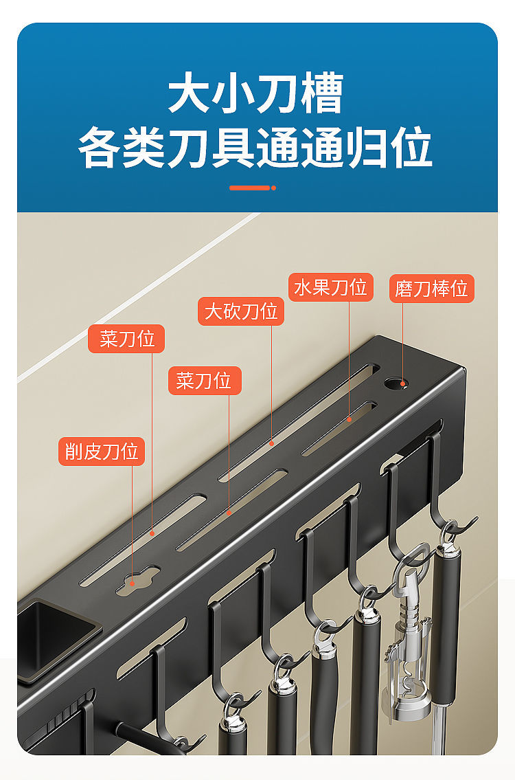 【多功能刀架】免打孔安装 不锈钢刀架 厨房用品筷子收纳整理置物锅盖架壁挂式