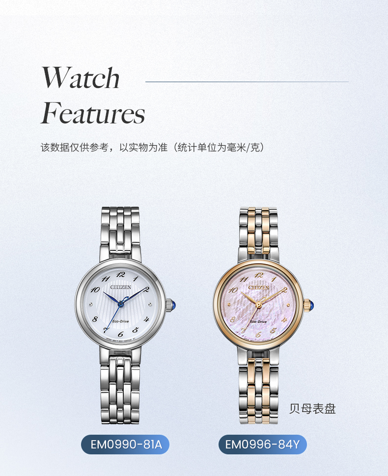 西铁城/CITIZEN光动能时尚贝母表盘女表EM0996-84Y
