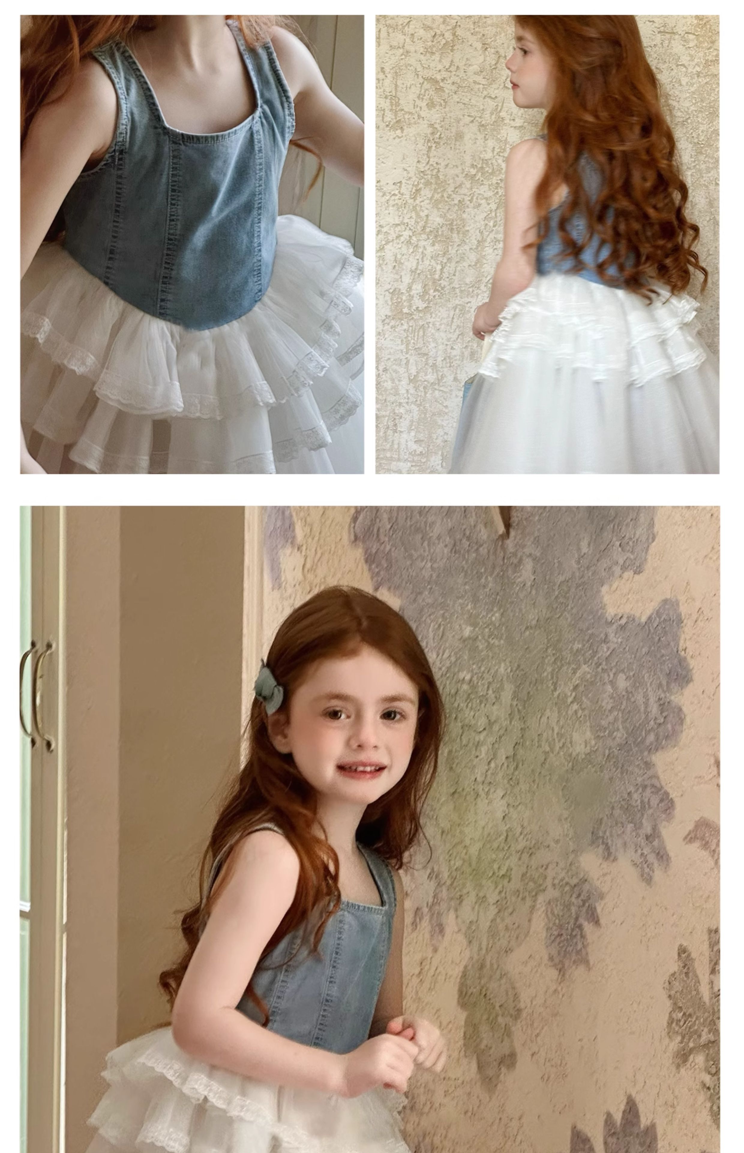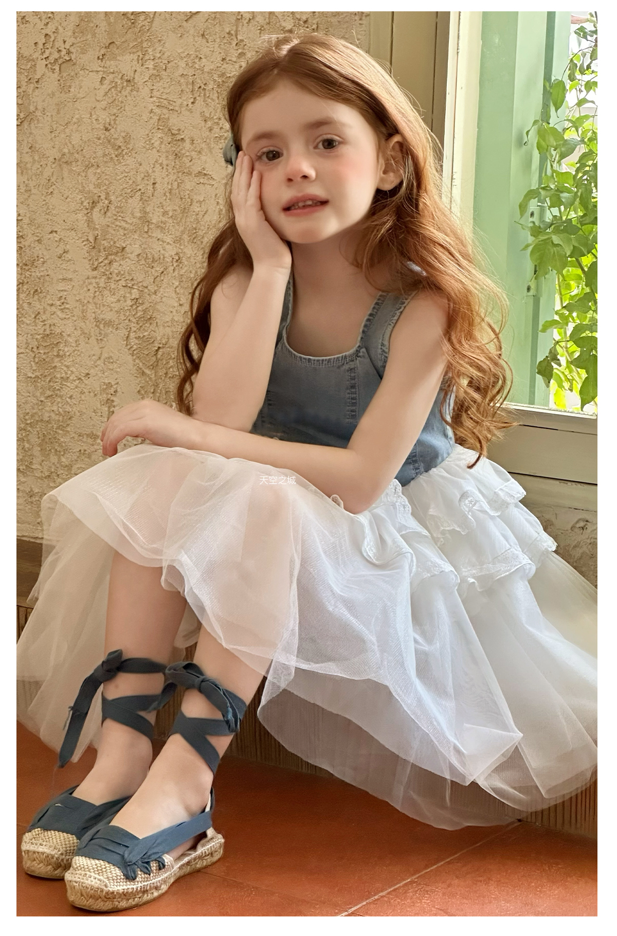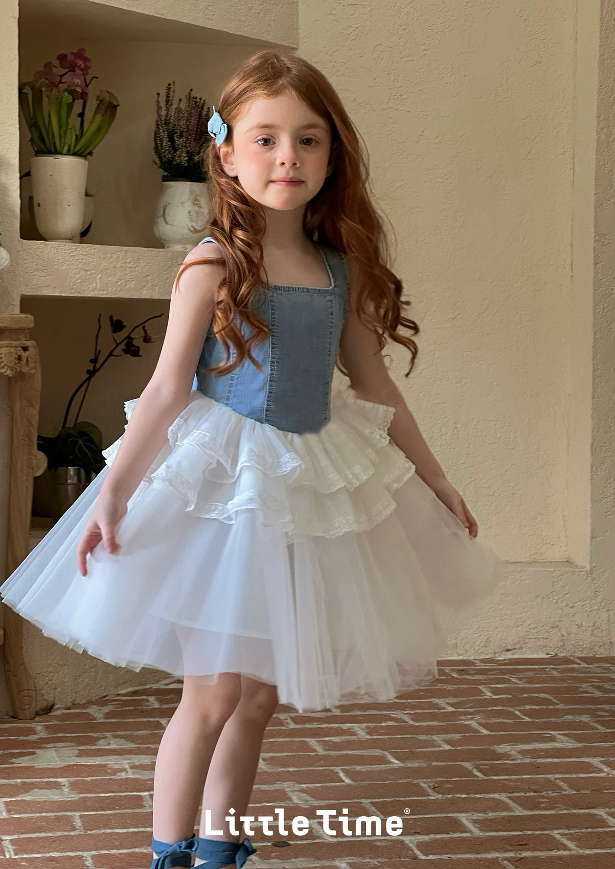 Little time女童连衣裙2025春夏新款儿童洋气时尚牛仔拼接公主裙
