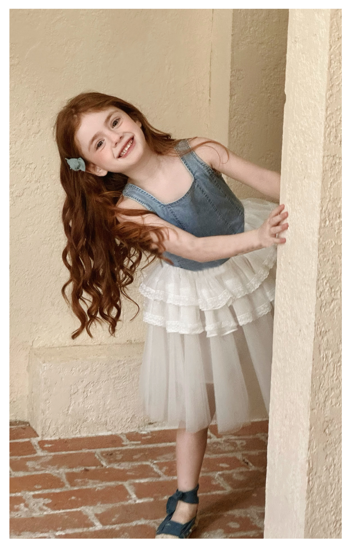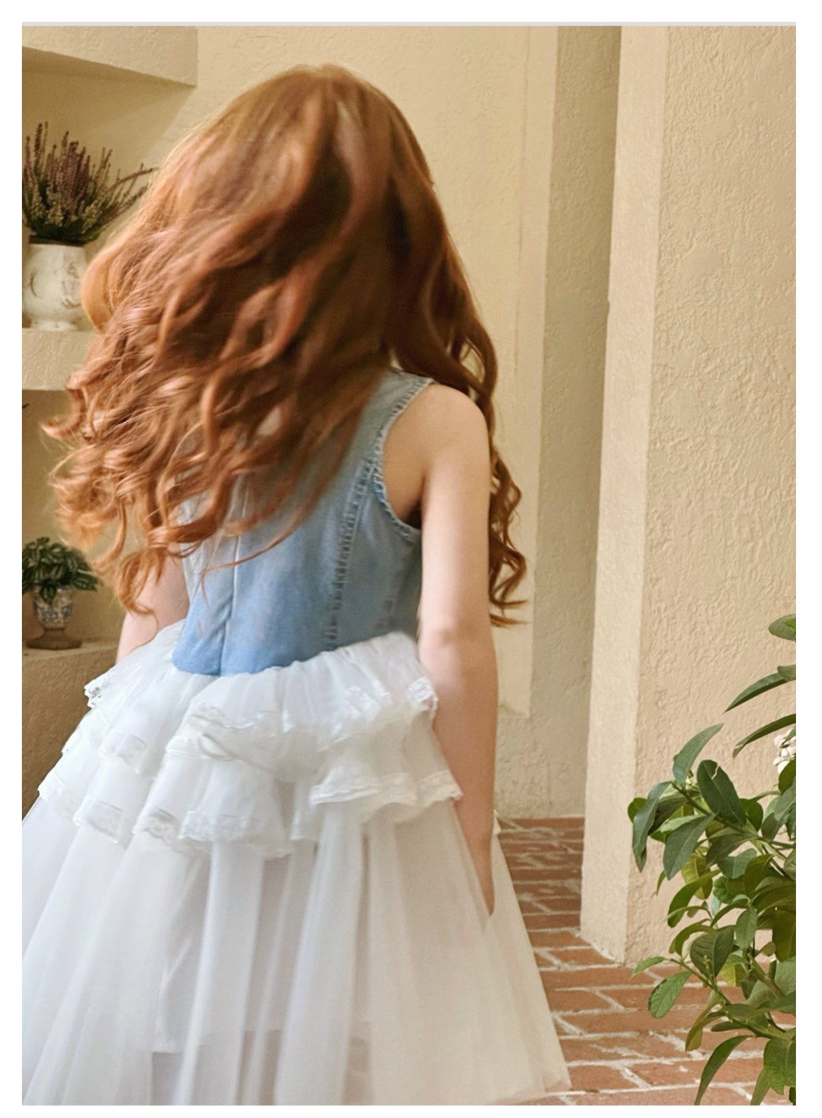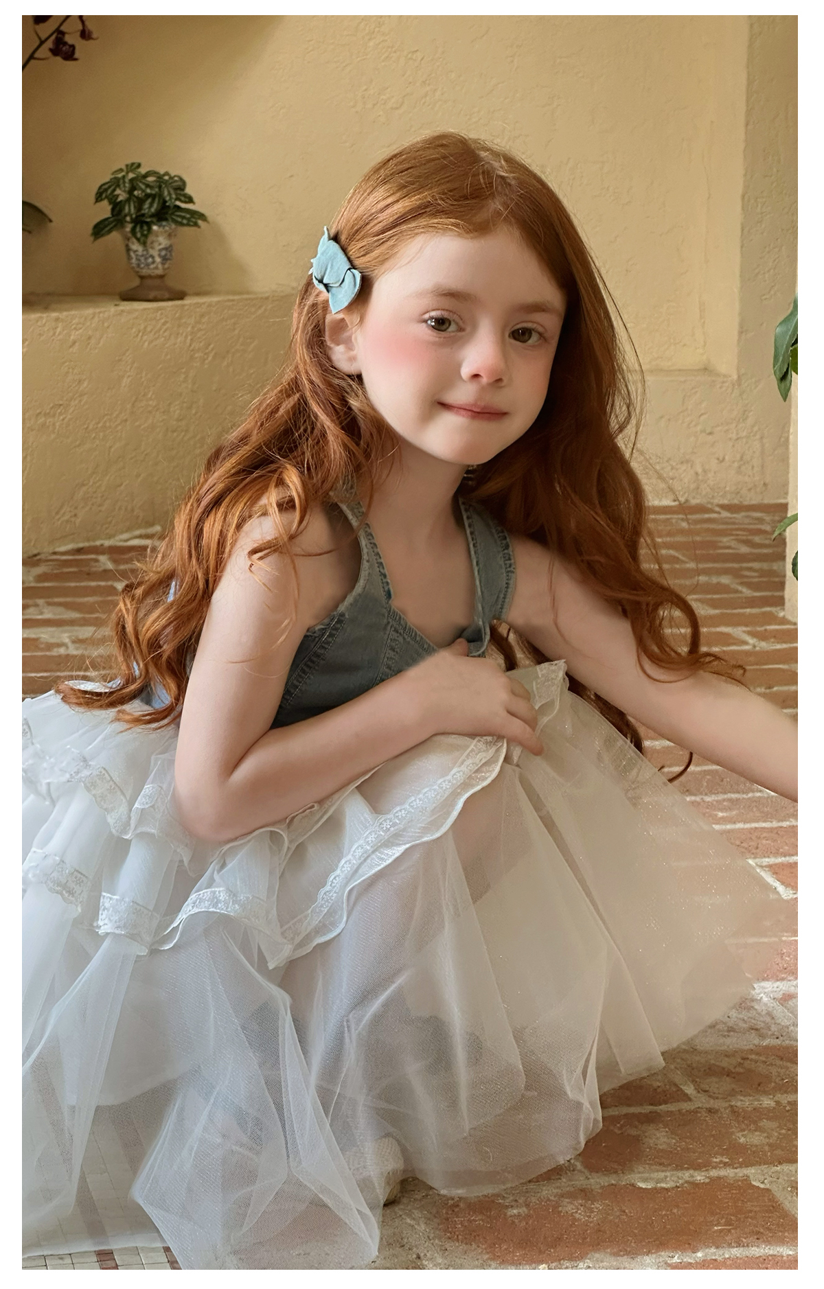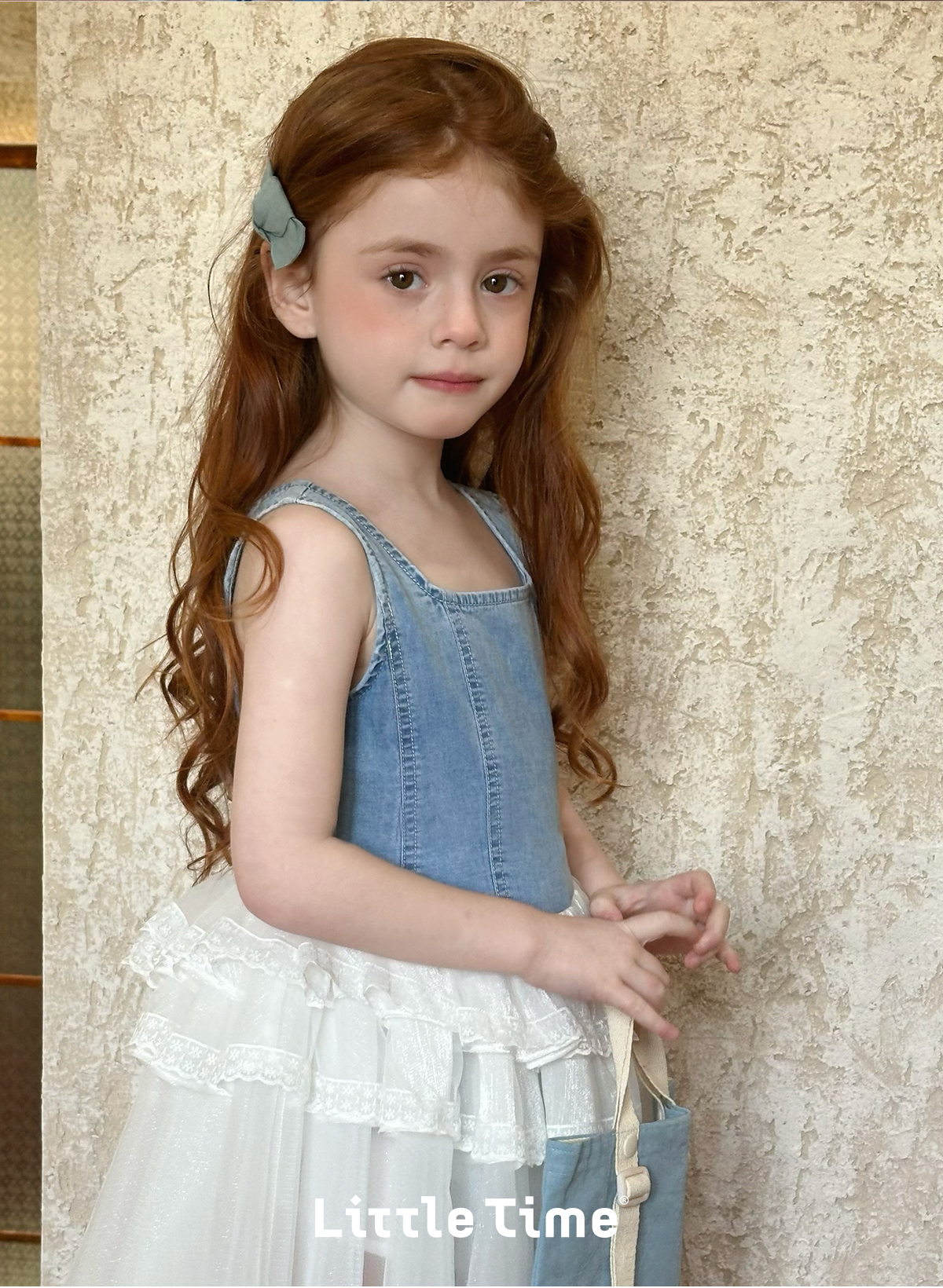 Little time女童连衣裙2025春夏新款儿童洋气时尚牛仔拼接公主裙
