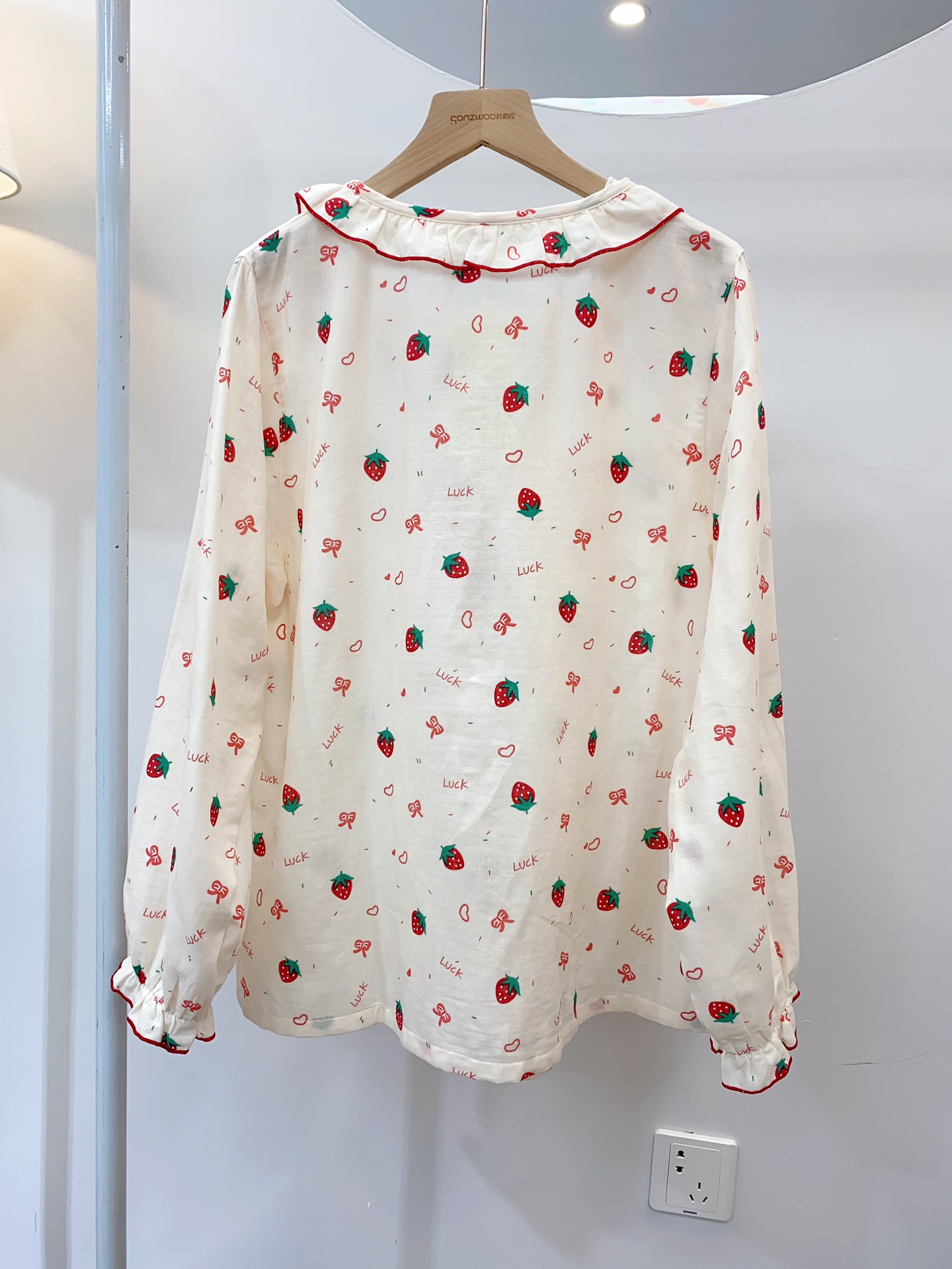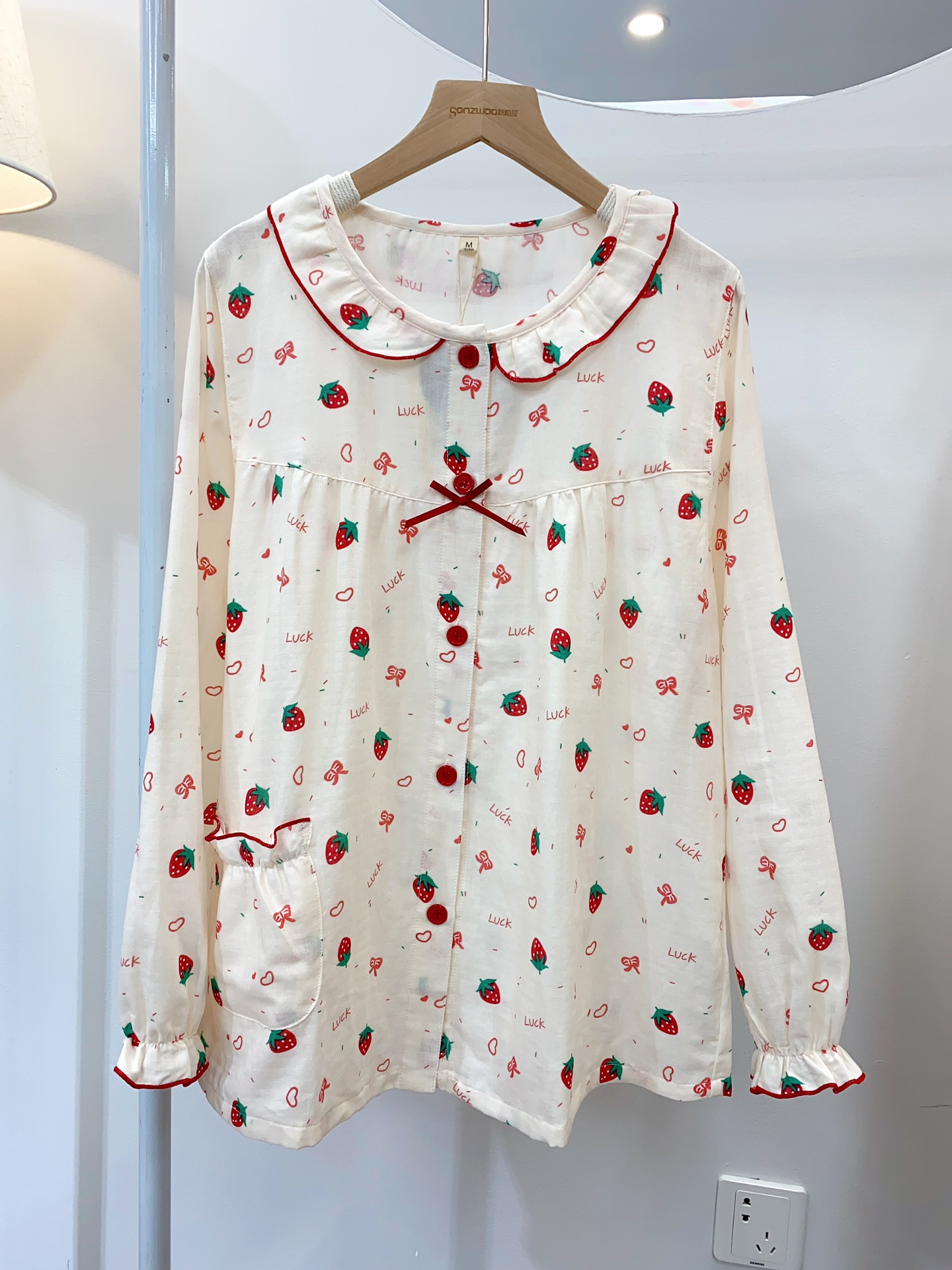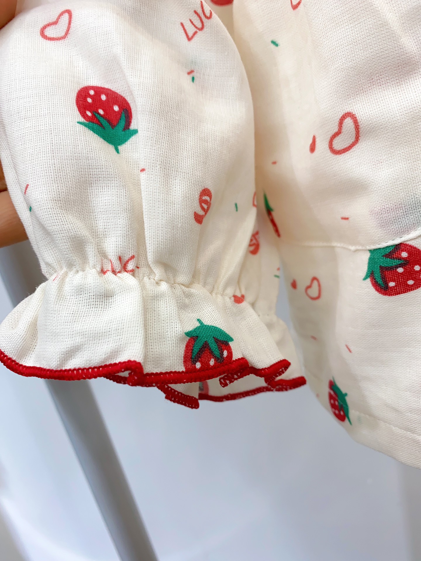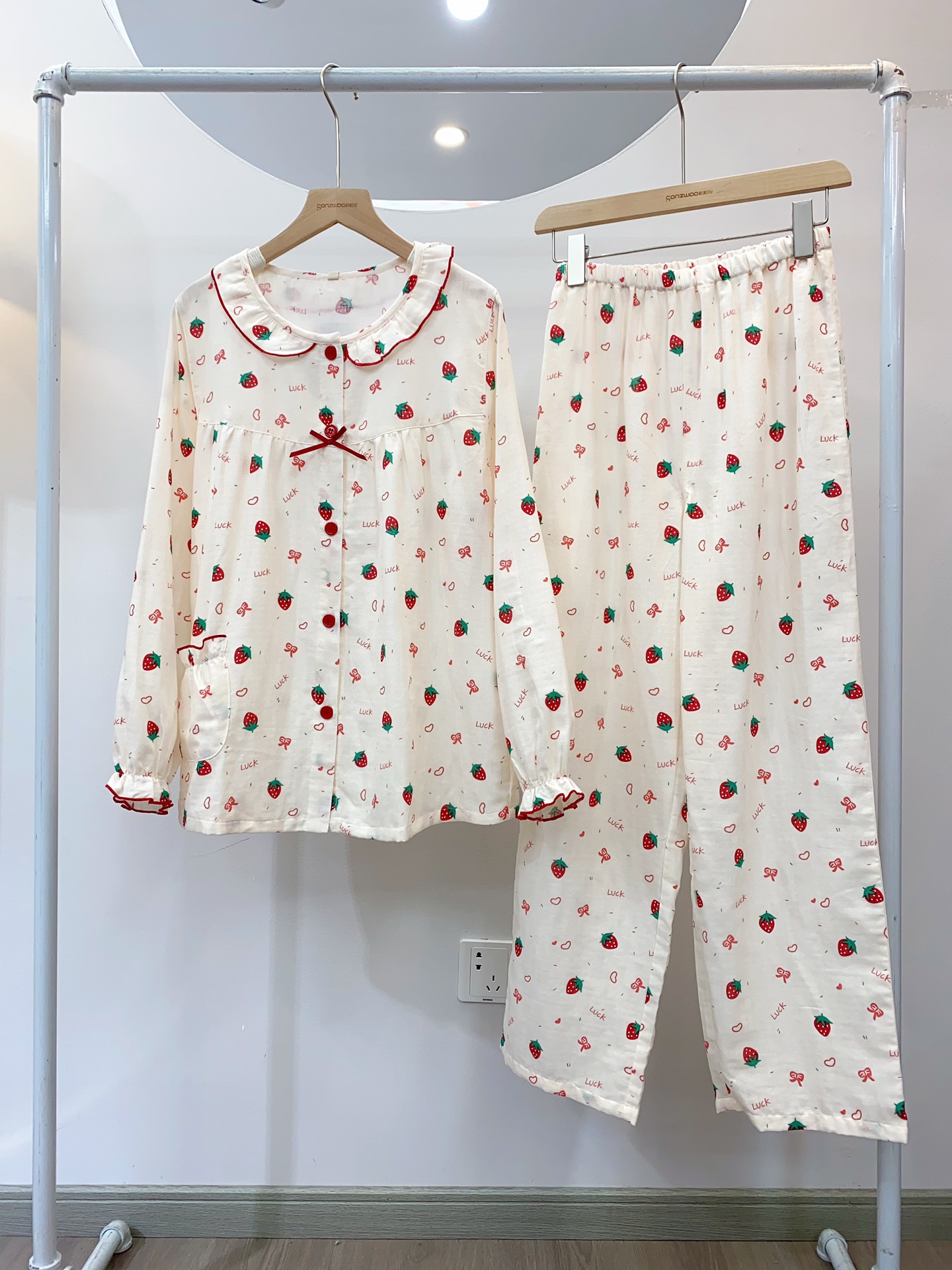 女款草莓花纱布长袖长裤套装