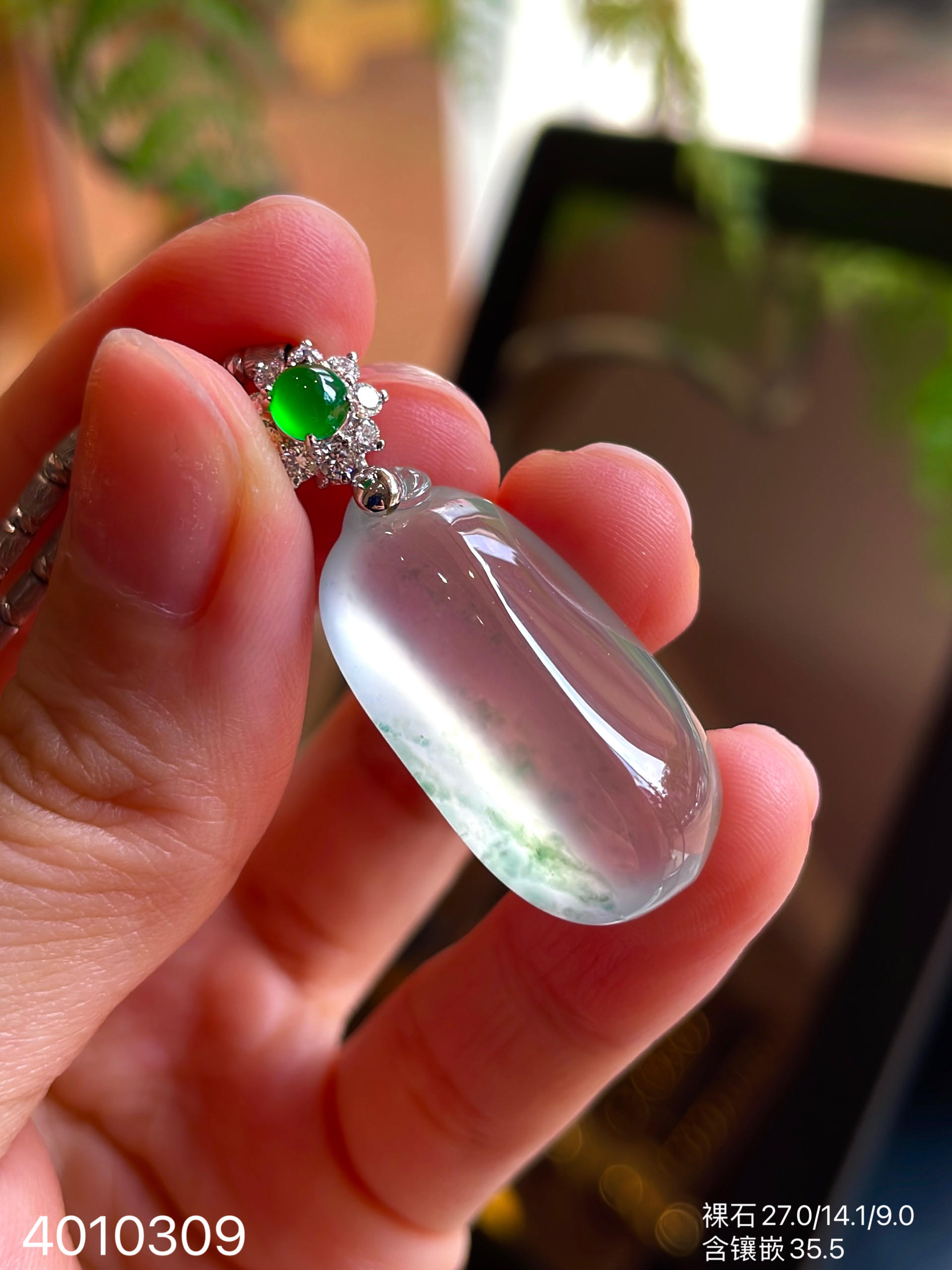 玻璃种帝王绿蛋面耳坠【6023104】具体价格微信咨询