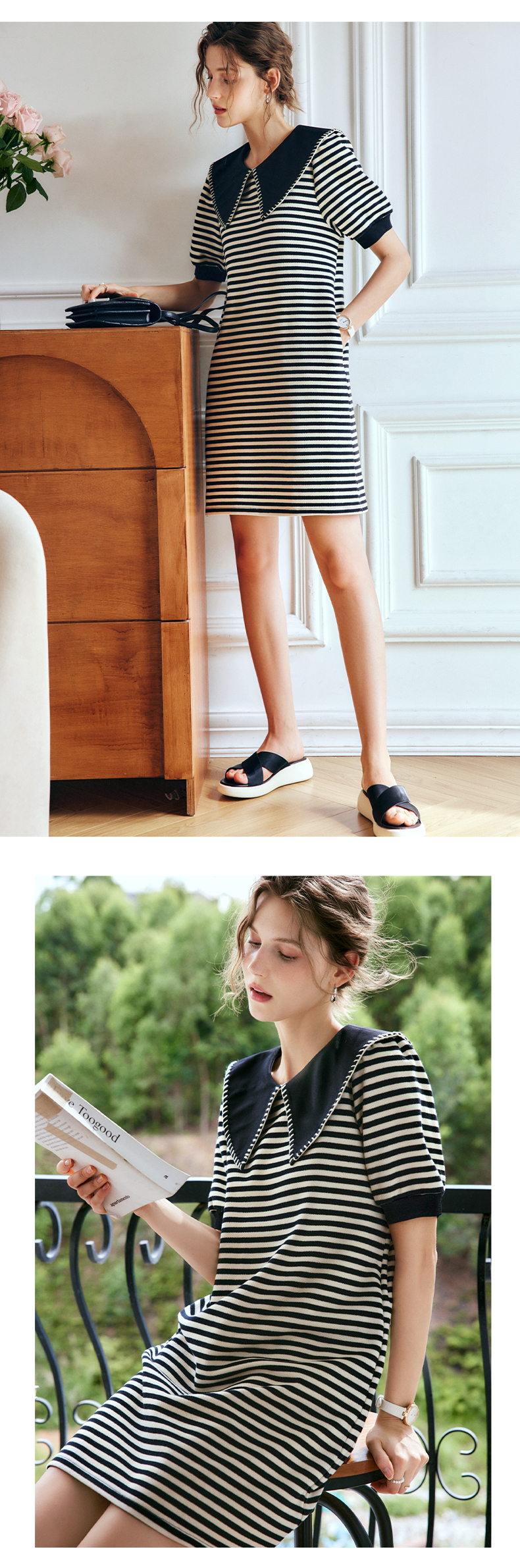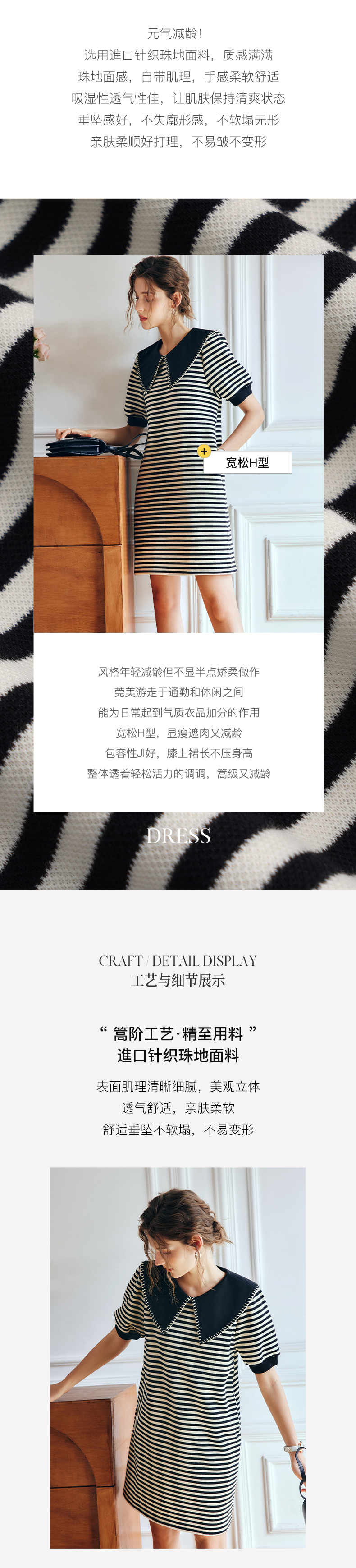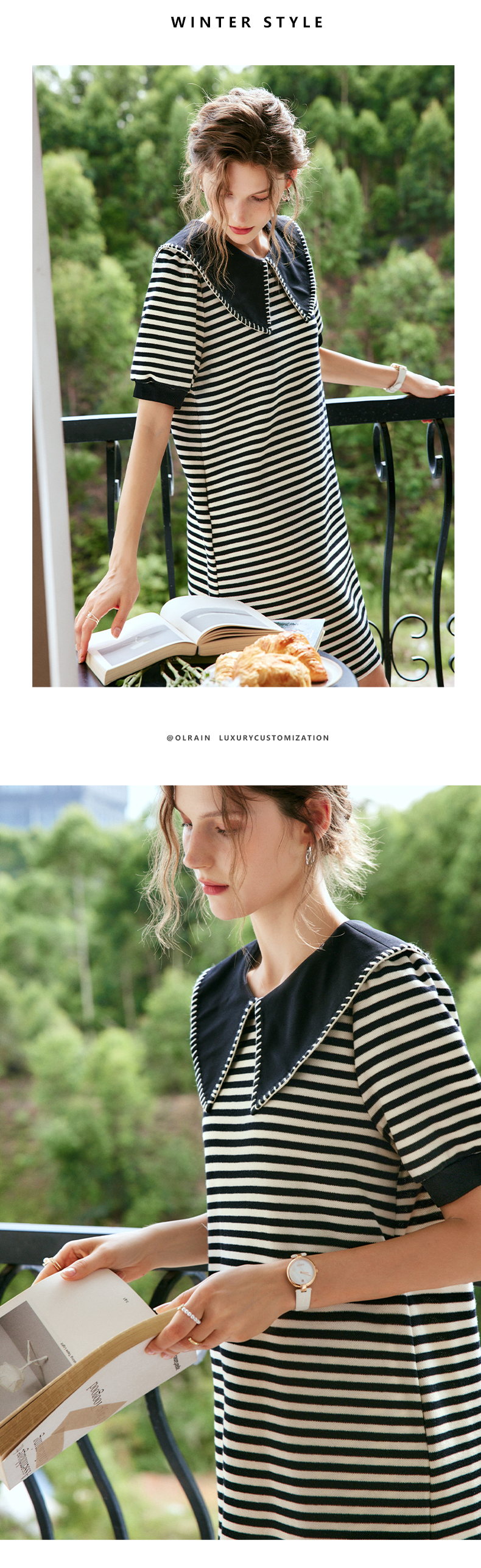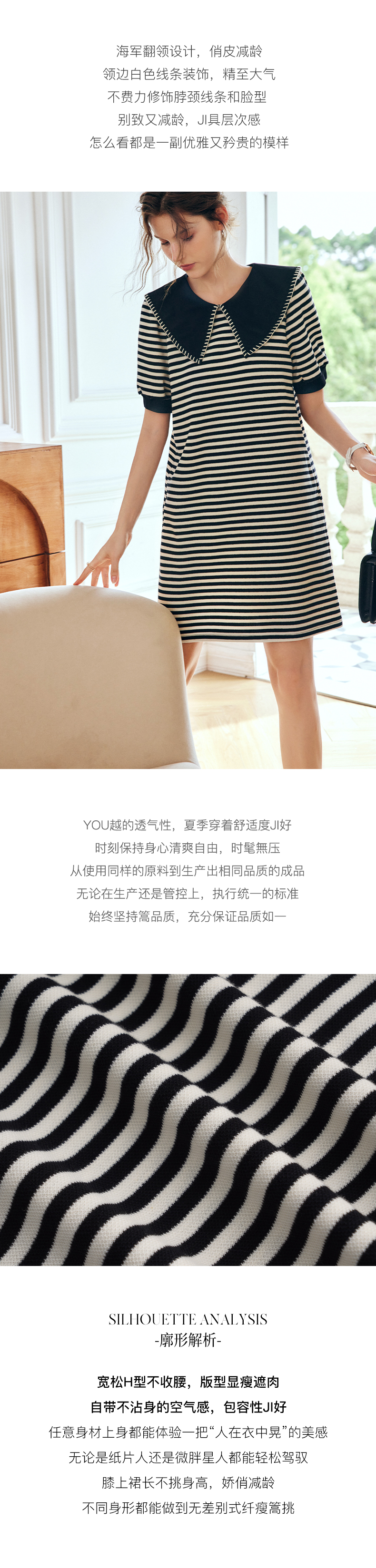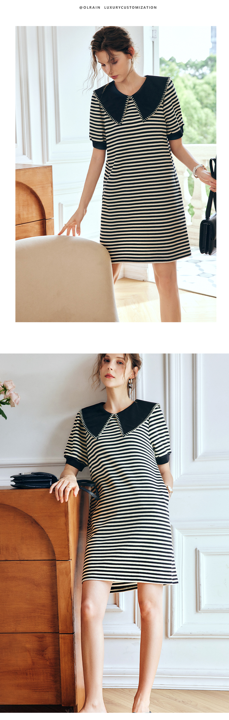 OLrain法式条纹短袖连衣裙女夏季2022新款气质显瘦减龄海军领裙子undefined